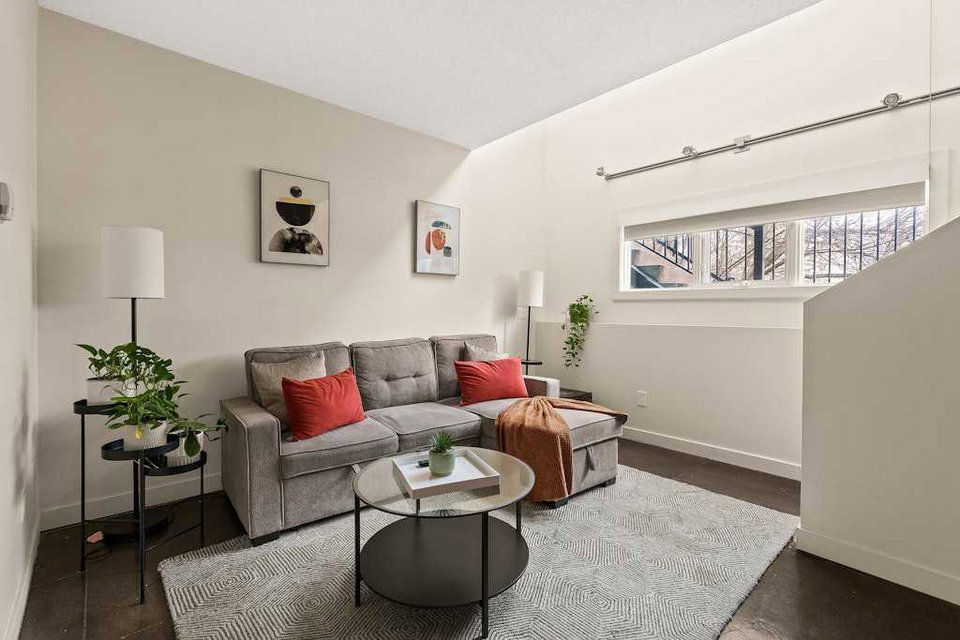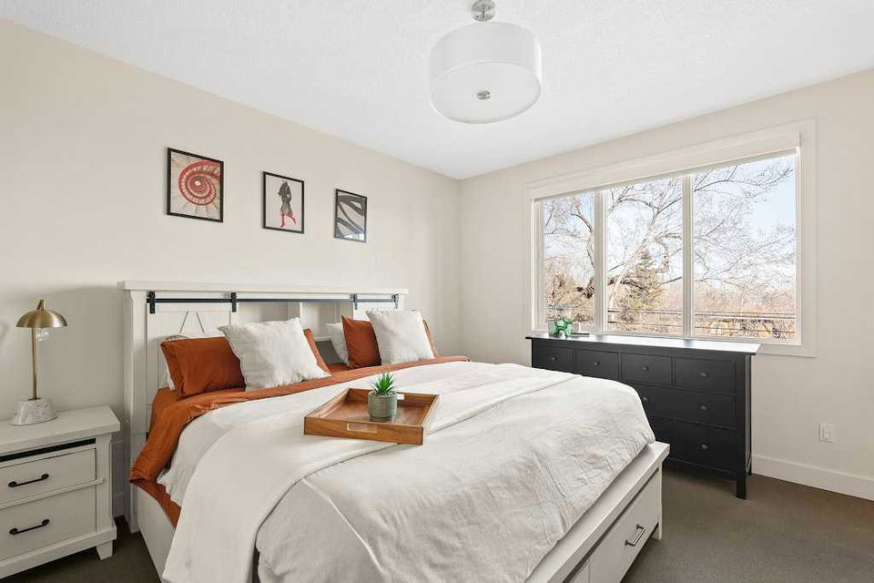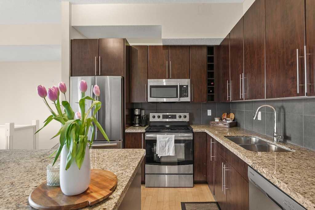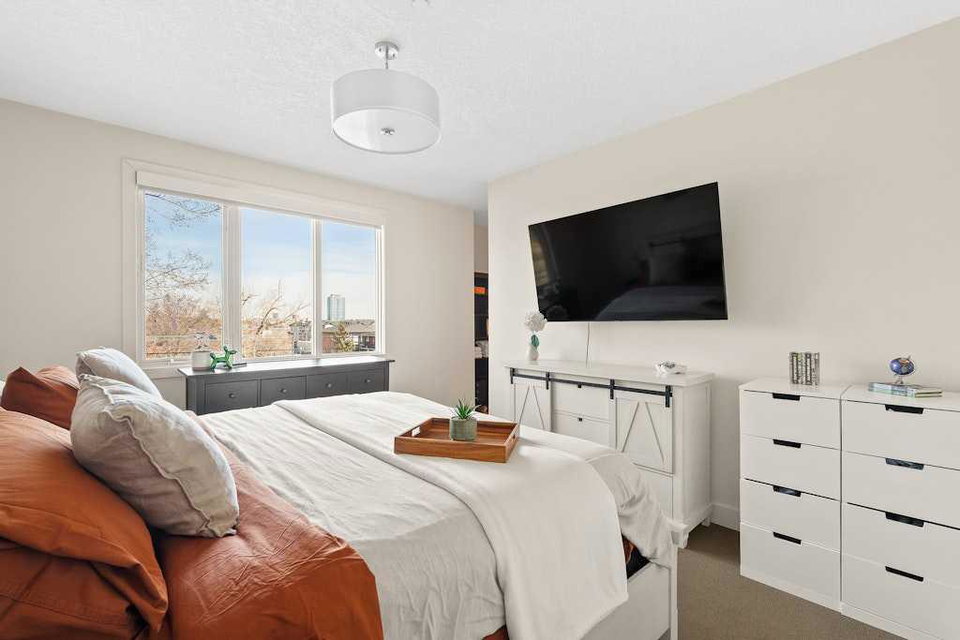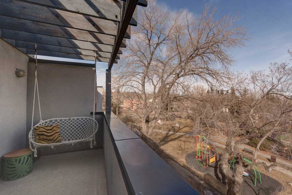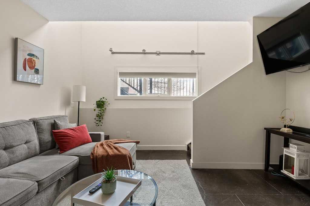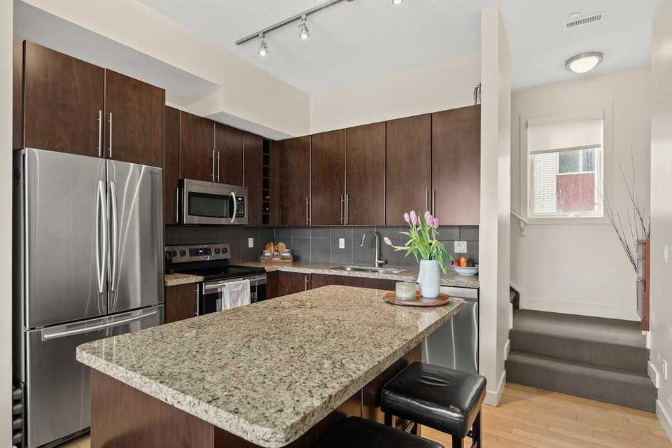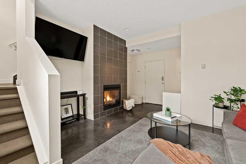 An incredible opportunity to own a 2 bedroom, 2.5 bathroom townhouse with nearly 1,900 square feet of developed space + an underground secured parking stall overlooking a park! Offering exceptional value, this move-in ready townhouse provides maintenance-free living while being just steps from downtown Calgary and the countless amenities of 17th Avenue. The lower level features polished concrete floors with a large living area that has a central gas fireplace – creating a cozy space for watching TV and is complete with a 2pc bathroom. The main level of the home has a large kitchen and dining area and the kitchen is complete with full-height cabinetry, granite countertops and a suite of stainless steel appliances. The open-to-below design features a large window that overlooks the park and allows natural light to flow through this space all day long – creating a bright space that is perfect for entertaining guests. The second level of the home features an expansive primary suite with a large walk-in closet and private ensuite with an oversized vanity and walk-in tiled shower. The top level features another large bedroom with its own private 4pc ensuite as well as a laundry area – conveniently located on the upper level. The rooftop balcony is the perfect outdoor space with downtown views and it overlooks the park, creating an open feel in this inner city property. Private access via a hallway on the main level leads to the parkade where you’ll find your secured underground parking stall. This property is steps from all the action but far enough away to provide you with a private setting for daily living. This beautiful townhouse spanning nearly 1,900 square feet is ideal for first time buyers, investors, or those looking for a maintenance-free lifestyle without compromising on location.