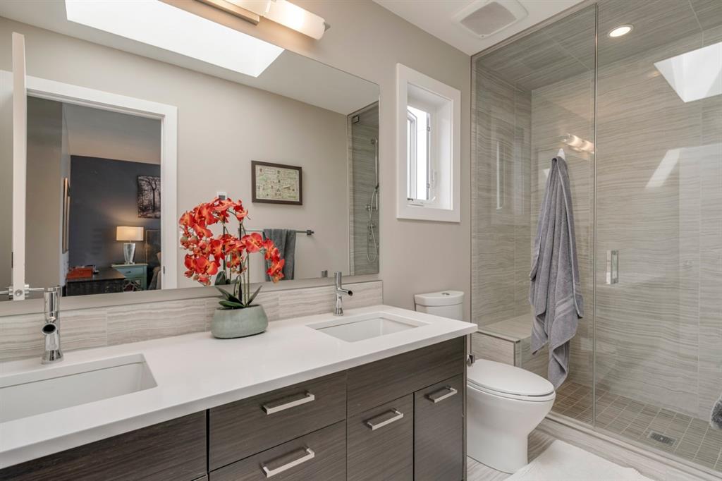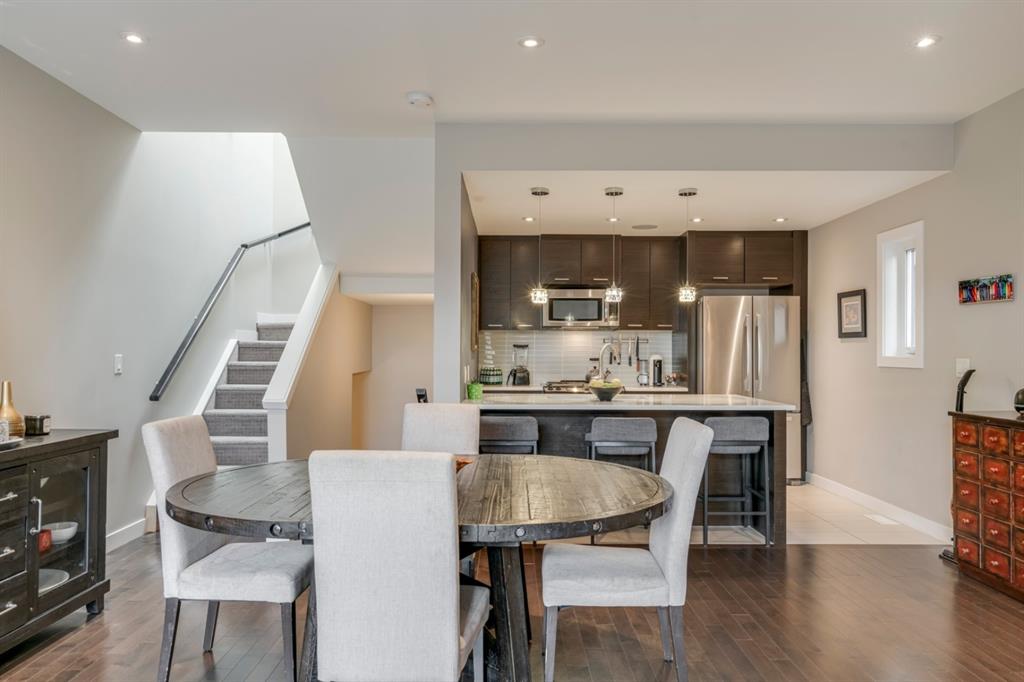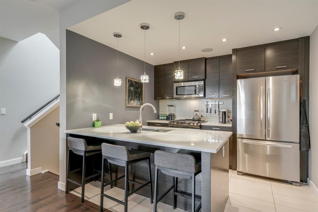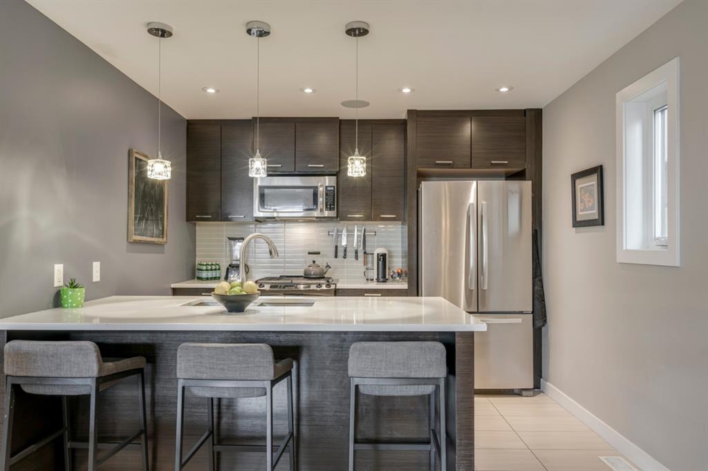 A fully developed 3 bedroom, 3.5 bathroom townhouse that shows like new and is move-in ready! Located with easy access to Crowchild Trail and just minutes from downtown, this townhome is perfectly located and incredibly well-priced. The main level is fully open with a kitchen that overlooks both living and dining areas. Harwood flooring flows throughout the main level and the main living area is complete with a gas fireplace. The master bedroom is complete with a walk-in closet and full en suite including dual sinks, a walk-in steam shower and in-floor heat. The second bedroom, main bathroom and laundry complete the upper level. The fully finished basement includes a large rec room that is perfect for a home theatre as well as a third bedroom and full bathroom! Central SONOs plays throughout the home and the backyard is the perfect space to relax with built-in seating and a small green patch for pets. Secured parking is in the detached garage provided added security all year.