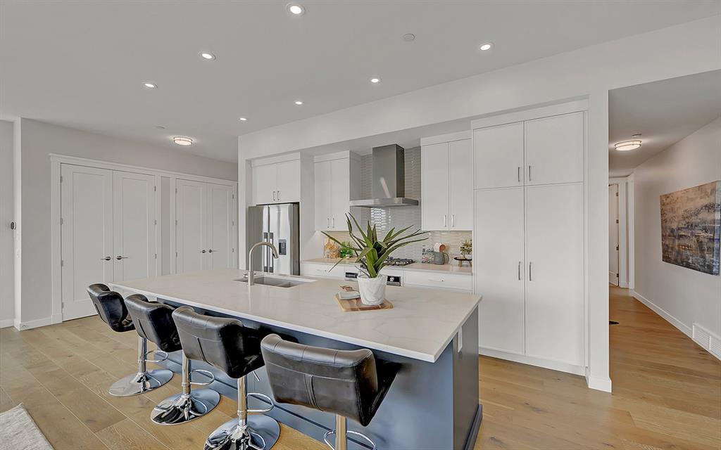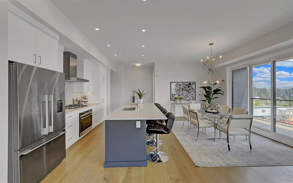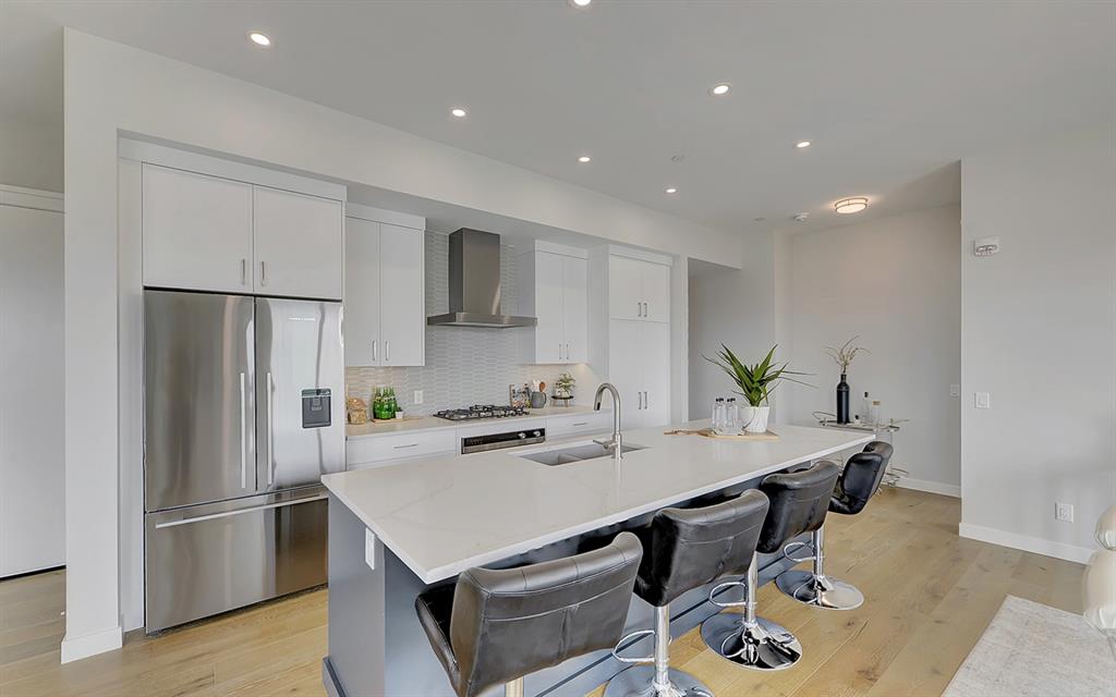 This stunning, exclusive-estate, single level residence in Capella provides the bungalow lifestyle that you have been looking for in the amenity-rich community of University District. With nearly 1,600 square feet of developed space, this home features 2 bedrooms, 2 bathrooms, a den, generous living areas and a private attached garage. This end-unit home has been professionally designed throughout and offers countless upgrades that provide everyday luxuries you can expect from your next home. Capella provides its residents a unique owners experience being 1 of only 6 units total within the building, and having only a single neighbouring unit on the same floor. The home features south, east and west exposure while a wall of west facing high performance windows in the main living area allow natural light to pour into the property, making for a bright and inviting space. The timeless kitchen overlooks both the living and dining room and is complete with beautiful two-tone cabinetry, stone countertops, an oversized kitchen island and a suite of built-in appliances. The spacious main living room has windows on two walls, providing picturesque views into the courtyard. The primary bedroom is located on the west side of the property with direct access to the balcony. On the east side of the residence is an additional and generous sized bedroom with ensuite access. The expansive spa-like en suite features a soaker tub, tiled shower, a private water closet and a large walk-through wardrobe. Completing the home is a den/office space and a laundry room located at the rear providing added convenience for daily living. A covered balcony spans the width of the dining area while overlooking the courtyard making for an incredible space to entertain guests. Capella is undoubtedly one of the most sought after developments in University District due to its convenient atmosphere and sense of community. Built with a Platinum LEED certification, homes have not only advanced building systems creating a reduced environmental impact, but also allowing for less sound attenuation between units. The lifestyle you’ve been craving is right here in Univeristy District where you can walk, bike, run and play at the convenience of all amenities being in close proximity. A truly unique property and community that ticks all the boxes.