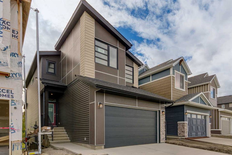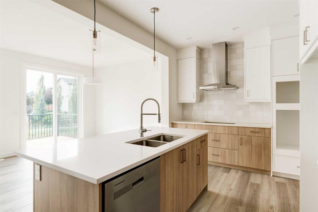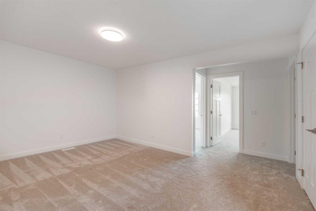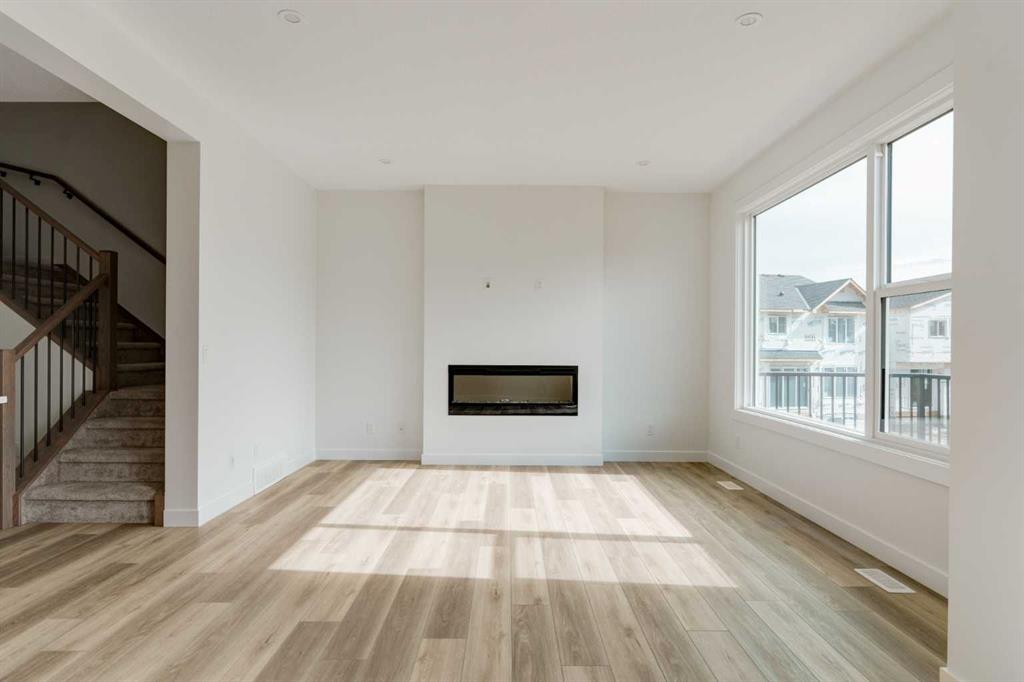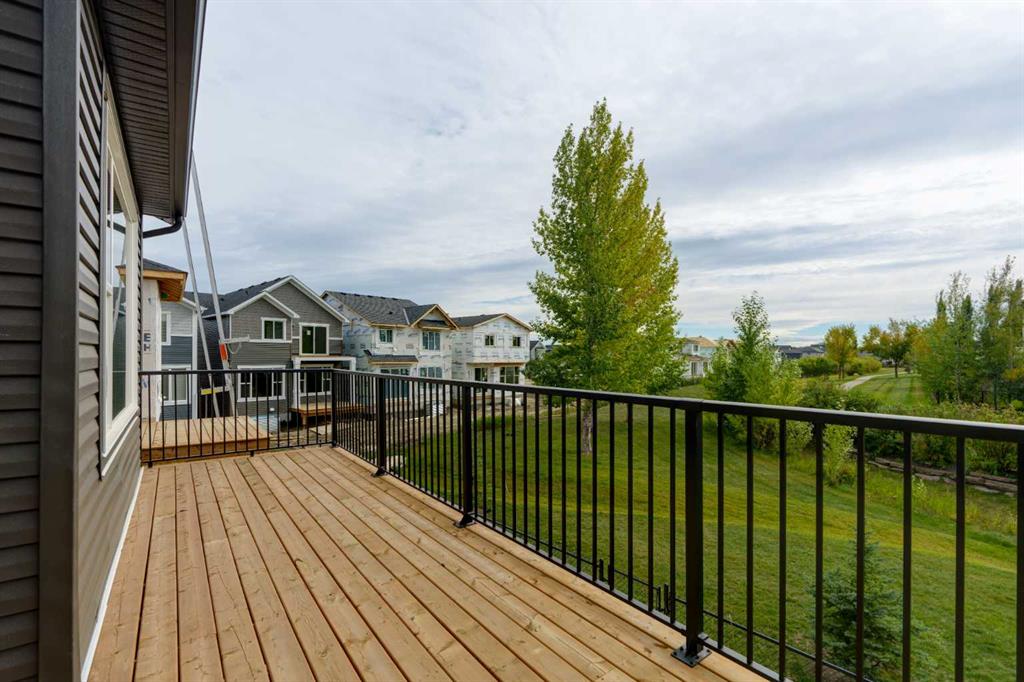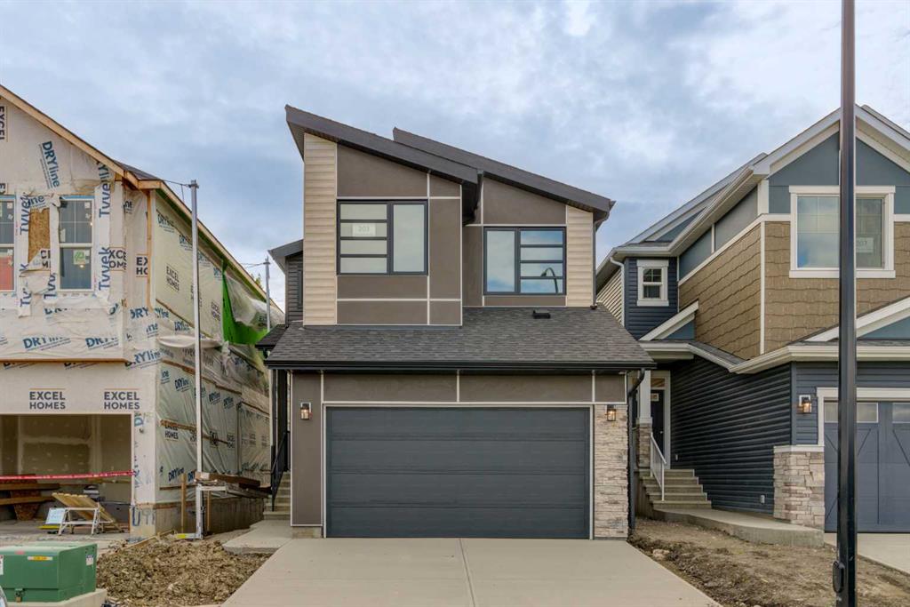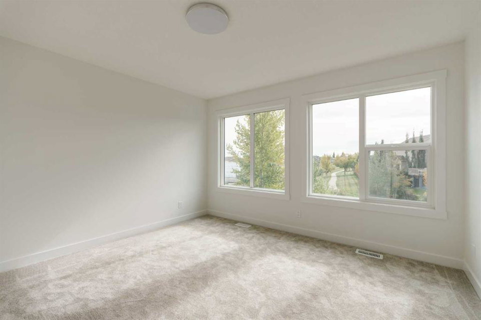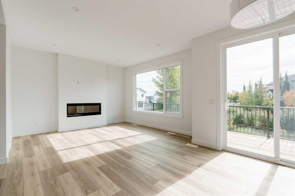 This beautiful brand new home features a walk-out basement and is perfectly situated on a lot that backs onto green space with mature trees, offering serene views and privacy – something you rarely find in suburban development! The gourmet kitchen features a gas cooktop, built-in oven & microwave and chimney range hood. The kitchen has an expansive walkthrough pantry off of the mud room from the double attached garage – adding convenience to everyday living. The kitchen opens to both the living and dining area, making the perfect space for entrainting and a wall of windows across the back of the home allow for incredible views while having natural light pour through the main level all day long! The main living area is complete with a cozy electric fireplace that adds to the ambiance on cooler winter days. The upper level features a central bonus room that separates the primary suite from the secondary bedrooms. The large primary bedroom has a private 5 pc ensuite that has dual sinks, a soaker tub, walk-in shower and direct access to laundry from the walk-in closet. Two more generous sized bedrooms, a full bathroom and laundry room complete the second level. The walkout basement is undeveloped and awaits your imagination with direct access to the backyard – the basement has its own private entrance. This brand new property includes builder warranty and Alberta New Home Warranty so you can purchase with peace of mind! This home is complete and fully move-in ready so you can celebrate the holidays in it this year!