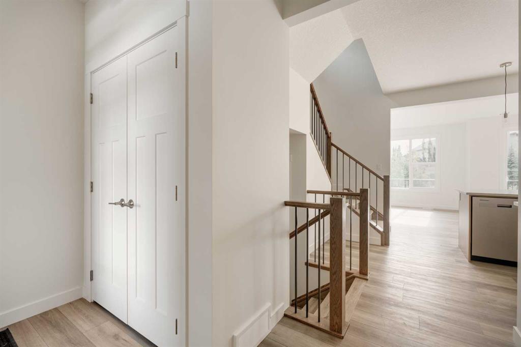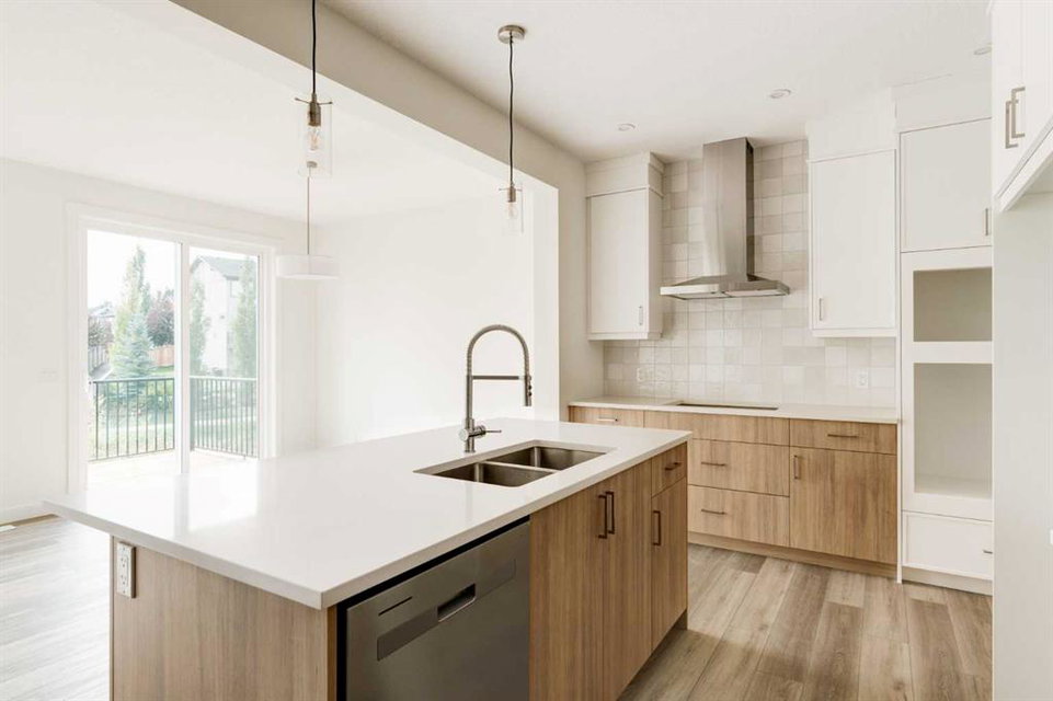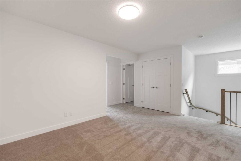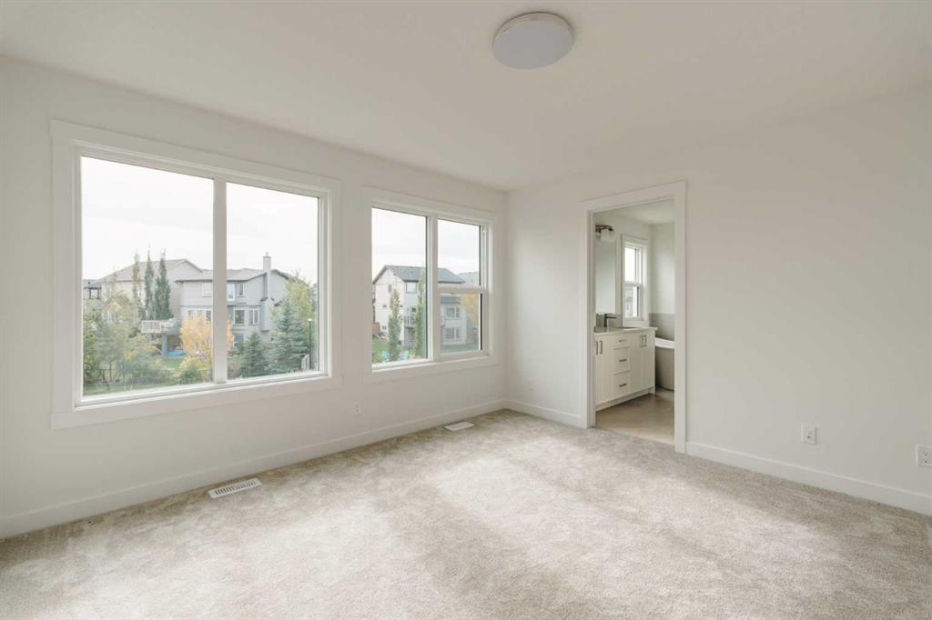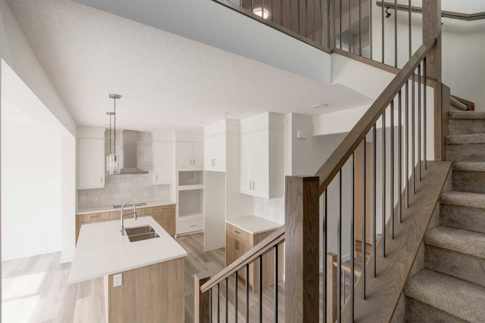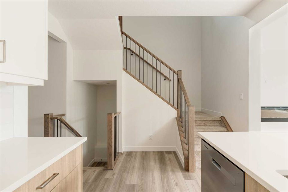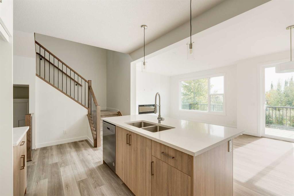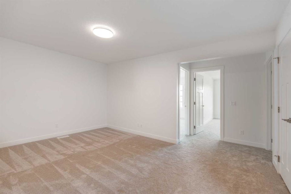 This beautiful brand new home features a walk-out basement and is perfectly situated on a lot that backs onto green space with mature trees, offering serene views and privacy – something you rarely find in suburban development! The gourmet kitchen features a gas cooktop, built-in oven & microwave and chimney range hood. The kitchen has an expansive walkthrough pantry off of the mud room from the double attached garage – adding convenience to everyday living. The kitchen opens to both the living and dining area, making the perfect space for entrainting and a wall of windows across the back of the home allow for incredible views while having natural light pour through the main level all day long! The main living area is complete with a cozy electric fireplace that adds to the ambiance on cooler winter days. The upper level features a central bonus room that separates the primary suite from the secondary bedrooms. The large primary bedroom has a private 5 pc ensuite that has dual sinks, a soaker tub, walk-in shower and direct access to laundry from the walk-in closet. Two more generous sized bedrooms, a full bathroom and laundry room complete the second level. The walkout basement is undeveloped and awaits your imagination with direct access to the backyard – the basement has its own private entrance. This brand new property includes builder warranty and Alberta New Home Warranty so you can purchase with peace of mind! This home is complete and fully move-in ready so you can celebrate the holidays in it this year!