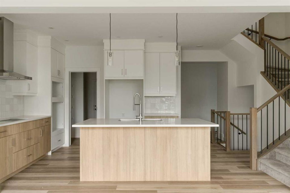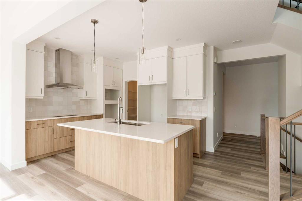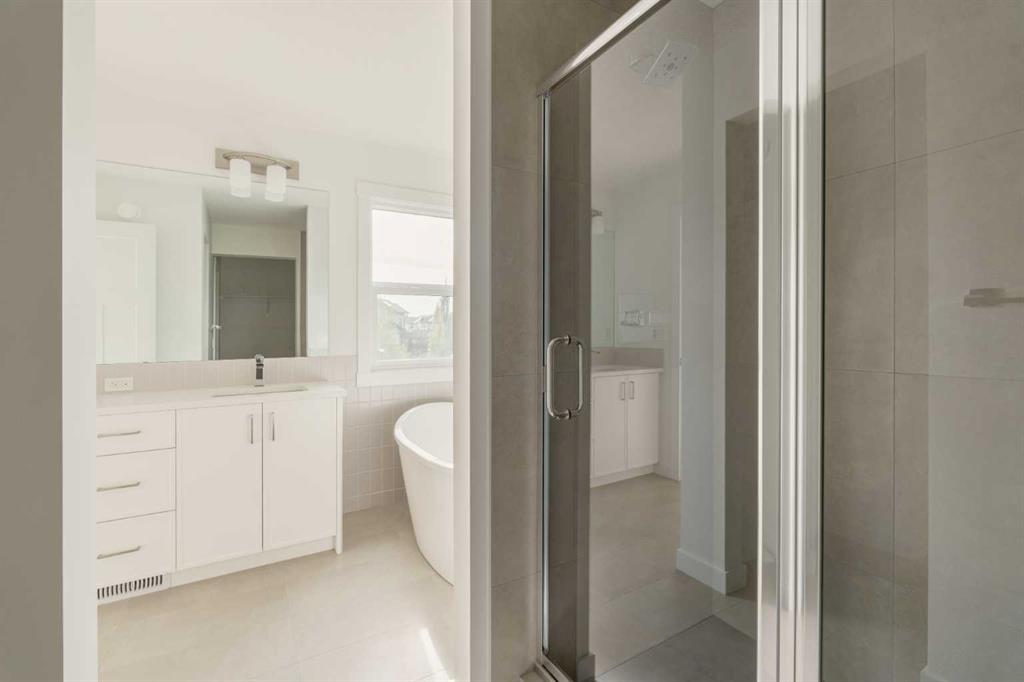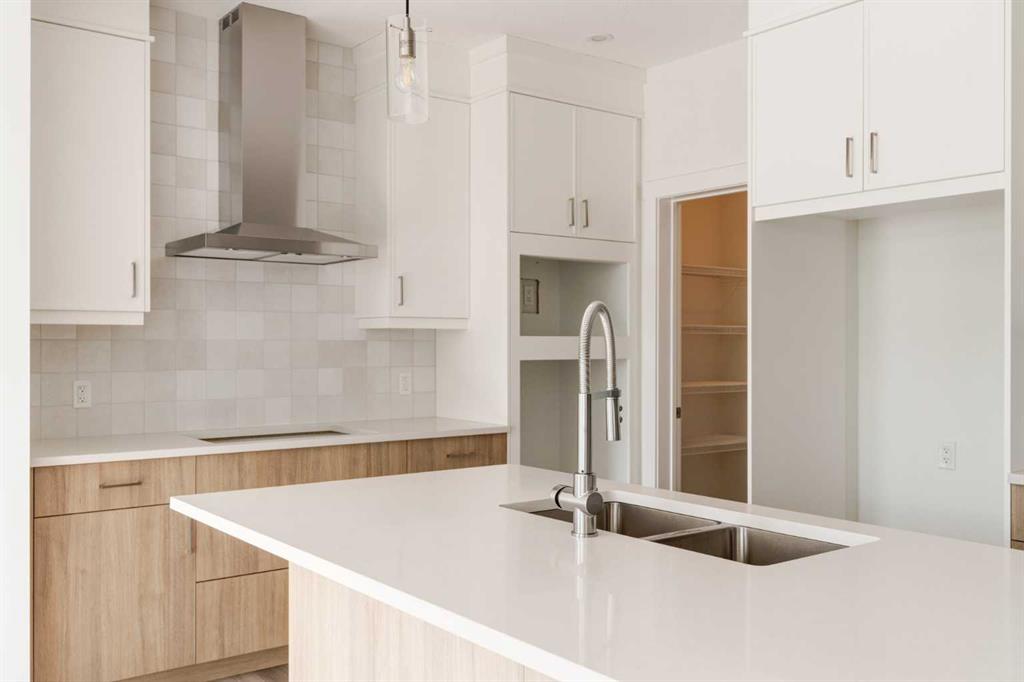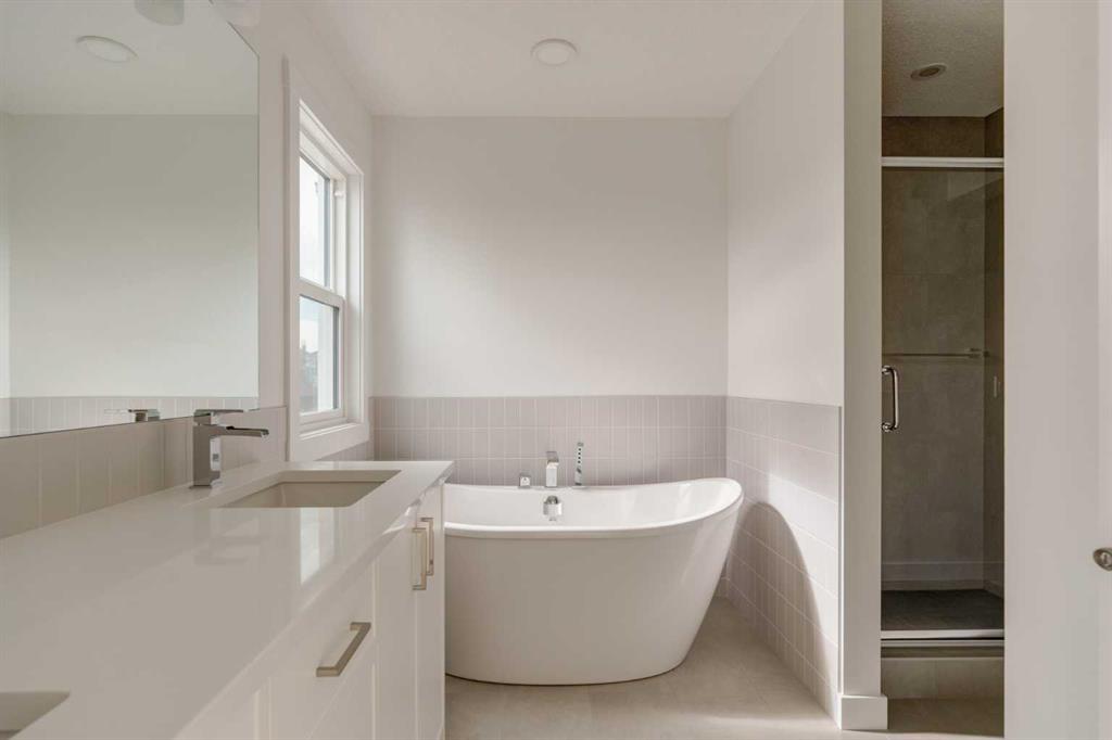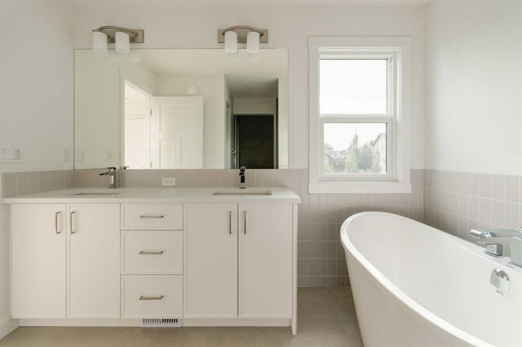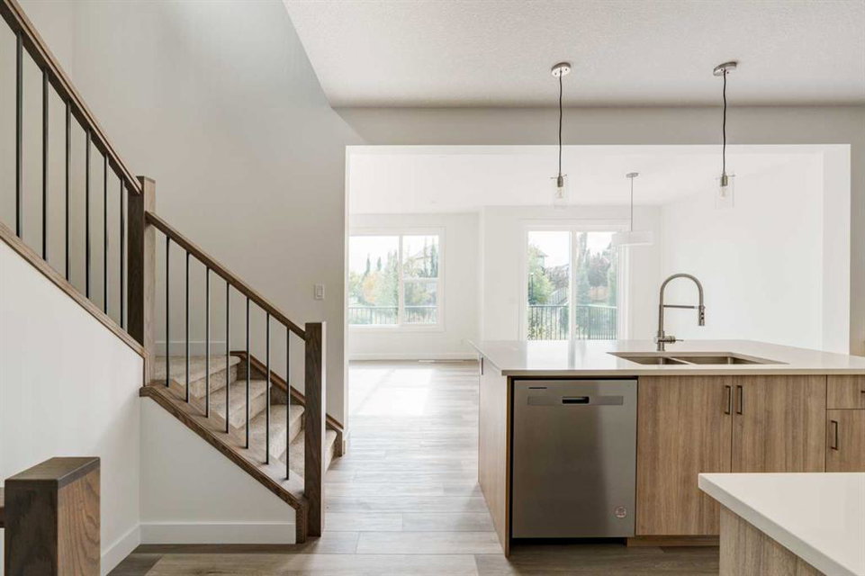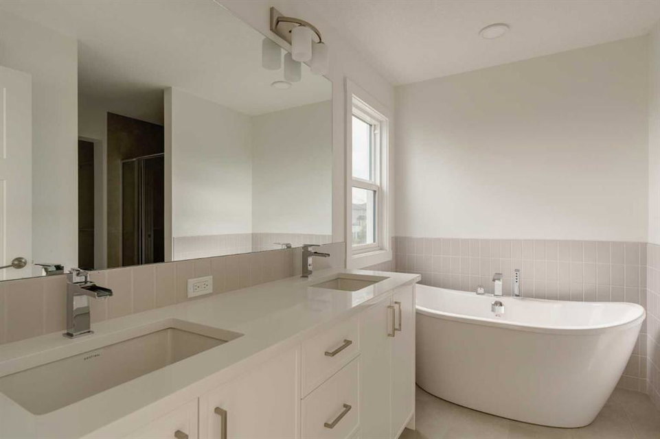This beautiful brand new home features a walk-out basement and is perfectly situated on a lot that backs onto green space with mature trees, offering serene views and privacy – something you rarely find in suburban development! The gourmet kitchen features a gas cooktop, built-in oven & microwave and chimney range hood. The kitchen has an expansive walkthrough pantry off of the mud room from the double attached garage – adding convenience to everyday living. The kitchen opens to both the living and dining area, making the perfect space for entrainting and a wall of windows across the back of the home allow for incredible views while having natural light pour through the main level all day long! The main living area is complete with a cozy electric fireplace that adds to the ambiance on cooler winter days. The upper level features a central bonus room that separates the primary suite from the secondary bedrooms. The large primary bedroom has a private 5 pc ensuite that has dual sinks, a soaker tub, walk-in shower and direct access to laundry from the walk-in closet. Two more generous sized bedrooms, a full bathroom and laundry room complete the second level. The walkout basement is undeveloped and awaits your imagination with direct access to the backyard – the basement has its own private entrance. This brand new property includes builder warranty and Alberta New Home Warranty so you can purchase with peace of mind! This home is complete and fully move-in ready so you can celebrate the holidays in it this year!