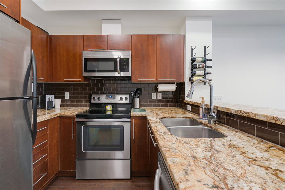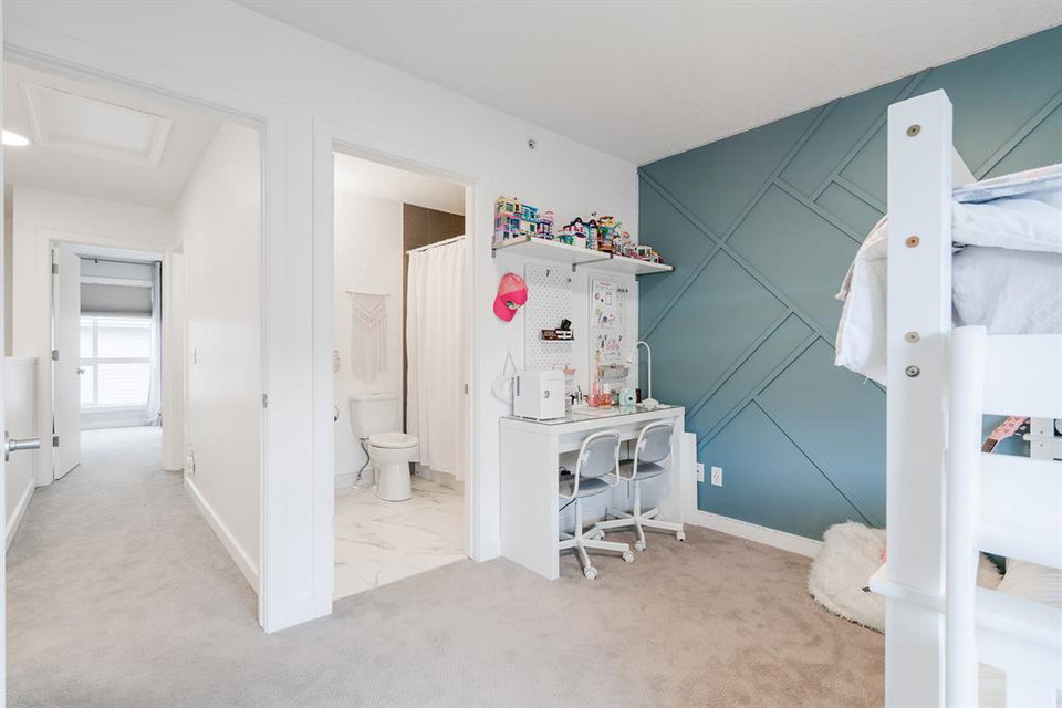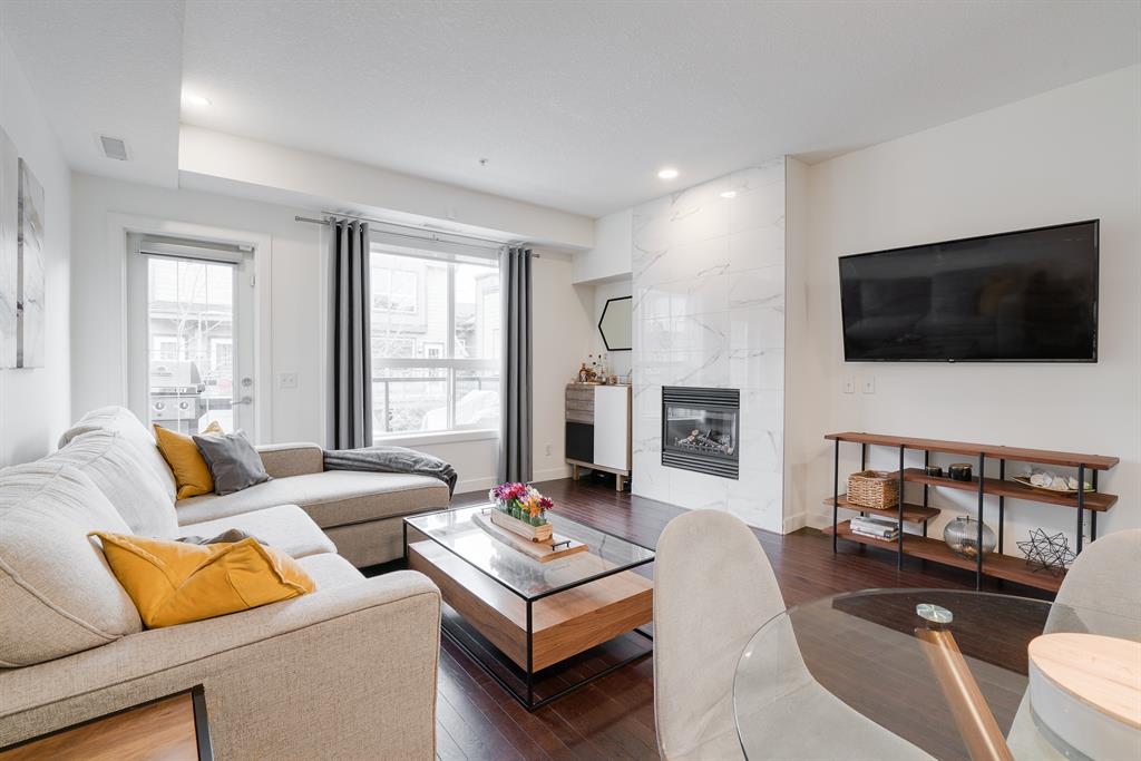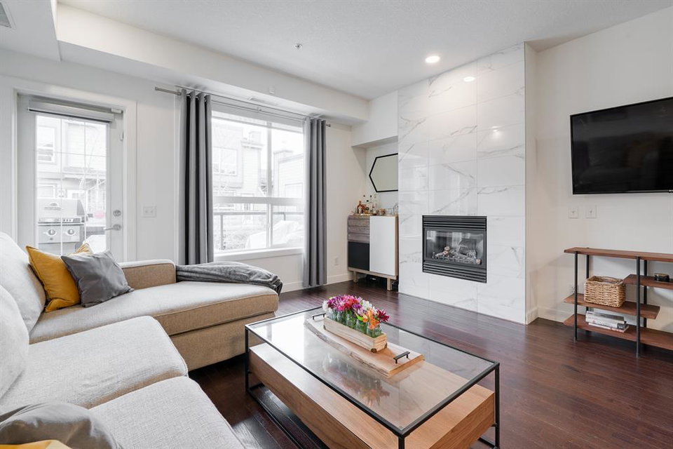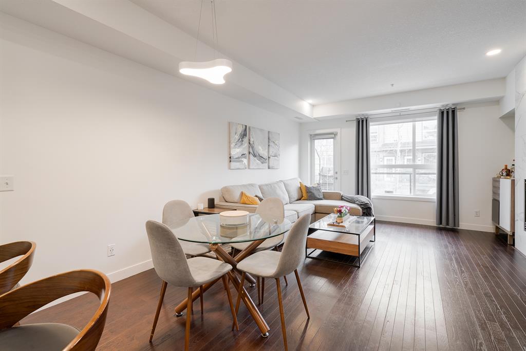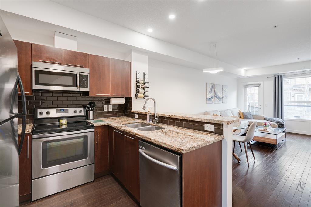 This beautiful 2 bedroom, 2.5 bathroom townhome is located in the heart of Marda Loop with convenient walking access to countless amenities. The dual-primary bedroom plan makes this property perfect for young professionals, investors, or a small family. The main level is bright and open with a kitchen complete with granite countertops that overlooks the main dining and living area. The living area includes a wall of windows providing natural light all day long. A central gas fireplace is perfect for winter nights and has been updated with new floor-to-ceiling tile. The dining area has ample space for a large table and there is additional seating at the raised eating bar. There is a powder room in the main level and a balcony off of the main living area that overlooks the central courtyard. The two primary bedrooms are located on the upper level – separate from the main living space. The large bedrooms are each complete with their own en suite and both have large windows allowing natural light to flow through all day. Laundry is conveniently located on the upper level. A titled underground parking stall and a storage locker are included with this townhouse. Recent updates include painting, carpet and tile work. This property is perfect for those looking to live the Marda Loop life with easy access to all the community has to offer. With low condo fees, maintenance-free living, your own private entrance/exit and no common hallways/elevators, this property is an ideal long term investment. Marda Loop’s development is getting better by the day – now is the time to invest in this beautiful and vibrant inner city community.