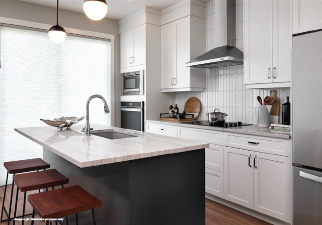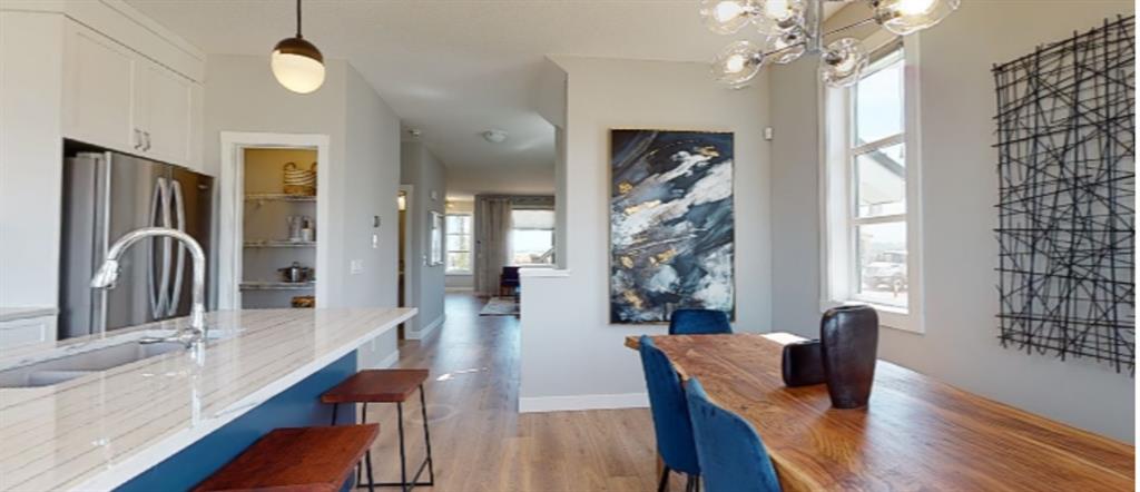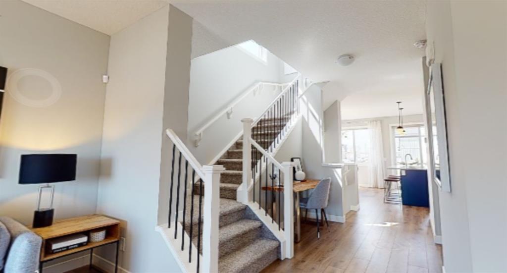 Come check out this open concept nearly 1500 square foot semi-detached home in the community of Seton! Main floor layout is perfect for entertaining and includes a bright kitchen and dining area, large living room, and flex space! Upper floor has a centrally located entertainment room to offer privacy between the master and secondary bedrooms. Additional features include gourmet style kitchen with stainless appliances, stone countertops, chimney hoodfan, and built in wall oven. The main floor boasts 9′ ceilings, plank flooring, fireplace, railing, side entry door, and a neutral color scheme. The basement includes 9′ foundation walls and plumbing rough-ins to accommodate a future basement suite addition. Located within Seton’s residential area and close to the new Seton Commercial District, South Health Campus, High School, and future LRT Park n’ Ride, this community has everything you need!