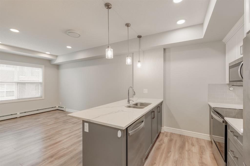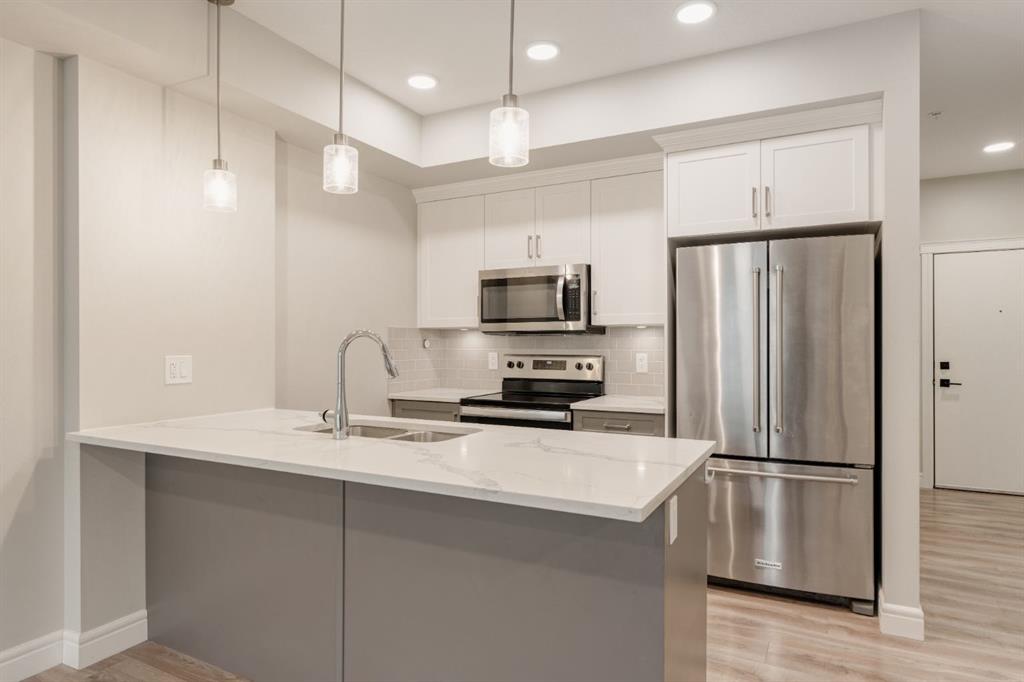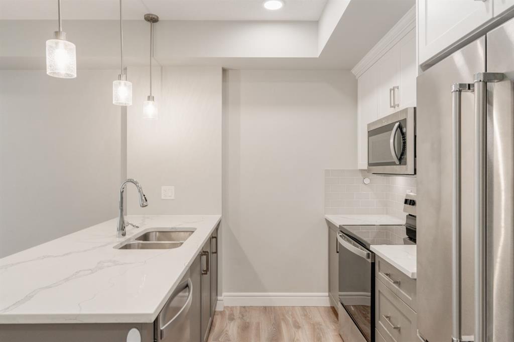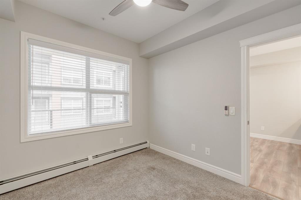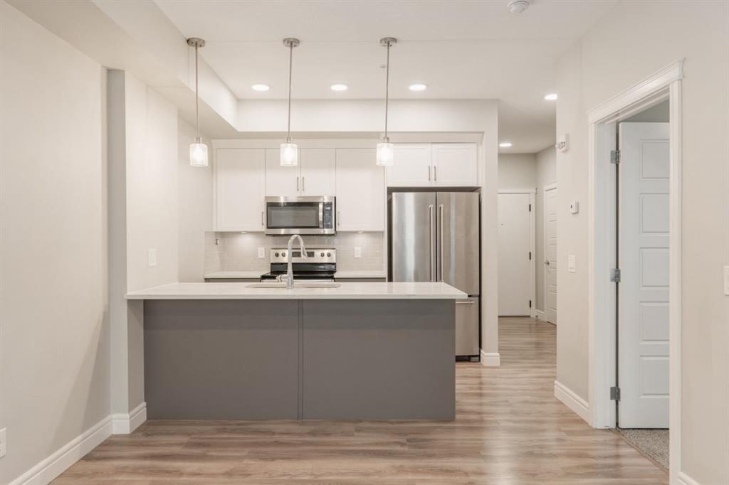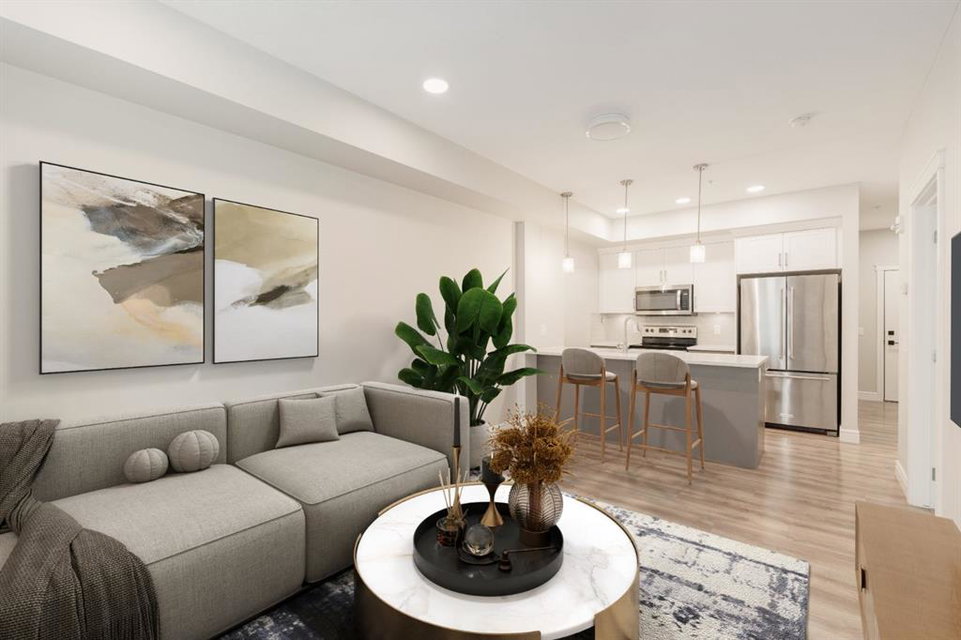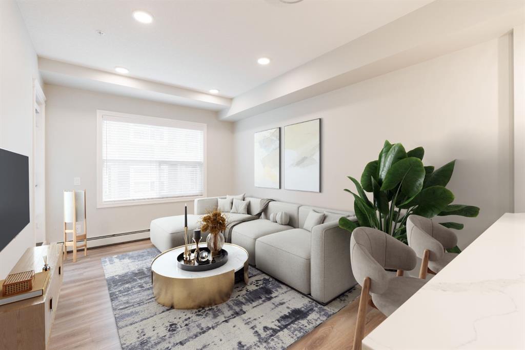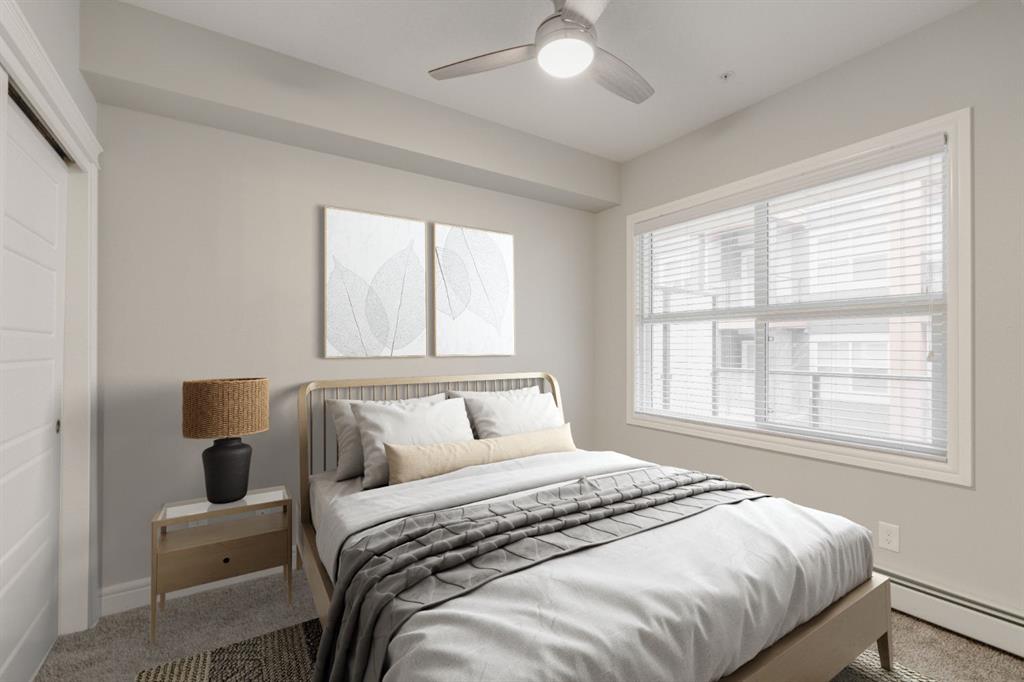 Welcome to your retreat in the heart of Seton! This 1-bedroom, 1-bathroom + den apartment perfectly balances convenience and comfort. Nestled in a sought-after neighborhood, it’s just steps away from a variety of amenities, making it an ideal opportunity for first-time buyers or investors seeking a turnkey property. Recently painted, the home features a beautiful kitchen with two-tone cabinetry – light grey lower cabinets paired with white upper cabinets and quartz countertops. Stainless-steel appliances and a pantry enhance its functionality, while the spacious peninsula island offers extra seating and storage. The kitchen flows effortlessly into the dining and living areas, creating an inviting space for hosting guests or unwinding after a long day. This south-facing unit is bathed in natural light thanks to large windows in the living room. The generous primary bedroom includes a large closet and a window overlooking the balcony. The den offers versatility as a home office, media space, or extra storage or guest room. Completing the unit is a 4-piece bathroom and a utility room with in-suite laundry and additional storage for everyday convenience. Enjoy summer barbecues or relax on your sunny south-facing balcony. The property also includes a separate storage locker and a titled parking stall. If you have pets, they are welcome! This building allows 2 dogs, 2 cats or one of each! Located just a short walk from the largest YMCA in North America, South Health Campus, and the Seton Retail District, this stunning property is not to be missed. Seize this chance to own a beautiful home and start building your equity today!