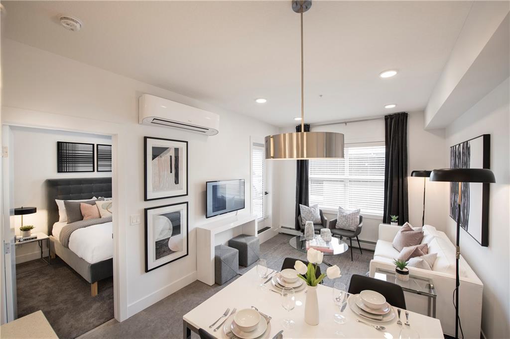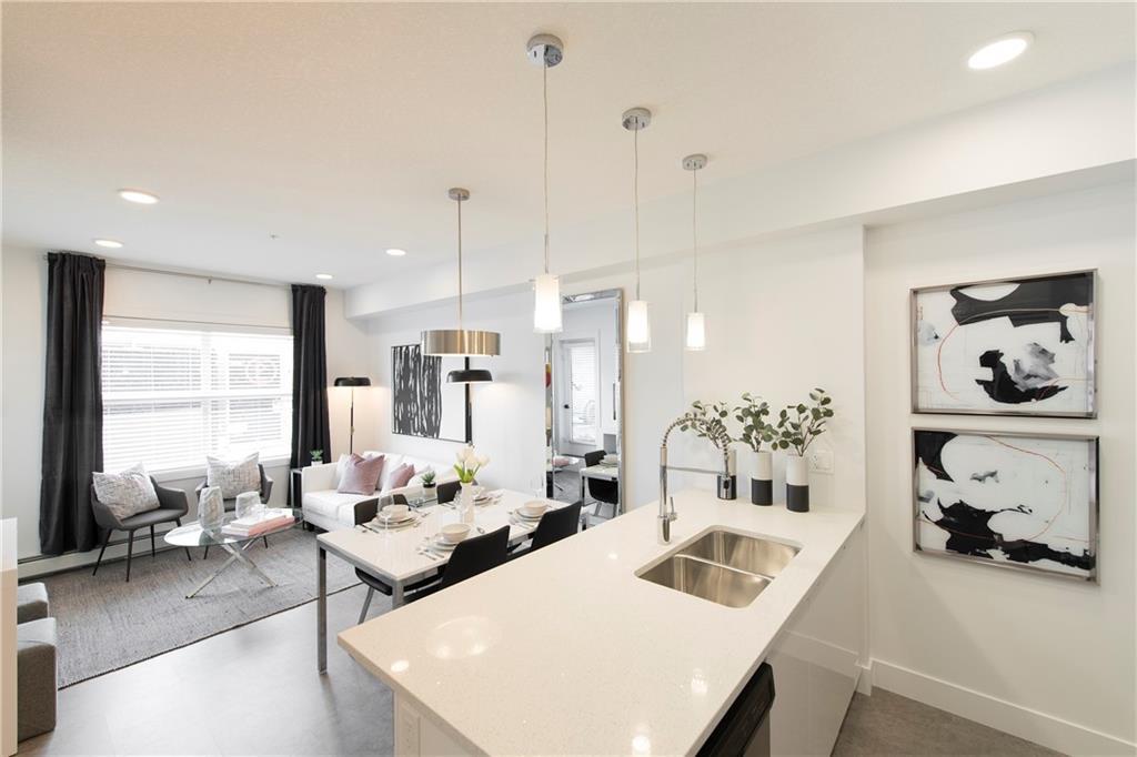 The ‘Verde’ built by Rohit Communities, one of Alberta’s largest homebuilders years is the perfect condo for an investor or first time homebuyer that is looking forward to building their own equity and stop paying rent! This brand new Top Floor condo features an open concept with the kitchen overlooking both the living and dining areas. A master bedroom, full bathroom with upgraded walk-in shower, a den, and in-suite laundry complete this condo with low monthly fees that cover heat, water/sewer and building insurance. This home is finished in our Boho Chic designer interior with beautiful lower blue cabinets accented with brass hardware, marble style quartz countertops throughout, laminate flooring in the living space and tiled bathroom floors. *Please note: property is under construction and photos are from a show suite. Actual homes finish will vary.