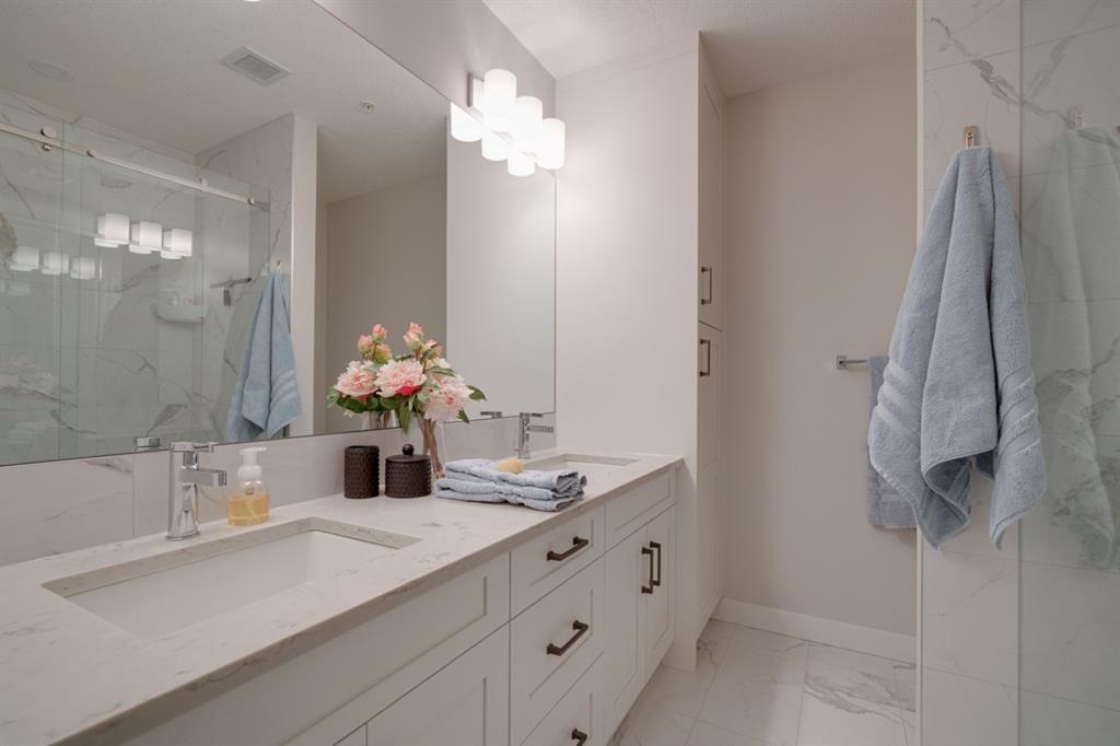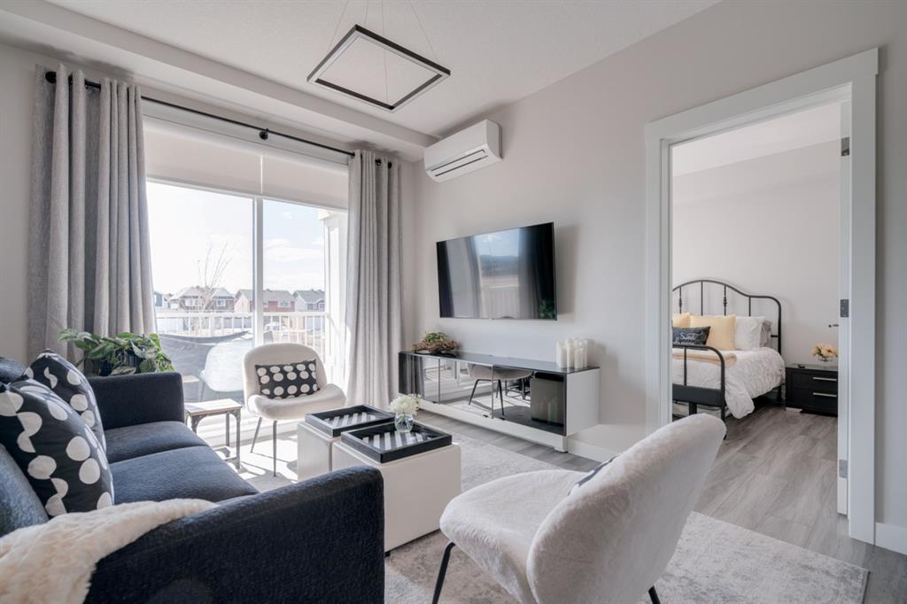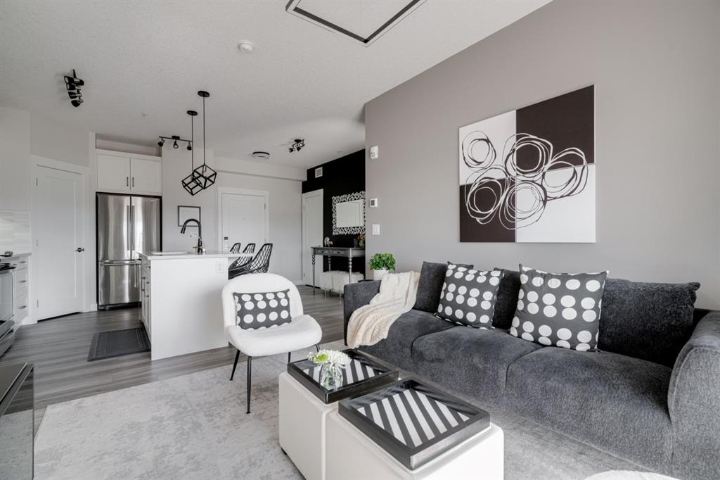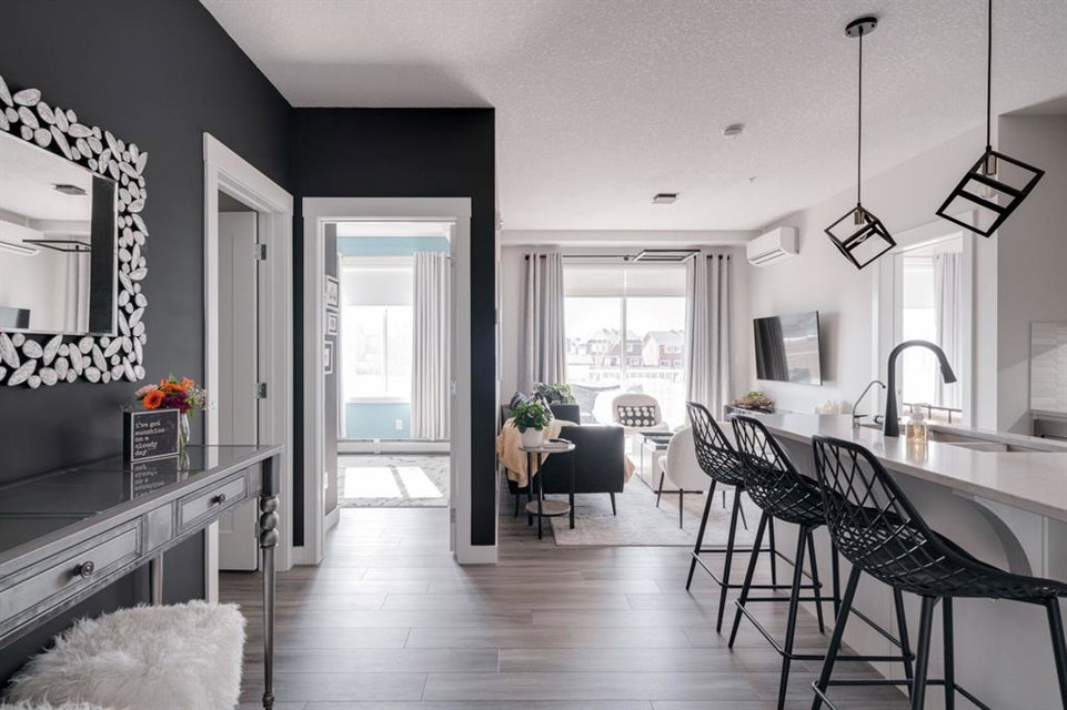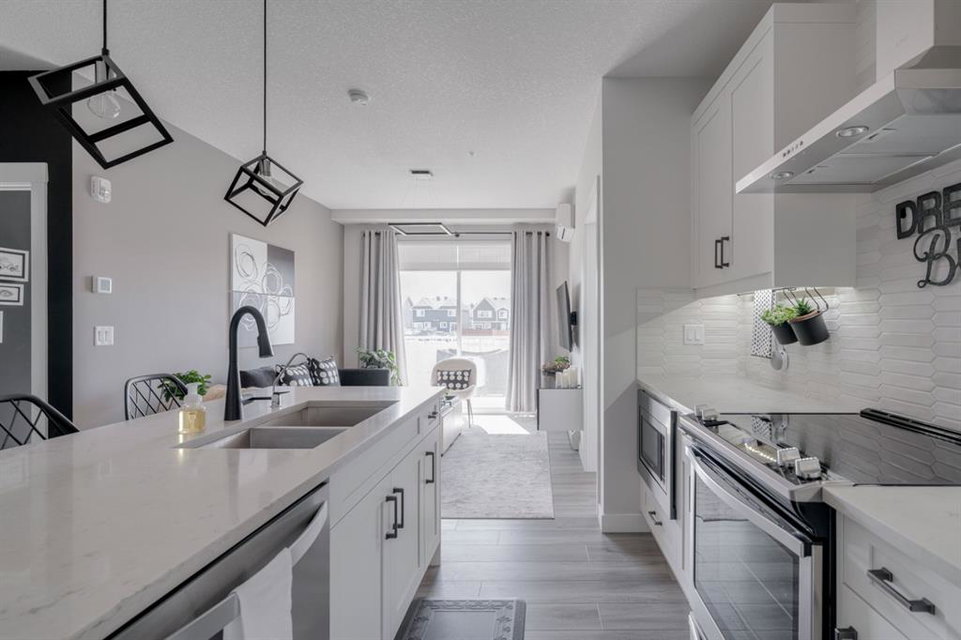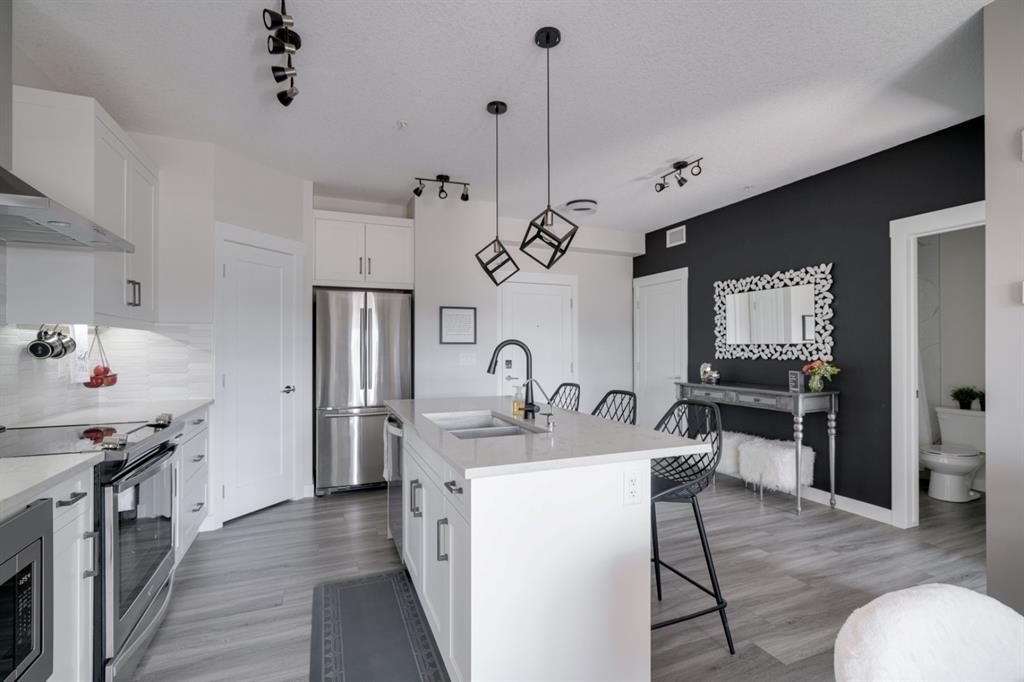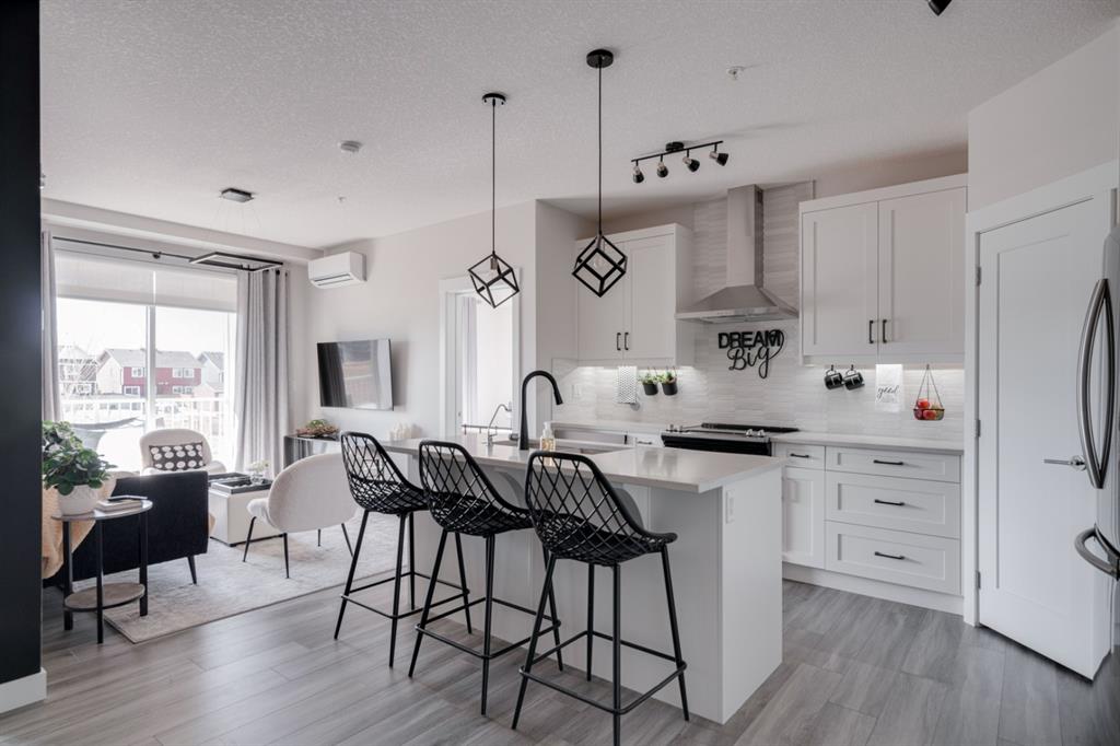 This immaculate 2 bedroom, 2 bathroom condo offers incredible value and is perfect for an investor, young couple or those looking to downsize. This well-located unit has easy access to the South Health Campus, YMCA, public transit and is walking distance to grocery stores, restaurants, pubs, and a short wall/drive to the nearby Seton Retail District. The bright and open south-facing layout allows natural light into the entire home all day long. The open concept living area includes a kitchen that overlooks the living room and dining area creating the perfect space for entertaining. This bright space is complete with a timeless kitchen including white cabinets, quartz countertops and designer lighting. Completing the kitchen is a suite of stainless-steel appliances, a range hood, pantry and kitchen island. The spacious primary bedroom has ample space and features a walk-through closet and private 4-piece en suite with walk-in shower and dual sinks. Additionally, the home has a second bedroom, 4-piece main bathroom and in-suite laundry. The balcony offers a perfect place to enjoy the sun lounging in the summer with friends and family. If the summer heat is too much, the air conditioning in the home will cool you off. Finishing the unit is an underground parking stall (titled) and assigned storage locker to keep your valuables and vehicle safe and secure year-round. The unit is ideally located with close assess to both the elevator and stairwell providing added convenience for groceries or when going for walks. Only minutes to both Deerfoot and Stoney Trail, this property has easy access to the entire city. Maintenance-free living in this heavily upgraded condo offering incredible value for those wanting a spacious two-bedroom home. Stop renting and start building equity today!