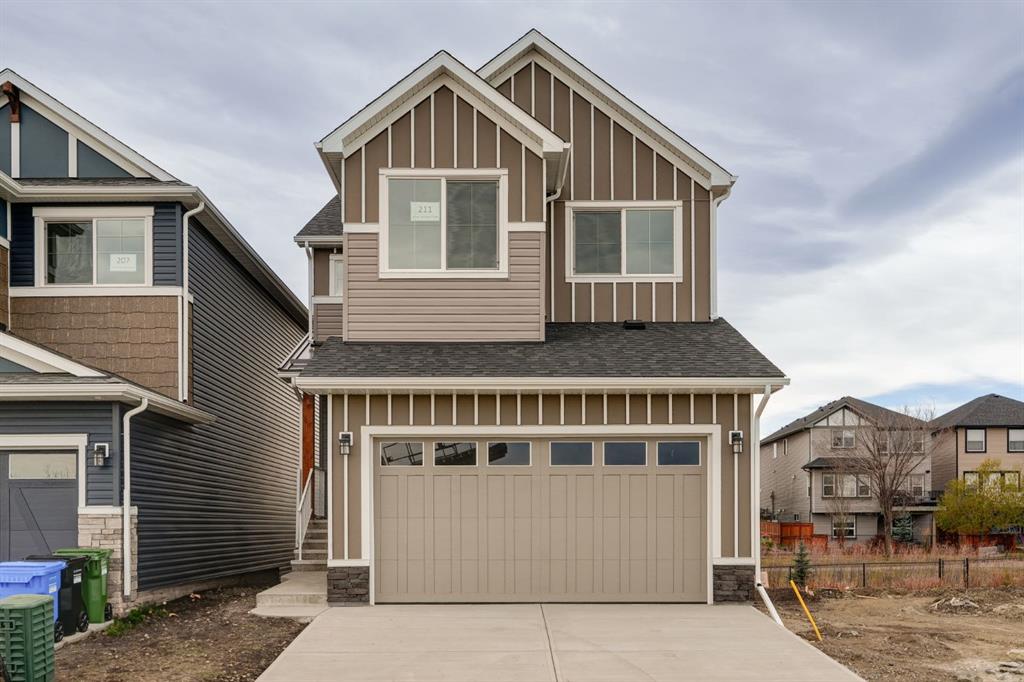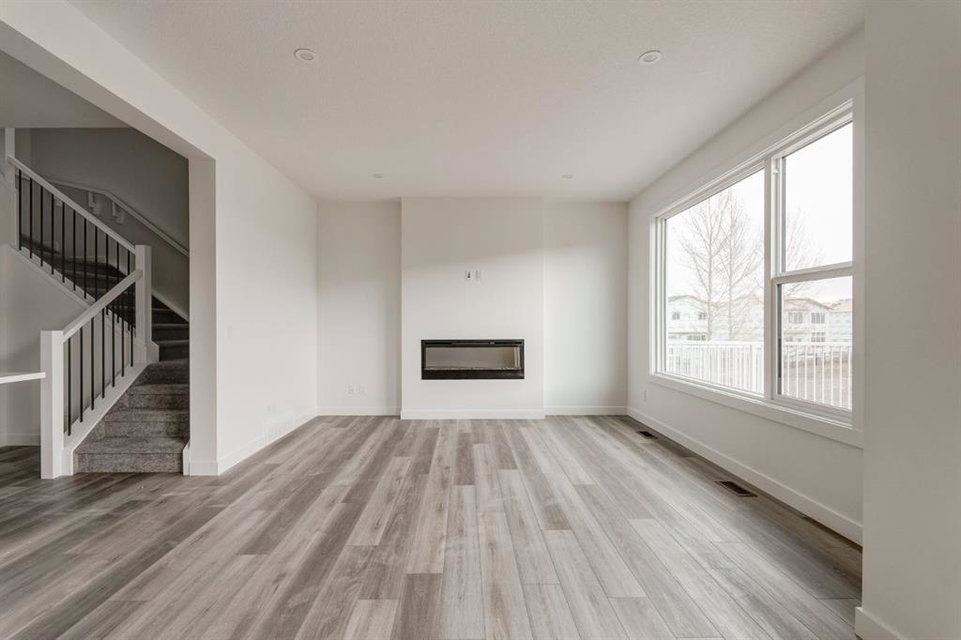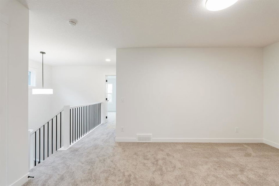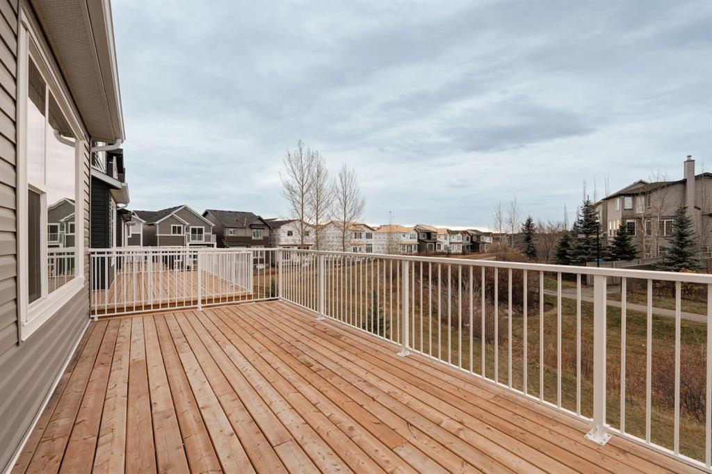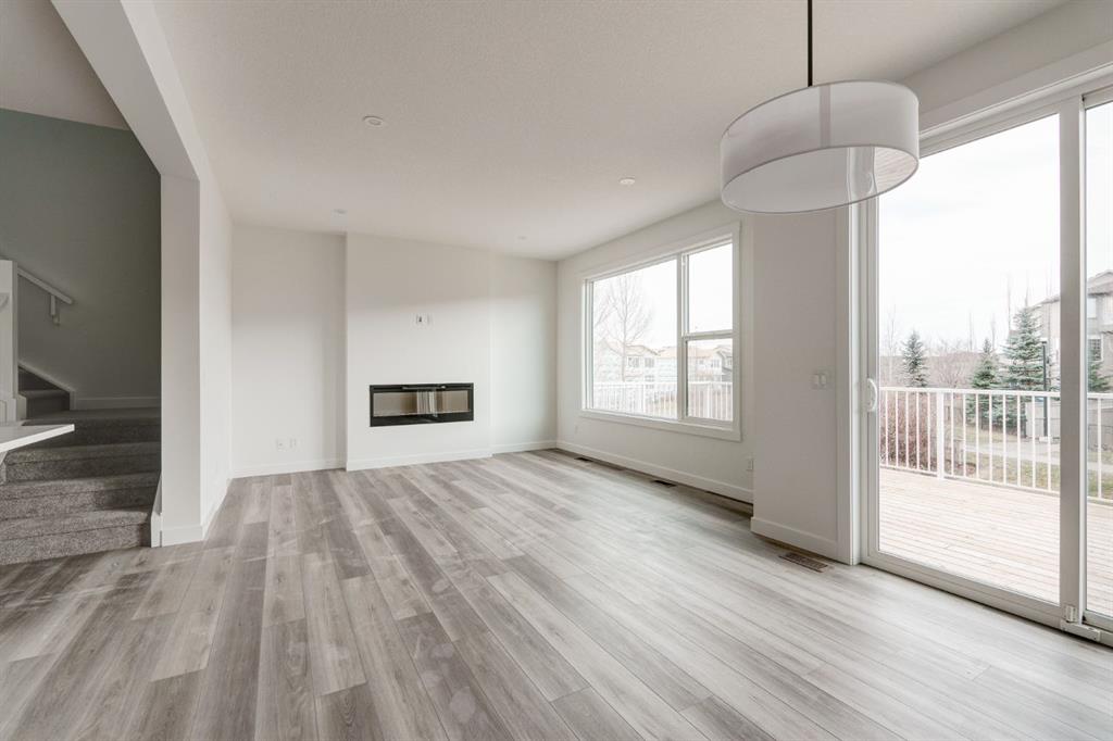 This stunning, brand-new home built by award-winning Brookfield Residential is move-in ready with a possession before the holidays! The ‘Rundle 24’ features 2 living areas, 3 bedrooms, 2.5 bathrooms and a walk-out basement. The lot is ideally positioned, backing onto a green space with mature trees, offering added privacy – something rarely found in suburban communities. The chef-inspired kitchen is equipped with a gas cooktop, built-in oven and microwave, and a chimney range hood. It also features a spacious walkthrough pantry, conveniently accessed from the mudroom leading to the double attached garage, improving everyday functionality. Open to both the living and dining areas, the kitchen creates a seamless flow perfect for entertaining. A wall of windows spans across the back of the home, flooding the main floor with natural light and providing views of the green space. The cozy electric fireplace in the living area adds a warm touch, perfect for winter evenings. A rear deck spans the entire width of the home and creates the perfect space to relax or entertaining in the summer. A 2-pc powder room completes the main level. Upstairs, a central bonus room separates the primary suite from the secondary bedrooms, providing both privacy and space. The large primary bedroom features a luxurious 5-piece ensuite with dual sinks, a soaker tub, a walk-in shower, and direct access to the laundry room through the walk-in closet. Two additional generously sized bedrooms, a full bathroom, and a large linen closet complete the upper level. The walk-out basement is ready for your personal touch, with direct access to the backyard and its own private entrance—offering great potential for future development. This home comes with builder and Alberta New Home Warranty, giving you peace of mind with your purchase. Fully completed and move-in ready, this home is perfect for celebrating the holidays this year!