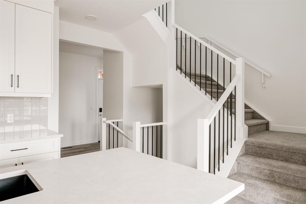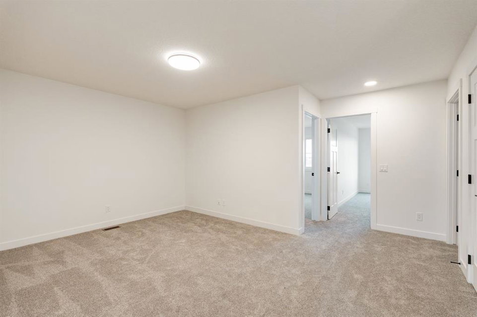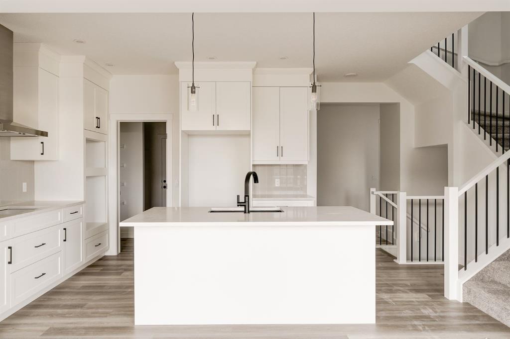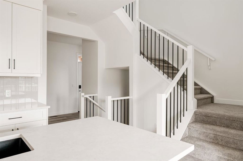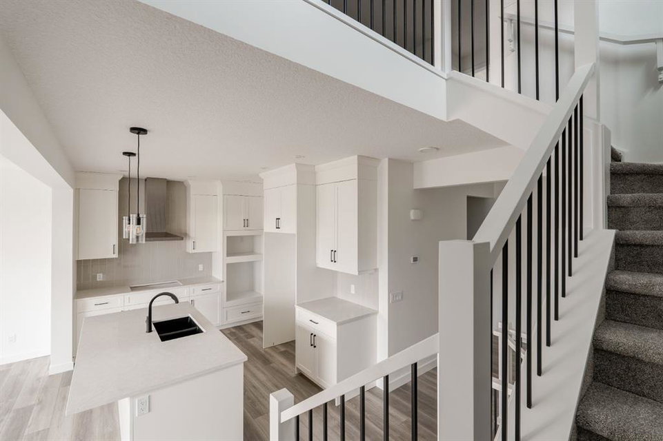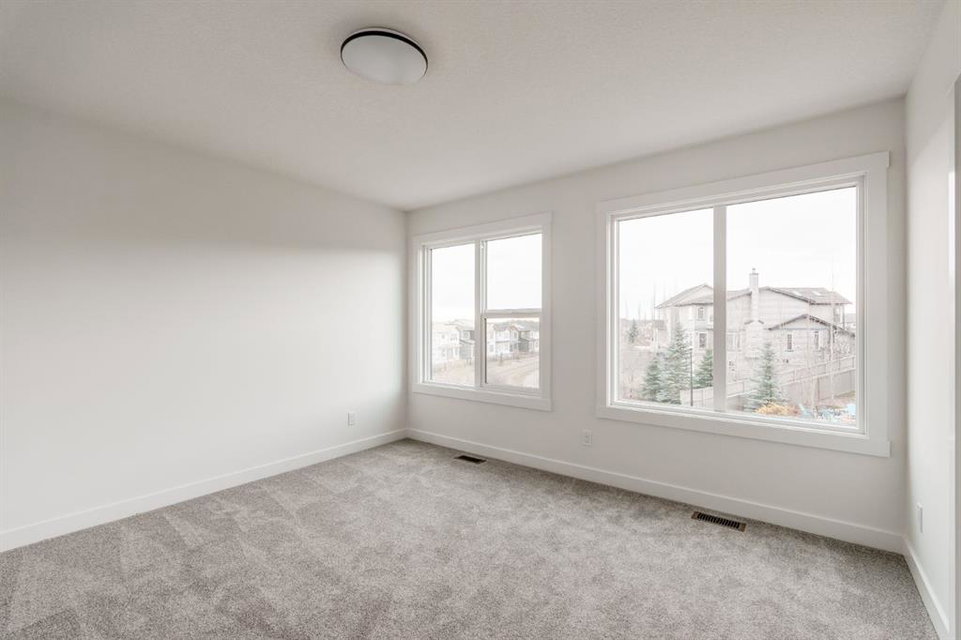 This stunning, brand-new home built by award-winning Brookfield Residential is move-in ready with a possession before the holidays! The ‘Rundle 24’ features 2 living areas, 3 bedrooms, 2.5 bathrooms and a walk-out basement. The lot is ideally positioned, backing onto a green space with mature trees, offering added privacy – something rarely found in suburban communities. The chef-inspired kitchen is equipped with a gas cooktop, built-in oven and microwave, and a chimney range hood. It also features a spacious walkthrough pantry, conveniently accessed from the mudroom leading to the double attached garage, improving everyday functionality. Open to both the living and dining areas, the kitchen creates a seamless flow perfect for entertaining. A wall of windows spans across the back of the home, flooding the main floor with natural light and providing views of the green space. The cozy electric fireplace in the living area adds a warm touch, perfect for winter evenings. A rear deck spans the entire width of the home and creates the perfect space to relax or entertaining in the summer. A 2-pc powder room completes the main level. Upstairs, a central bonus room separates the primary suite from the secondary bedrooms, providing both privacy and space. The large primary bedroom features a luxurious 5-piece ensuite with dual sinks, a soaker tub, a walk-in shower, and direct access to the laundry room through the walk-in closet. Two additional generously sized bedrooms, a full bathroom, and a large linen closet complete the upper level. The walk-out basement is ready for your personal touch, with direct access to the backyard and its own private entrance—offering great potential for future development. This home comes with builder and Alberta New Home Warranty, giving you peace of mind with your purchase. Fully completed and move-in ready, this home is perfect for celebrating the holidays this year!