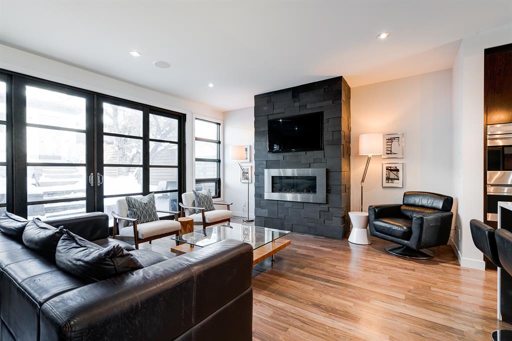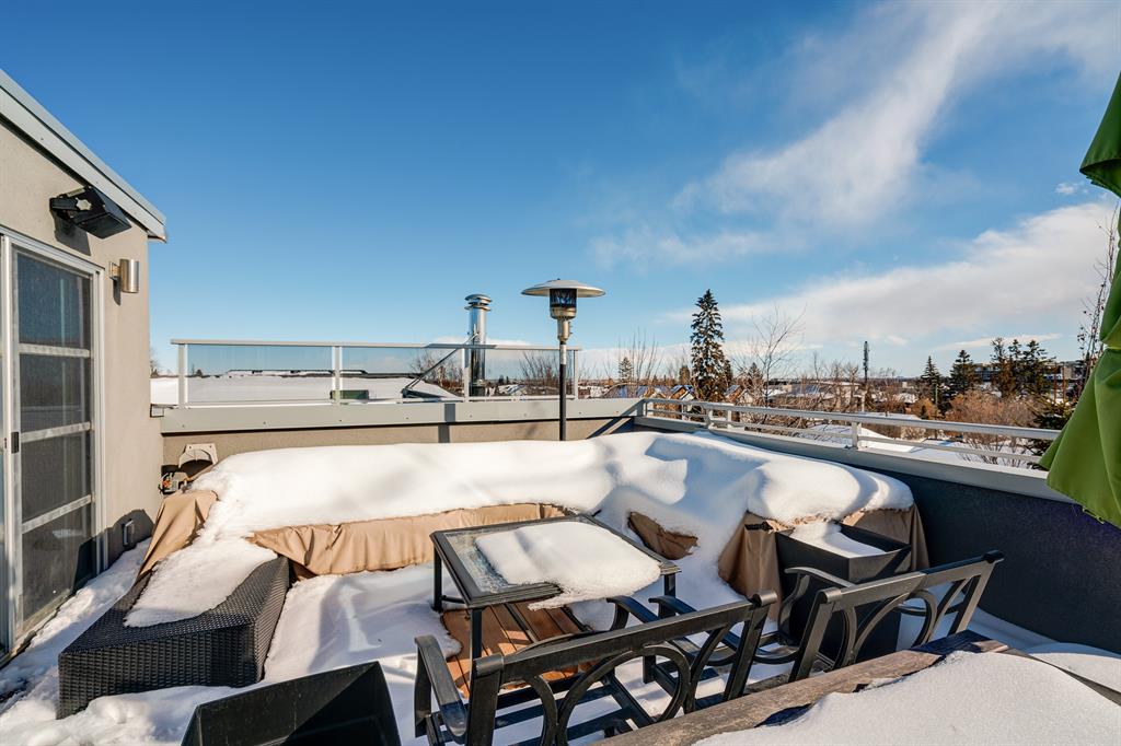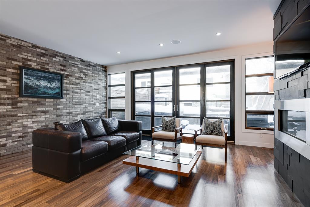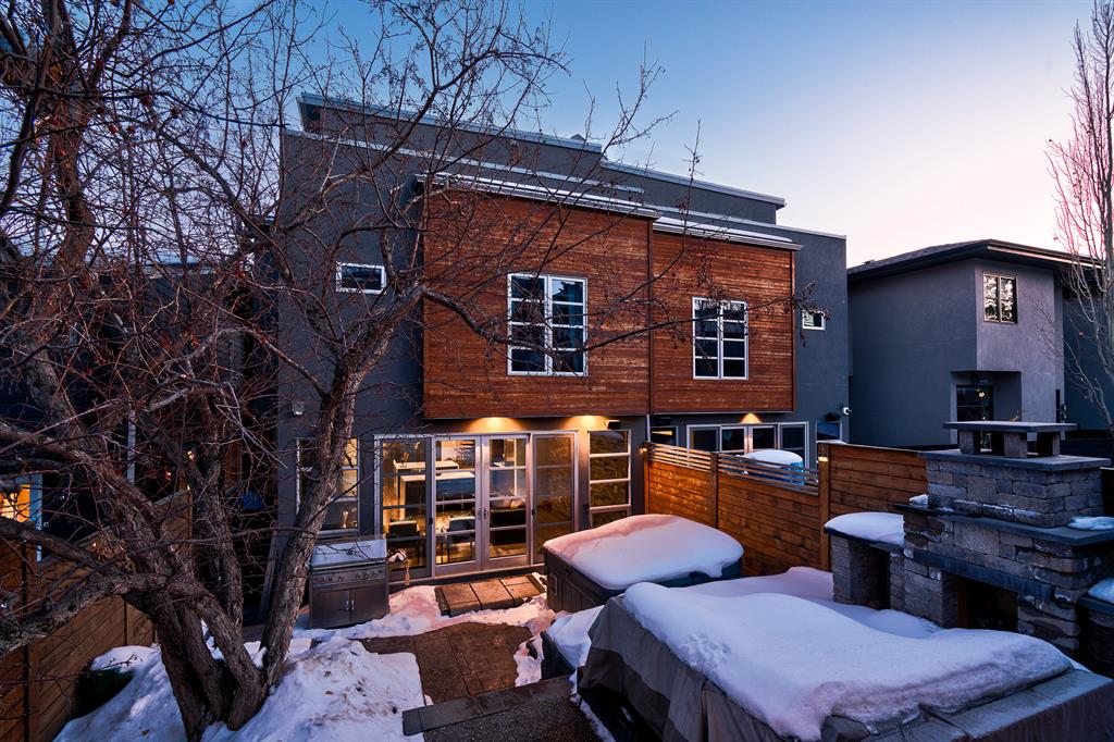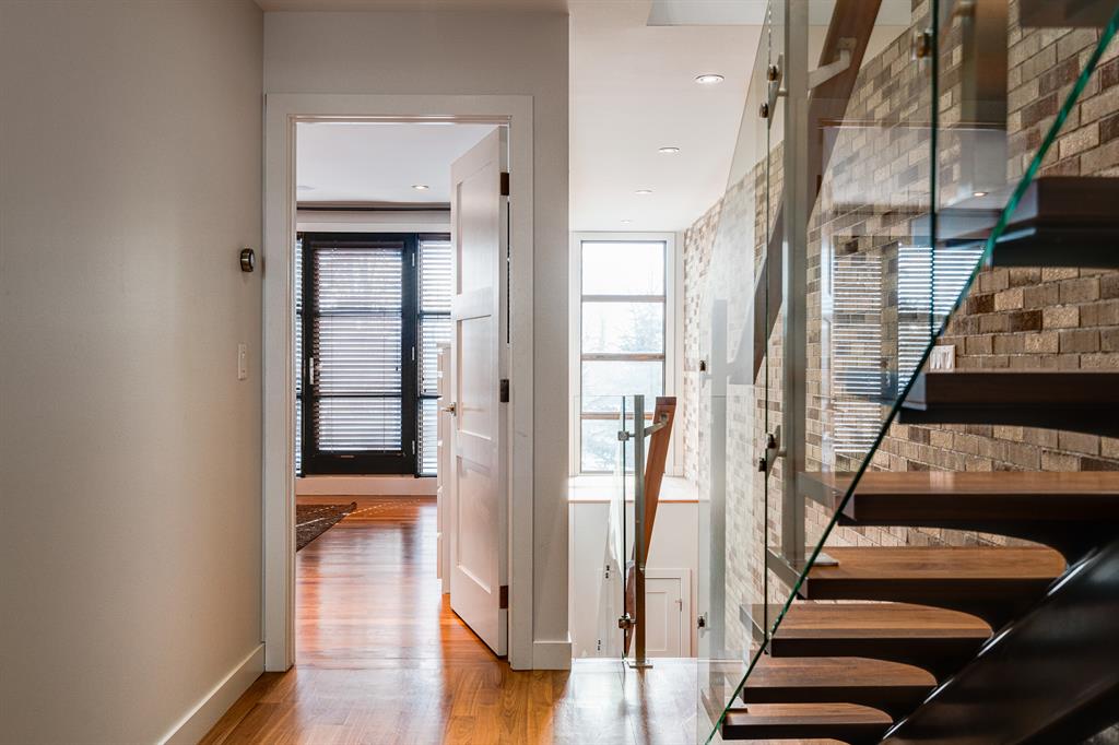 This modern Marda Loop property features over 3,000 square feet over four levels and is located on one of the most desirable streets, just steps from all the amenities of the community. Featuring 3 bedrooms, 4.5 bathrooms, 2 living areas and a south-facing rooftop patio in addition to the no-maintenance backyard – this property is the perfect spot for entertaining. The bright and open main level has a stunning modern kitchen with built-in Sub-Zero fridge and freezer, Wolf cooktop, double islands and dual sinks. The central kitchen opens to the dining area at the front of the home and expansive living space at the back with a wall of windows on either end of the property allowing for natural light all day. Walnut hardwood flooring flows throughout the top three levels of the home and the stairs are all complete with walnut open risers. A brick feature wall spans the entire side of the home and the glass railings keep the space open – one of the many stunning design features within this property. The second level has the primary bedroom with a 5 pc ensuite including a jetted soaker tub, steam shower, dual vanities and a private south-facing balcony. A secondary bedroom with ensuite completes the second level. The top level has an open living space with built-in desk, built-in murphy bed and a full bathroom – perfect for visiting guests. The large south-facing rooftop patio is the ideal space to host guests or simply relax while getting maximum sunshine. A large theatre room, wine cellar, fourth bedroom and full bathroom complete the lower level. The maintenance-free backyard is complete with stamped concrete and stone to provide multiple outdoor living spaces and is complete with a wood burning fireplace and hot tub. This fully developed property has a new dual-stage furnace, hot water tank, and the garage is complete with a slat wall system and finished floor – this home is fully finished in every aspect. This one of a kind residence is ideal for those looking for the perfect entertainment space in a thoughtfully designed home within one of Calgary’s most desirable neighbourhoods.