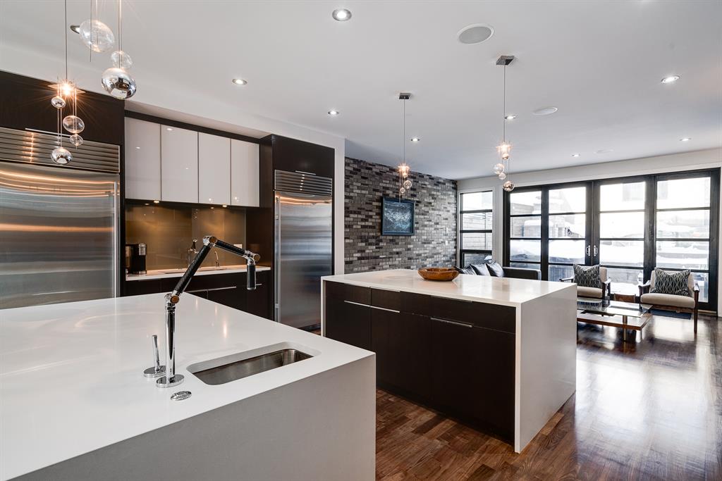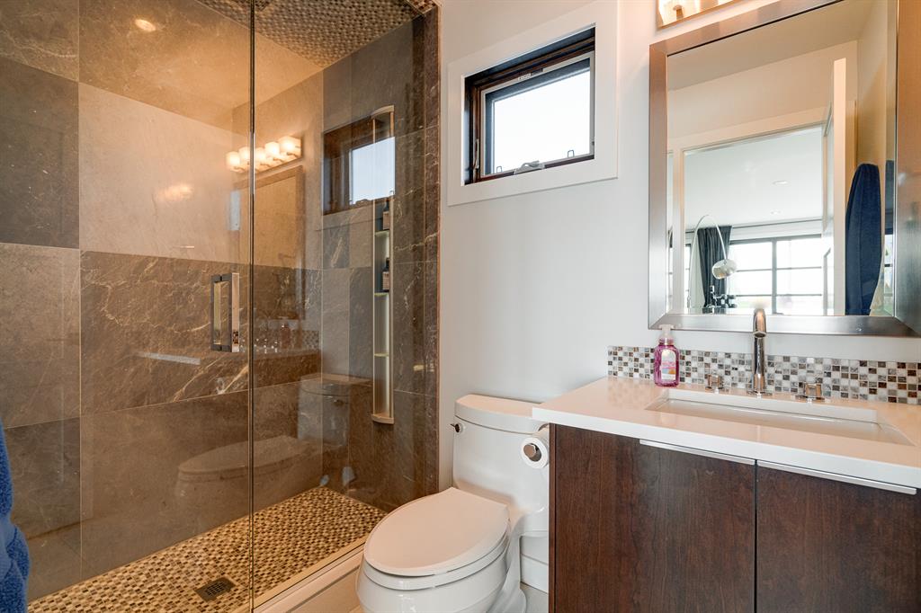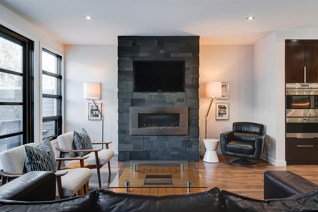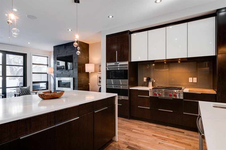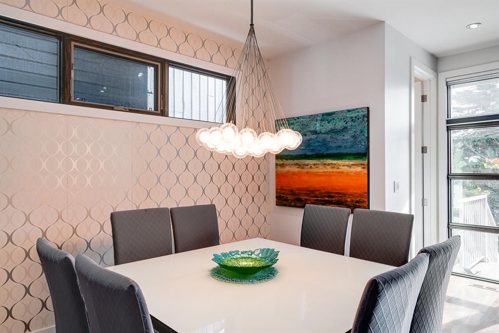 This modern Marda Loop property features over 3,000 square feet over four levels and is located on one of the most desirable streets, just steps from all the amenities of the community. Featuring 3 bedrooms, 4.5 bathrooms, 2 living areas and a south-facing rooftop patio in addition to the no-maintenance backyard – this property is the perfect spot for entertaining. The bright and open main level has a stunning modern kitchen with built-in Sub-Zero fridge and freezer, Wolf cooktop, double islands and dual sinks. The central kitchen opens to the dining area at the front of the home and expansive living space at the back with a wall of windows on either end of the property allowing for natural light all day. Walnut hardwood flooring flows throughout the top three levels of the home and the stairs are all complete with walnut open risers. A brick feature wall spans the entire side of the home and the glass railings keep the space open – one of the many stunning design features within this property. The second level has the primary bedroom with a 5 pc ensuite including a jetted soaker tub, steam shower, dual vanities and a private south-facing balcony. A secondary bedroom with ensuite completes the second level. The top level has an open living space with built-in desk, built-in murphy bed and a full bathroom – perfect for visiting guests. The large south-facing rooftop patio is the ideal space to host guests or simply relax while getting maximum sunshine. A large theatre room, wine cellar, fourth bedroom and full bathroom complete the lower level. The maintenance-free backyard is complete with stamped concrete and stone to provide multiple outdoor living spaces and is complete with a wood burning fireplace and hot tub. This fully developed property has a new dual-stage furnace, hot water tank, and the garage is complete with a slat wall system and finished floor – this home is fully finished in every aspect. This one of a kind residence is ideal for those looking for the perfect entertainment space in a thoughtfully designed home within one of Calgary’s most desirable neighbourhoods.