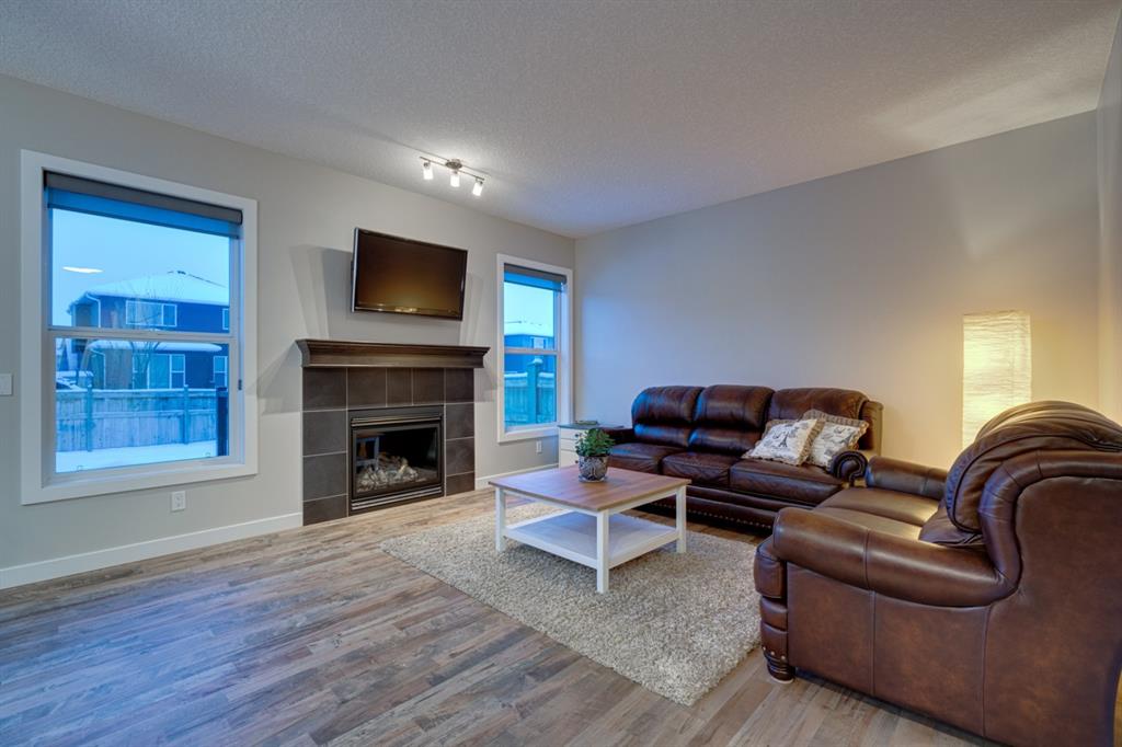 Absolutely beautiful home that shows like new and is located on one of Auburn Bay’s most desirable streets and includes a triple attached garage! This incredibly well-maintained 3 bedroom, 2.5 bathroom home has an open concept main level that is perfect for entertaining. The expansive kitchen includes full height cabinets, a large island, pantry, and stainless-steel appliances. The generous dining and living areas capture southern exposure allowing for natural light to flow through the home all day while the gas fireplace will keep you warm on winter nights. The main floor’s hardwood was just refinished and is like new! The main level is complete with a front office with large windows creating the perfect at-home workspace. The upper level has brand new carpet throughout and offers an extended bonus room perfect for a media area or family space to gather each night. The large master bedroom provides the perfect retreat with a full en suite including dual sinks, a walk-in shower, a large soaker tub and walk-in closet. Two more good-sized rooms, a 4-piece bathroom and a large laundry room complete the upper level, providing added convenience for everyday living. Basement has 9′ foundation walls – making it fully ready for a bright and comfortable developed basement. The double garage with tandem bay provides ample space for 3 vehicles and is fully finished – giving you the perfect workspace. The southwest-facing backyard offers plenty of green space for the family to enjoy while the large deck makes for the perfect oasis during the summer months and central A/C will keep you cool all summer. This family-oriented street is perfect for those looking to grow their family in Auburn Bay and is within close distance to many nearby schools. Don’t wait this home won’t last!