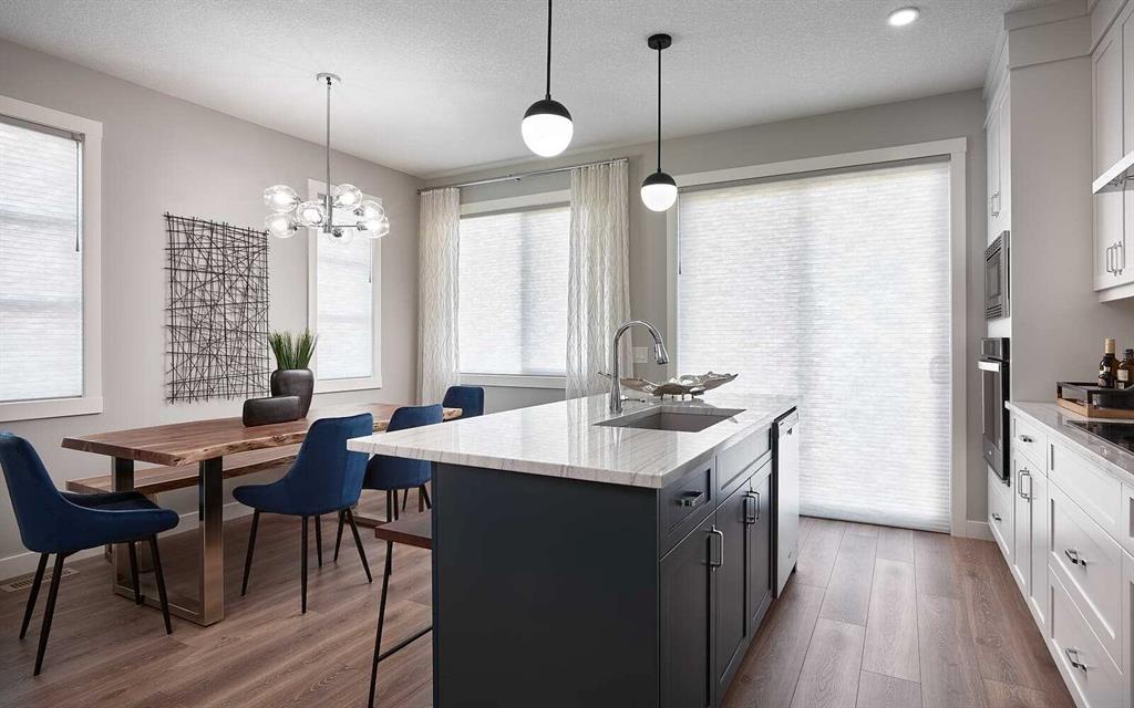 The brand new and beautiful ‘Wicklow’ built by Brookfield Residential is one of the most popular models for a reason. Featuring 3 bedrooms, 2.5 bathrooms, a flex / office space and a bonus room + an undeveloped basement that provides endless options, this move-in ready home is perfect for downsizers, professionals, investors or a small family! This new semi-detached home (no condo fees) has warm grey tone vinyl plank flooring flowing throughout the main level. Timeless light cabinetry flows throughout the home including the expansive kitchen complete with a suite of stainless steel appliances, a large corner pantry with plenty of storage and a central island with additional seating space. The kitchen overlooks the dining area and a wall of windows and patio doors overlook the backyard. The large living area is located at the front of the home and has a wall of west-facing windows that allow natural light to pour through the home all day long. A 2pc bathroom and side entrance that leads to the basement and backyard complete the main level of this home. The upper level has a central bonus room that separates the primary suite from the secondary bedrooms. The large primary bedroom is complete with a full ensuite that has a walk-in shower, private water closet and dual sinks as well as a large walk-in closet. Two more bedrooms, a full bathroom and conveniently located laundry room complete the upper level. The basement awaits its new owner’s imagination and has the perfect space for a basement suite (subject to City of Calgary permits and approval) if desired, or it could be developed to include a bedroom, bathroom and large recreation space. A private backyard and double parking pad complete this beautiful new home. Purchase with peace of mind – this home includes builder warranty and Alberta New Home Warranty! *Photos are from a show home model and are not an exact representation of the property for sale.