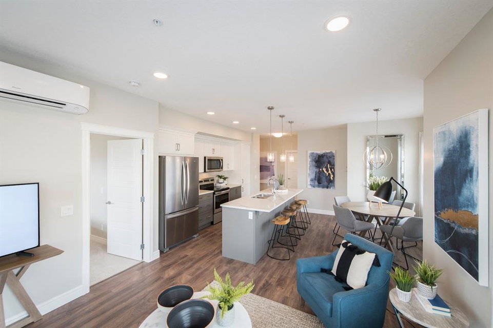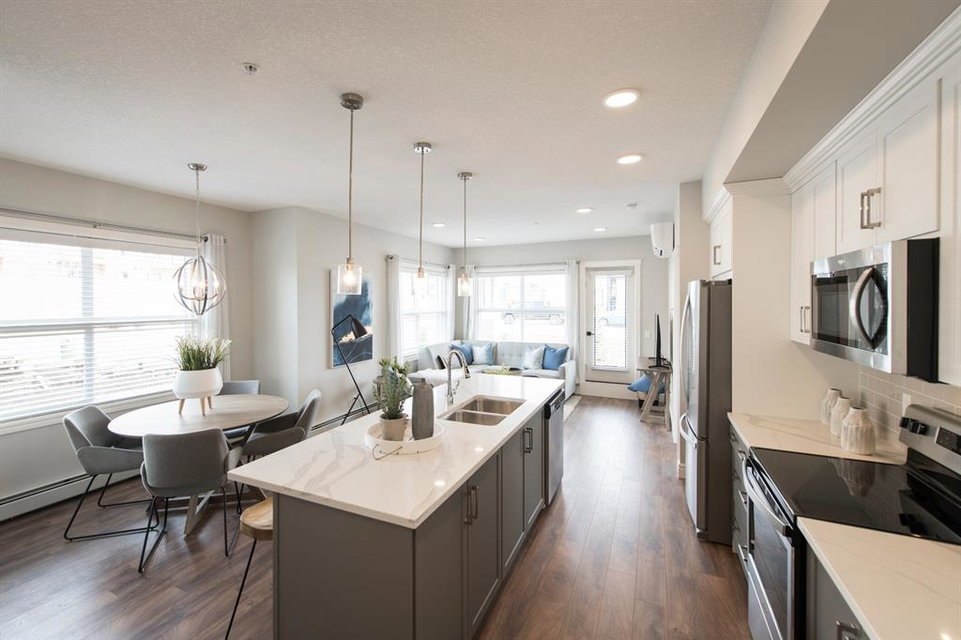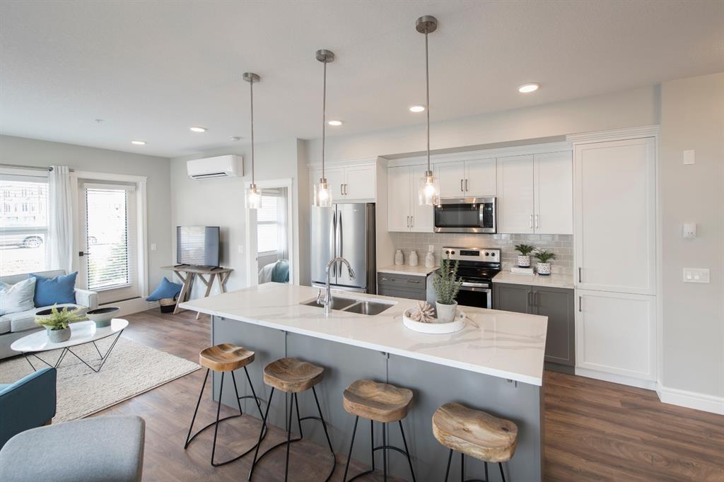 The ‘Argento’ built by award-winning Rohit has a large living area with the kitchen in the centre of the home. The master retreat is located on the opposite side of the condo from the second bedroom, providing ample privacy and is also complete with a full 5 pc ensuite and large walk-in closet. The second bedroom has its own access to the main bathroom. This beautiful new condo is finished with upgrades throughout keeping it timeless and modern as time goes on. Soak up the SW sunshine on the oversized private patio off the main living area. Located within a comfortable walking distance to South Calgary Health Campus and Seton’s countless amenities including the new YMCA. Alberta New Home Warranty included with the purchase of this new condo that provides maintenance-free living all year long and with an underground parking stall and storage locker.