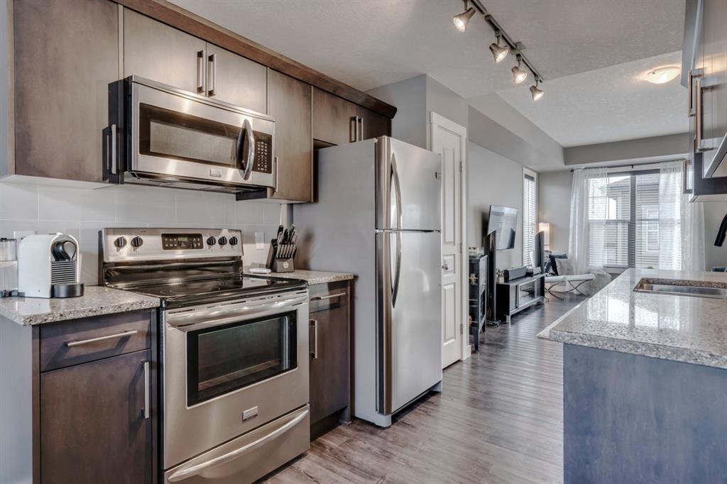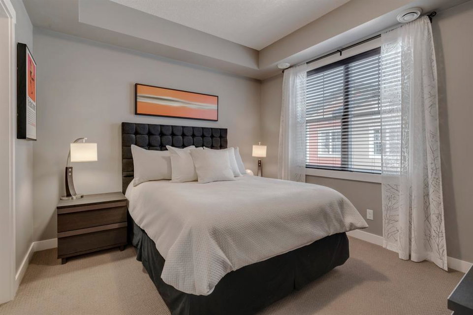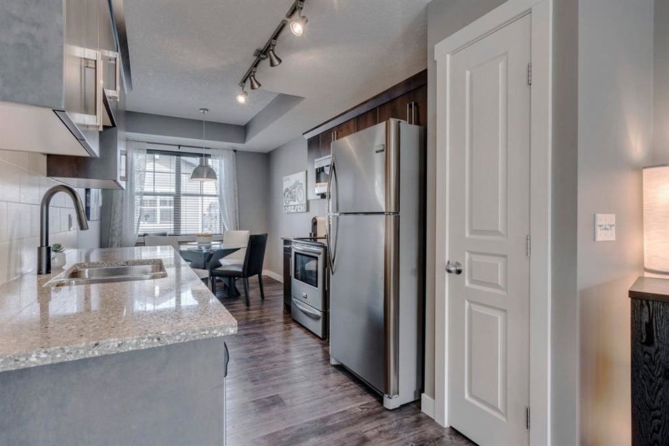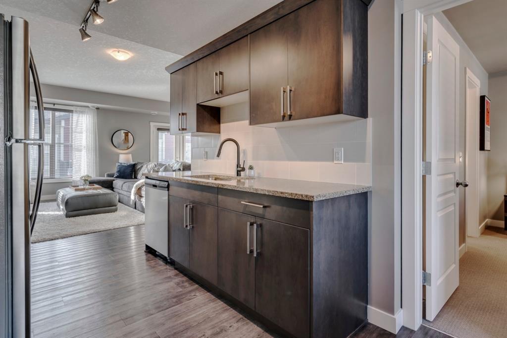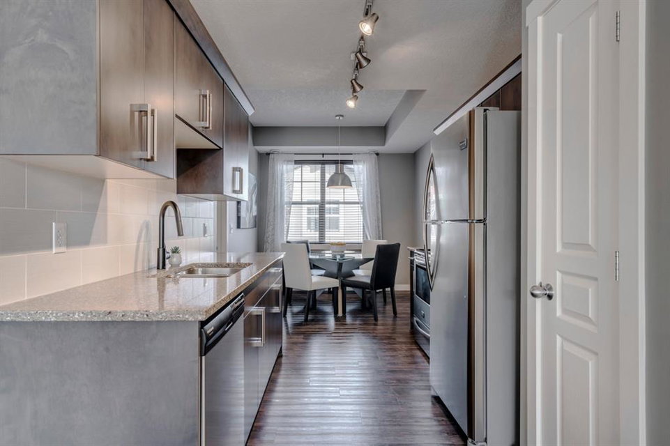 This beautiful and immaculate townhome was built by award-winning Brookfield Residential and is located in the heart of Cranston within walking distance to schools and all of Cranston’s amenities. This end-unit townhome shows like new and offers a bright and open layout that is perfect for entertaining. The kitchen is centred between the dining and large living areas, providing a space that captures natural light all day. The main living area has plenty of space for a living area with additional space for the perfect work-from-home setup. The home is finished with resilient luxury vinyl plank flooring, quartz countertops and stainless-steel appliances. A large master bedroom complete with walk-in closet provides ample space for a young professional or couple. The balcony located off the main living area has west exposure and mountain views, offering plenty of enjoyment all summer long. The central A/C will keep you cool on the warm summer nights while the west exposure keeps the unit bright all day. A private attached garage is perfect for keeping your vehicle safe and secure all year and also provides additional storage options. Located a short distance from all the amenities of Cranston and Seton, this property is ideal for investors, down-sizers, and first time buyers looking to stop renting and start building equity. Low condo fees and maintenance-free living that is all within walking distance to Fish Creek Park! This nearly new townhouse offers incredible value for those wanting a spacious one bedroom home.