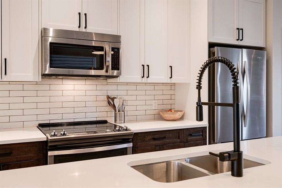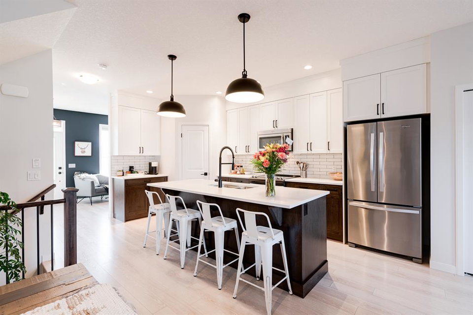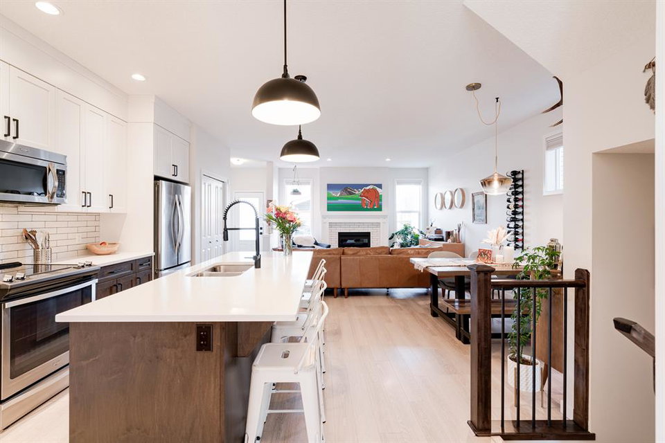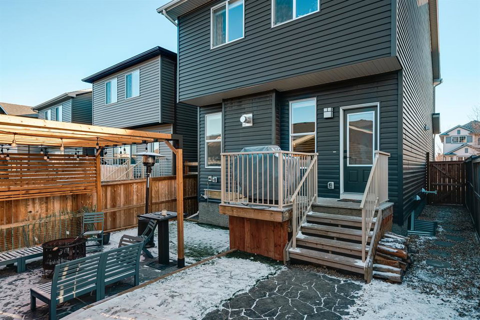 An incredibly rare opportunity to own a nearly new home in the fully established community of Tuscany! The community developer left a parcel of land undeveloped until recently, meaning this home is unlike any other in the community. This immaculate home features 3 bedrooms, 2.5 bathrooms, 2 living areas + a den/flex space and over 1,700 square feet of living space over two levels. The open concept main floor has a timeless kitchen in the centre of the home and it’s the perfect space for entertaining. The kitchen is complete with white upper cabinets to the ceiling, stained maple lower cabinets and quartz countertops including a large island with additional seating. Resilient laminate flooring flows throughout the main level of the home, making it perfect for children and pets. The kitchen opens to both the living and dining areas with a central gas fireplace on the main level. A large office space / den is at the front of the home with a window that provides natural light all day long. The upper level features a central bonus room, three bedrooms and two bathrooms. The primary bedroom is at the front of the home and complete with a walk-in closet and full en suite including dual sinks and a walk-in shower. Two more large bedrooms and a full bathroom are at the opposite end of the home, separated by the central bonus room. The maintenance-free backyard includes a large concrete patio with pergola, stone walkways, turf grass and a deck for a BBQ including a gas-line. The double detached garage is fully finished – insulated and heated with plywood walls – making it ideal for additional storage and it also has 40 amp electrical service. Recent upgrades include hardware, plumbing fixtures, lighting, carpet, fresh paint, and a brand new commercial grade 80 gallon hot water tank. Centrally located in Tuscany, this home offers the luxuries of a new property with the convenience of countless amenities and schools nearby.