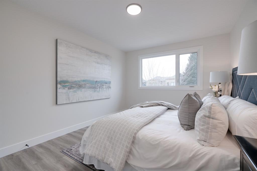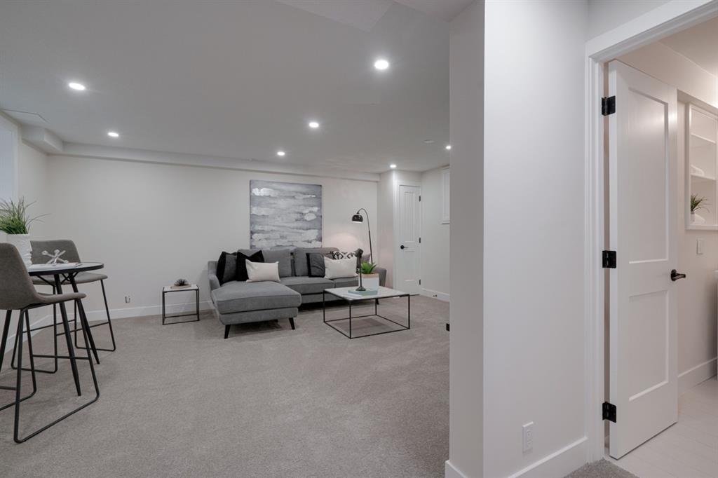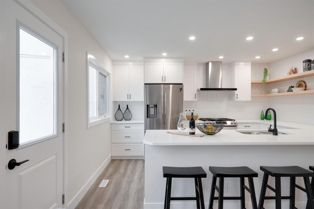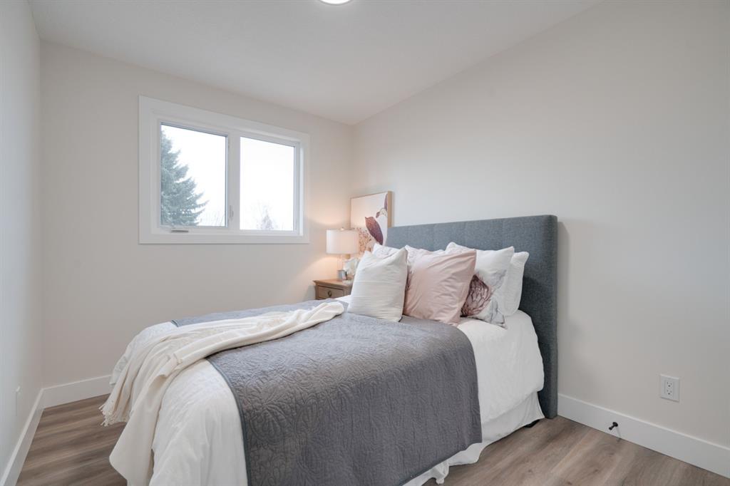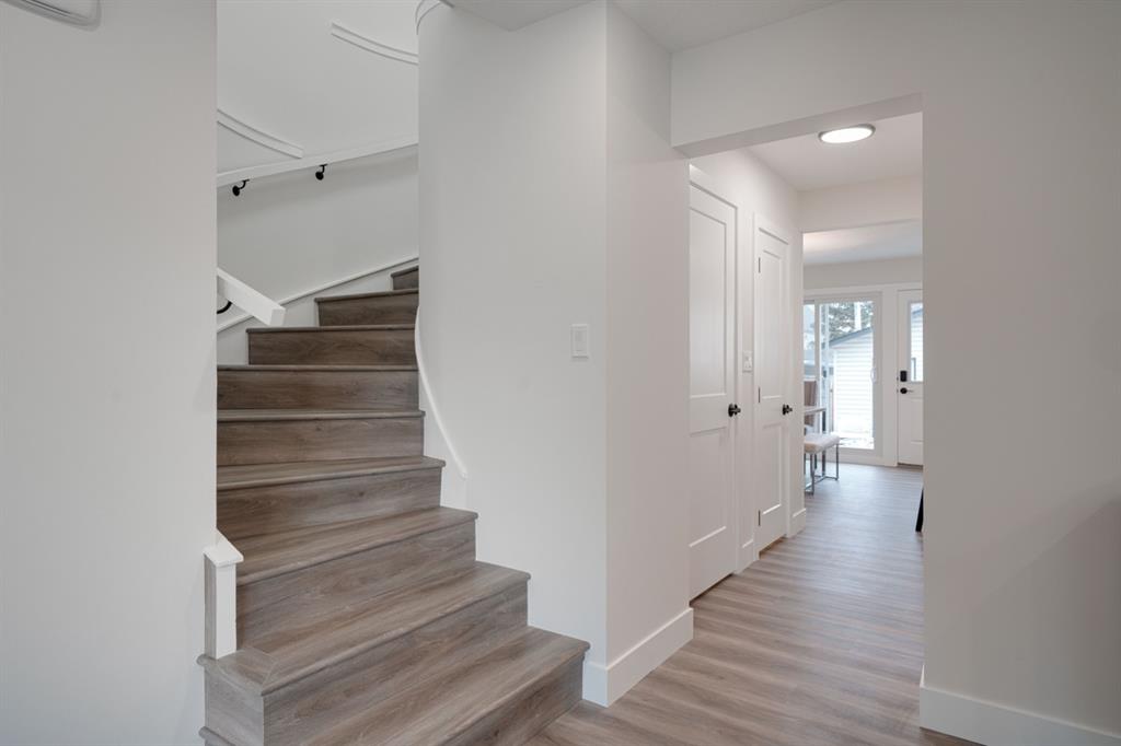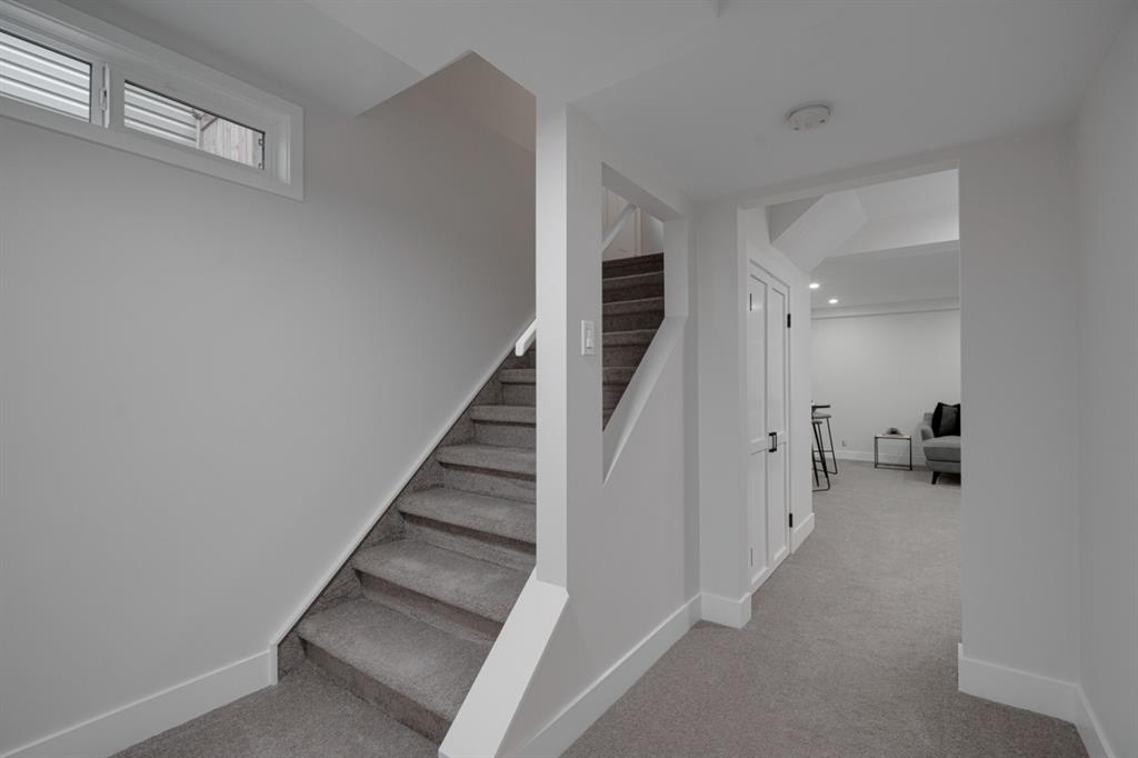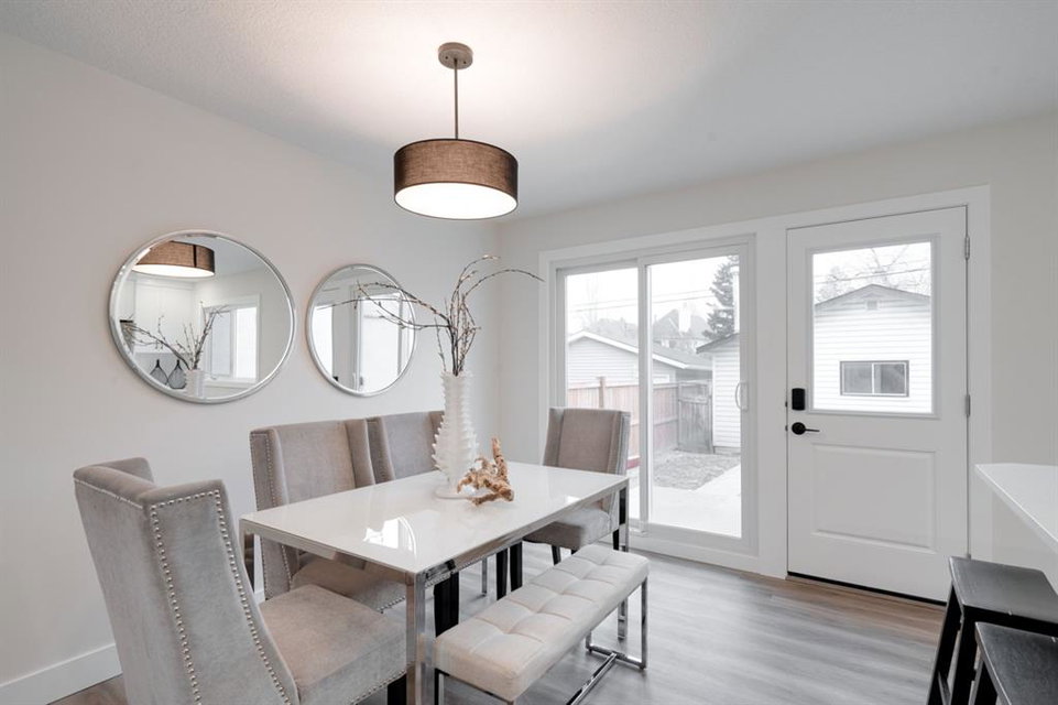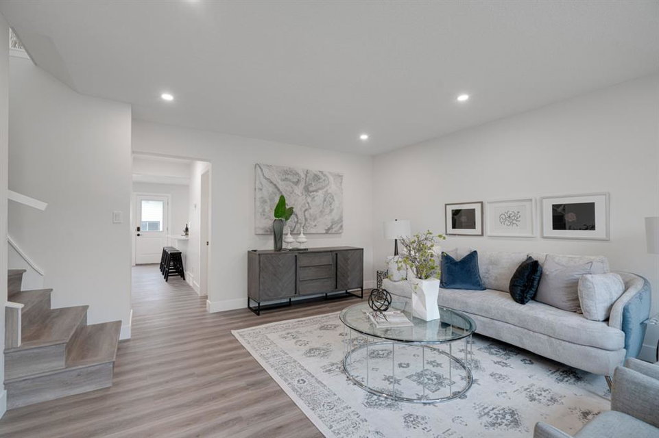 An incredible opportunity to live on Killarney’s most desirable street in a fully renovated 4 bedroom, 2.5 bathroom home with a West backyard and fully finished oversized heated double detached garage. This professionally renovated home has over 2,000 square feet of developed space and is fully move in ready. The layout offers the perfect space for a growing family or professionals who want their own work-from-home space. The main level has the perfect layout with a large kitchen with eating bar that overlooks the dining area, making the perfect space for entertaining. A wall of west-facing windows allow natural light to pour through the kitchen and dining area all day long and the patio door provides access to the large raised patio that spans the width of the home. A large walk-in pantry provides endless storage options for the kitchen that is complete with a gas range, 36″ hood fan and countless drawers for convenient storage. The large living area at the front of the home provides a separate living space and has a window overlooking the front street. A spiral staircase takes you to the second level where there are 4 large bedrooms and a 5 pc bathroom. All bedrooms have large closets with full doors (no bi-folds) and the primary bedroom has ample space for a king bed. Timeless vinyl plank flooring flows through the main level, stairs and second level, making this space perfect for those with kids and pets. The fully developed basement includes a large rec room with egress window, full bathroom and huge laundry/storage room. A cold room provides additional storage space and would make the perfect wine cellar if desired. The west backyard is maintenance-free with two patio spaces and the fully finished, heated and freshly painted garage spans 25′ wide and is a truly unique feature that you don’t find often. This property is fully move-in ready and updates include: all new casement windows throughout, new electrical panel, new garage roof, all new flooring, kitchen, ceilings, lighting, countertops, appliances, garage door & motor, etc. Located on the tree-lined 26A Street in Killarney, this property has been professionally renovated and offers a desirable layout that is much different from your ‘cookie-cutter’ infill. *Property includes a side entrance and registered size with City of Calgary is 1,504 square feet.
