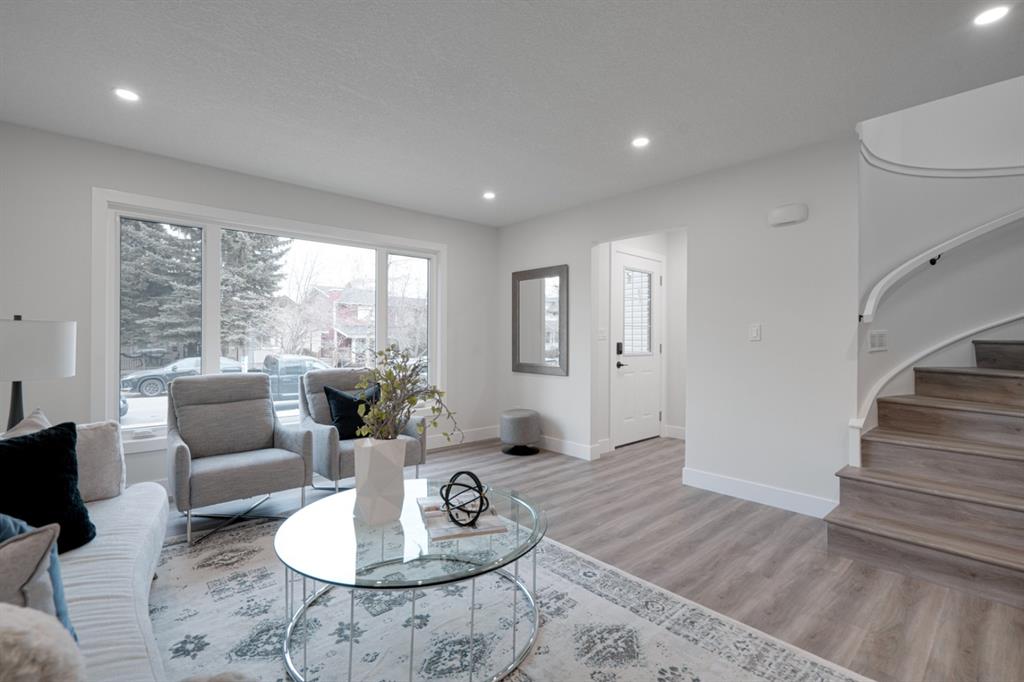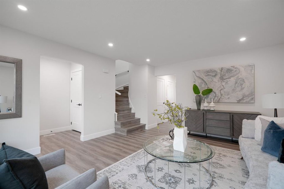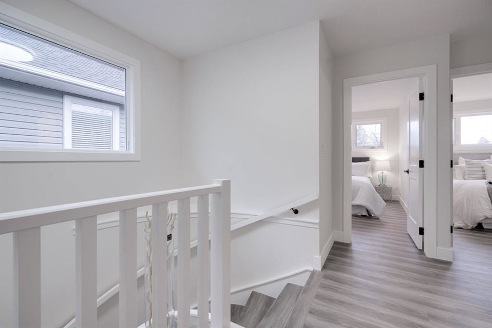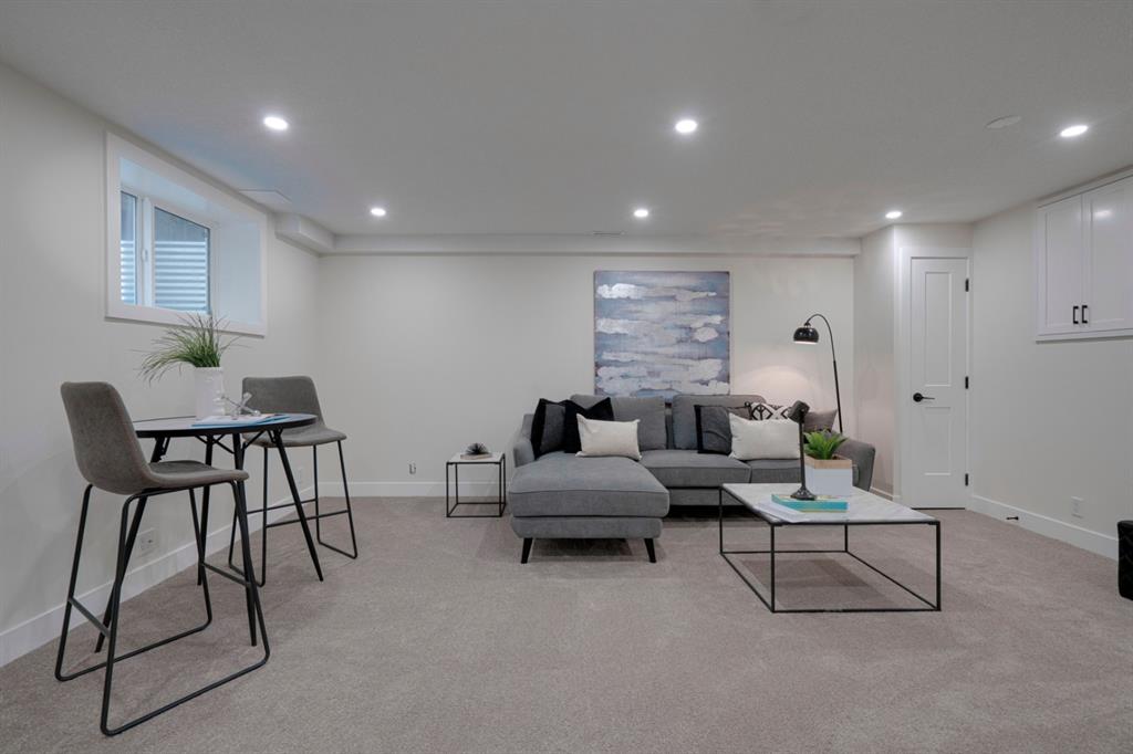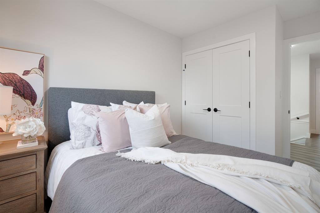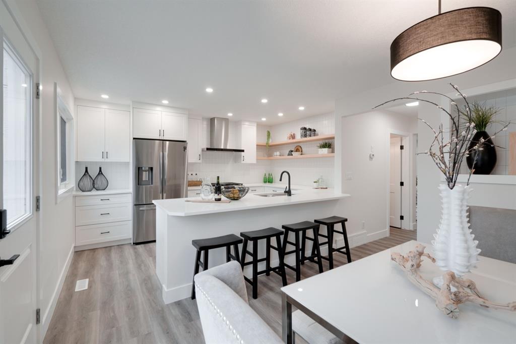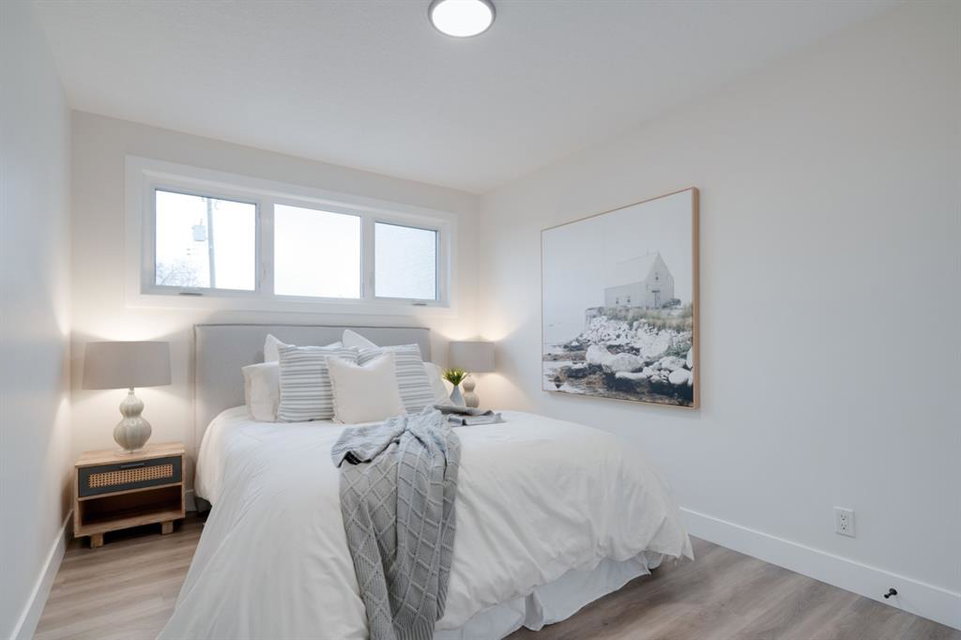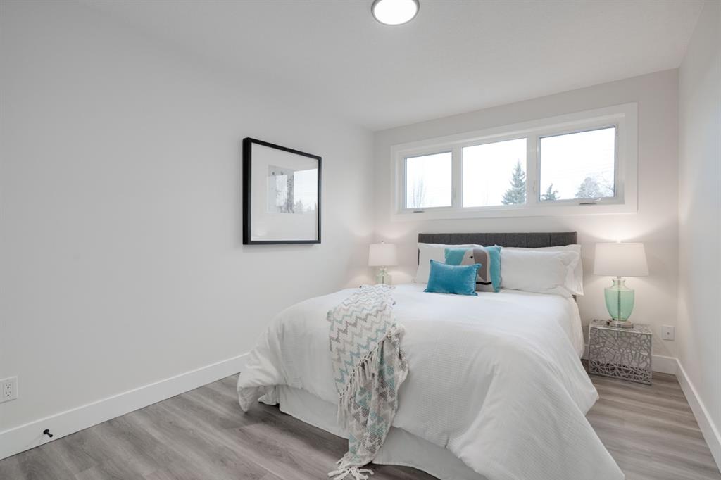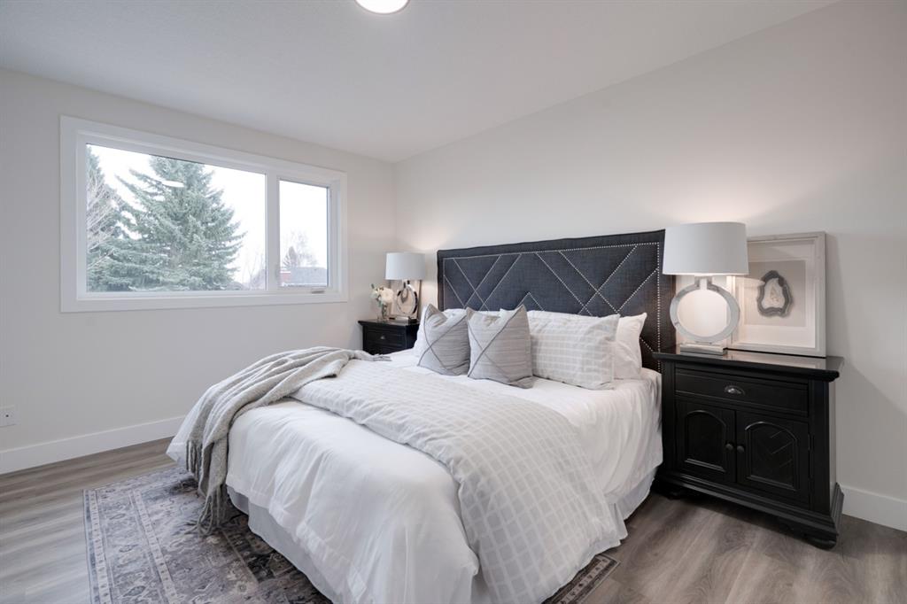 An incredible opportunity to live on Killarney’s most desirable street in a fully renovated 4 bedroom, 2.5 bathroom home with a West backyard and fully finished oversized heated double detached garage. This professionally renovated home has over 2,000 square feet of developed space and is fully move in ready. The layout offers the perfect space for a growing family or professionals who want their own work-from-home space. The main level has the perfect layout with a large kitchen with eating bar that overlooks the dining area, making the perfect space for entertaining. A wall of west-facing windows allow natural light to pour through the kitchen and dining area all day long and the patio door provides access to the large raised patio that spans the width of the home. A large walk-in pantry provides endless storage options for the kitchen that is complete with a gas range, 36″ hood fan and countless drawers for convenient storage. The large living area at the front of the home provides a separate living space and has a window overlooking the front street. A spiral staircase takes you to the second level where there are 4 large bedrooms and a 5 pc bathroom. All bedrooms have large closets with full doors (no bi-folds) and the primary bedroom has ample space for a king bed. Timeless vinyl plank flooring flows through the main level, stairs and second level, making this space perfect for those with kids and pets. The fully developed basement includes a large rec room with egress window, full bathroom and huge laundry/storage room. A cold room provides additional storage space and would make the perfect wine cellar if desired. The west backyard is maintenance-free with two patio spaces and the fully finished, heated and freshly painted garage spans 25′ wide and is a truly unique feature that you don’t find often. This property is fully move-in ready and updates include: all new casement windows throughout, new electrical panel, new garage roof, all new flooring, kitchen, ceilings, lighting, countertops, appliances, garage door & motor, etc. Located on the tree-lined 26A Street in Killarney, this property has been professionally renovated and offers a desirable layout that is much different from your ‘cookie-cutter’ infill. *Property includes a side entrance and registered size with City of Calgary is 1,504 square feet.