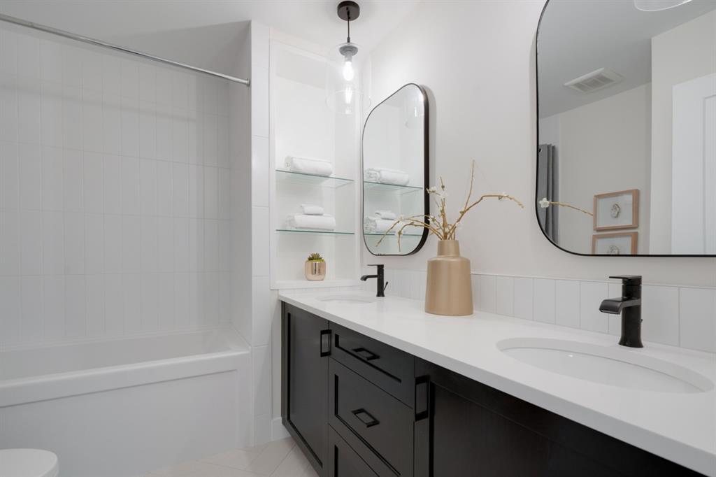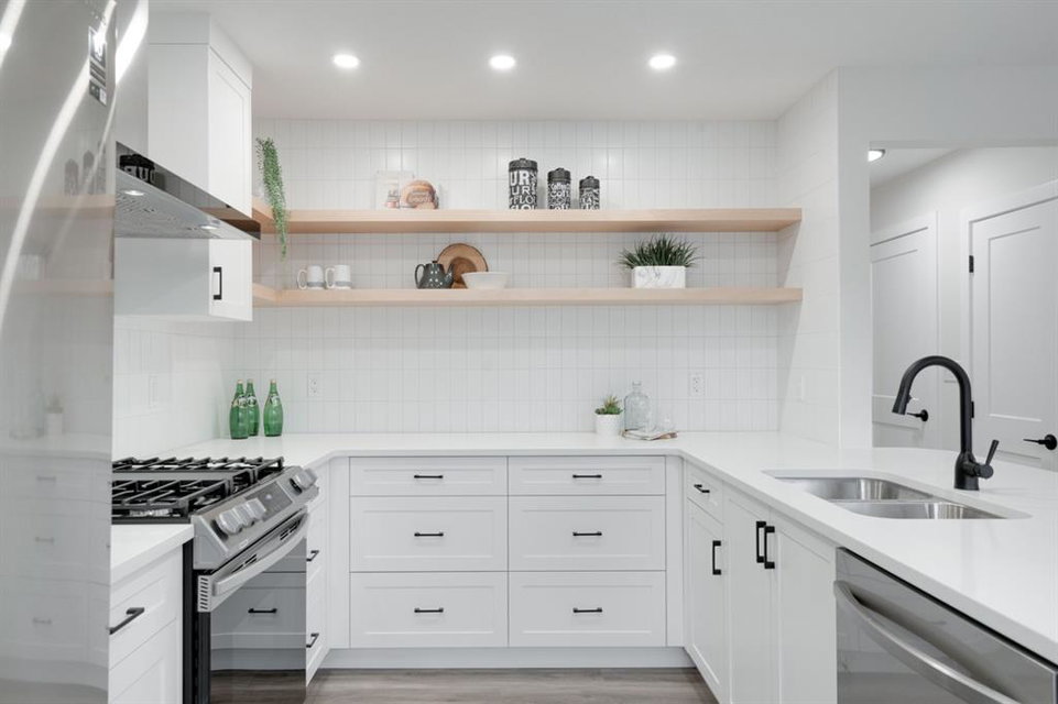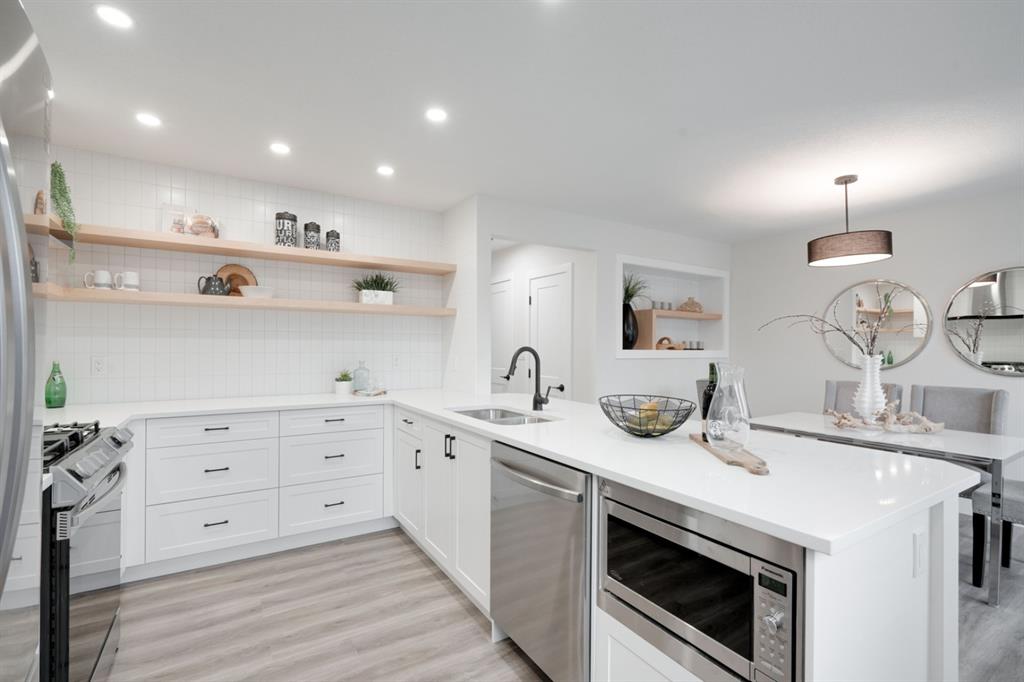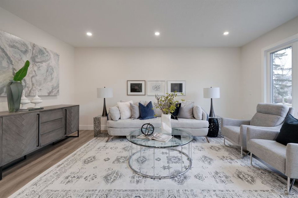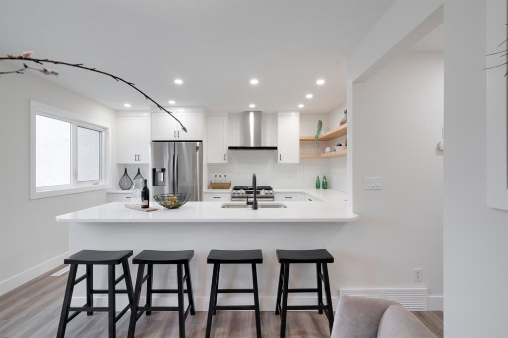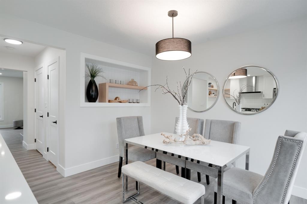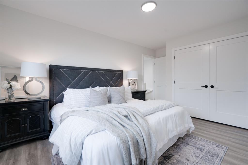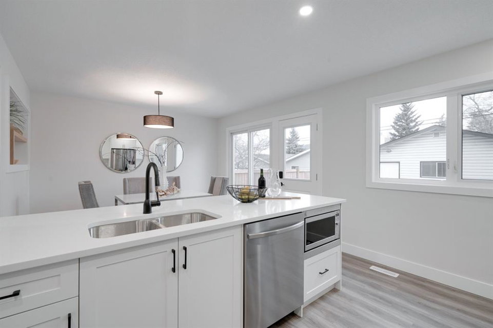 An incredible opportunity to live on Killarney’s most desirable street in a fully renovated 4 bedroom, 2.5 bathroom home with a West backyard and fully finished oversized heated double detached garage. This professionally renovated home has over 2,000 square feet of developed space and is fully move in ready. The layout offers the perfect space for a growing family or professionals who want their own work-from-home space. The main level has the perfect layout with a large kitchen with eating bar that overlooks the dining area, making the perfect space for entertaining. A wall of west-facing windows allow natural light to pour through the kitchen and dining area all day long and the patio door provides access to the large raised patio that spans the width of the home. A large walk-in pantry provides endless storage options for the kitchen that is complete with a gas range, 36″ hood fan and countless drawers for convenient storage. The large living area at the front of the home provides a separate living space and has a window overlooking the front street. A spiral staircase takes you to the second level where there are 4 large bedrooms and a 5 pc bathroom. All bedrooms have large closets with full doors (no bi-folds) and the primary bedroom has ample space for a king bed. Timeless vinyl plank flooring flows through the main level, stairs and second level, making this space perfect for those with kids and pets. The fully developed basement includes a large rec room with egress window, full bathroom and huge laundry/storage room. A cold room provides additional storage space and would make the perfect wine cellar if desired. The west backyard is maintenance-free with two patio spaces and the fully finished, heated and freshly painted garage spans 25′ wide and is a truly unique feature that you don’t find often. This property is fully move-in ready and updates include: all new casement windows throughout, new electrical panel, new garage roof, all new flooring, kitchen, ceilings, lighting, countertops, appliances, garage door & motor, etc. Located on the tree-lined 26A Street in Killarney, this property has been professionally renovated and offers a desirable layout that is much different from your ‘cookie-cutter’ infill. *Property includes a side entrance and registered size with City of Calgary is 1,504 square feet.