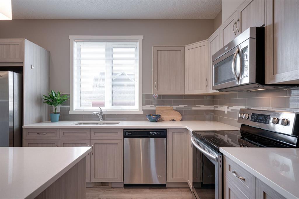 This well-maintained townhome is situated in the desirable lake community of Mahogany, just minutes from countless amenities and does not have any condo fees! The fully developed home has 3 bedrooms, 3.5 bathroom and provides the perfect balance of space and low maintenance living, perfect for a young couple or professional looking to be surrounded by convenience. The main level of the home features an open layout with contemporary laminate flooring throughout. The timeless kitchen over looks the dining area and living room creating the perfect place for entertaining. Large front and rear windows provide ample natural light into the home and create a bright and inviting space all day long. The kitchen is finished with beautiful light cabinetry, quartz countertops, a suite of stainless-steel appliances and island. A rear mudroom and 2-piece powder room complete the main level. The upper level features a dual primary bedroom layout, each with their own private en suites. The first primary bedroom offers ample space and includes a full en suite with walk-in shower and spacious walk-in closet. The second primary bedroom includes a full 4 piece en suite and large walk-in closet. The professionally developed lower level has a large media/ family room, 3rd bedroom (which could be converted to a home gym or office), a full bathroom, full laundry room and additional storage space providing added convenience for daily living. The private south-facing backyard offers plenty of green space for the family to enjoy while the deck provides the perfect place for summer BBQ’s. Completing the property is a double garage providing added storage while keeping your vehicles and valuables safe and clean year-round. The home comes well equipped with upgrades throughout and provides quick access to the amenities of Mahogany, Auburn Bay and only minutes from Lake Mahogany. Don’t miss this gem and book a showing today.