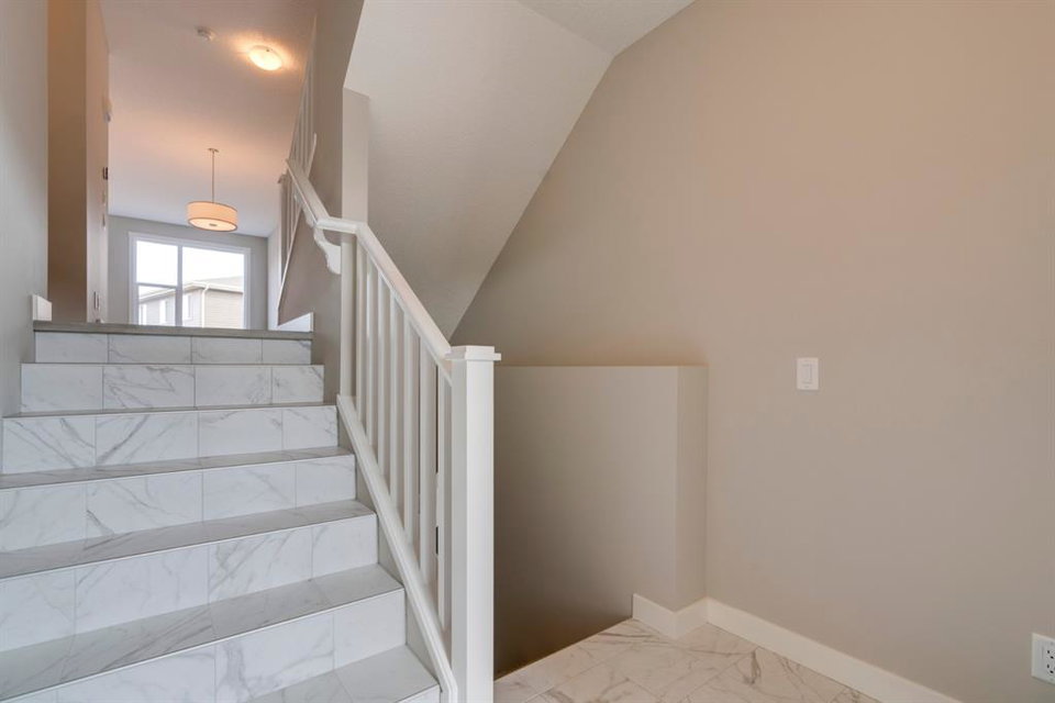 Unique 4 level split home with front attached garage and single driveway! Summer possession! Look no further, a brand new home with all your wants and needs is available in the Boutique style Community of Symons Gate. This brand new paired home with front attached garage has close access in and out of the community and to all the surrounding amenities. This bright and spacious 3 bedroom home was designed for young families or people looking to downsize into a beautiful home. The large, tiled entrance leaves lots of room for taking off boots and coats. Up a short flight of stairs the home opens up into a bright and warm living area complete with LVP flooring and quartz countertops in the kitchen. The second floor is complete with the master bedroom, ensuite, and a large walk in closet all on its own level. A laundry room, main bathroom and 2 bedrooms are all centered around the large bonus room, perfect relaxing after a long day. This is an incredibly unique home and a must see! Located in the award winning new community of Symons Gate where only 600-700 homes will be built. Last phase of paired home in Symons Gate – do not wait! *Legal fees and Alberta New Home Warranty included.