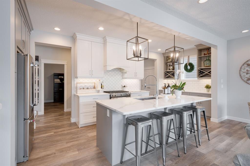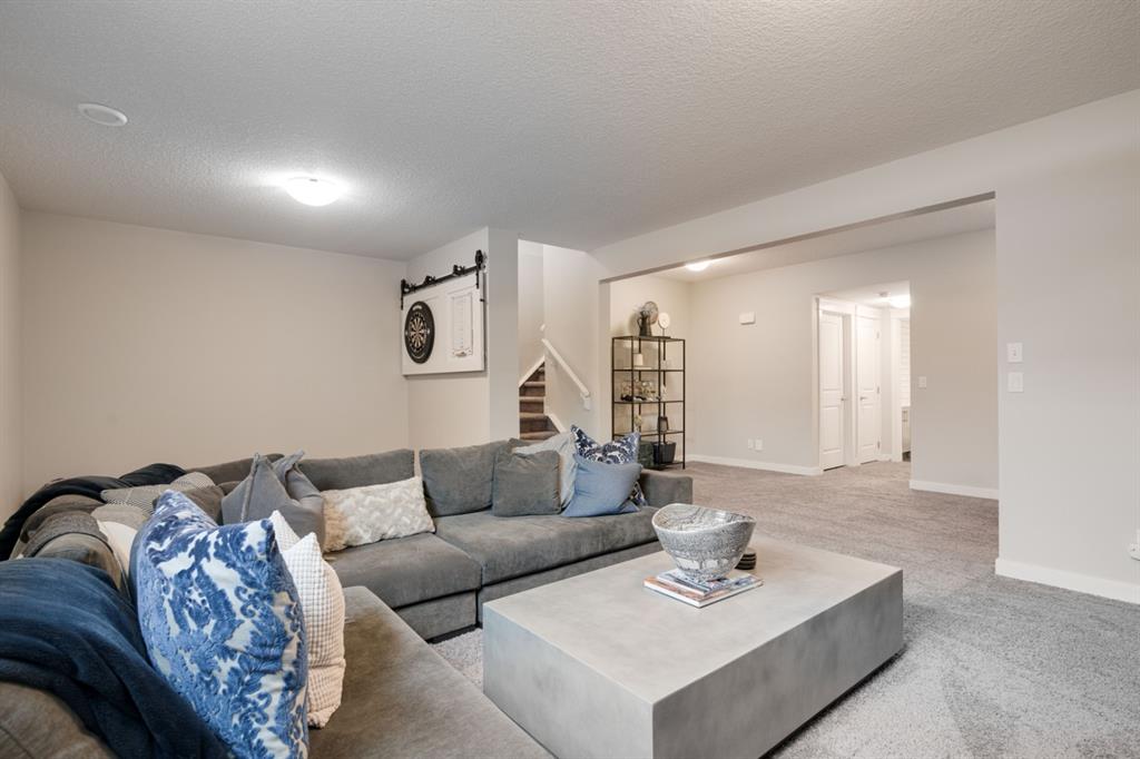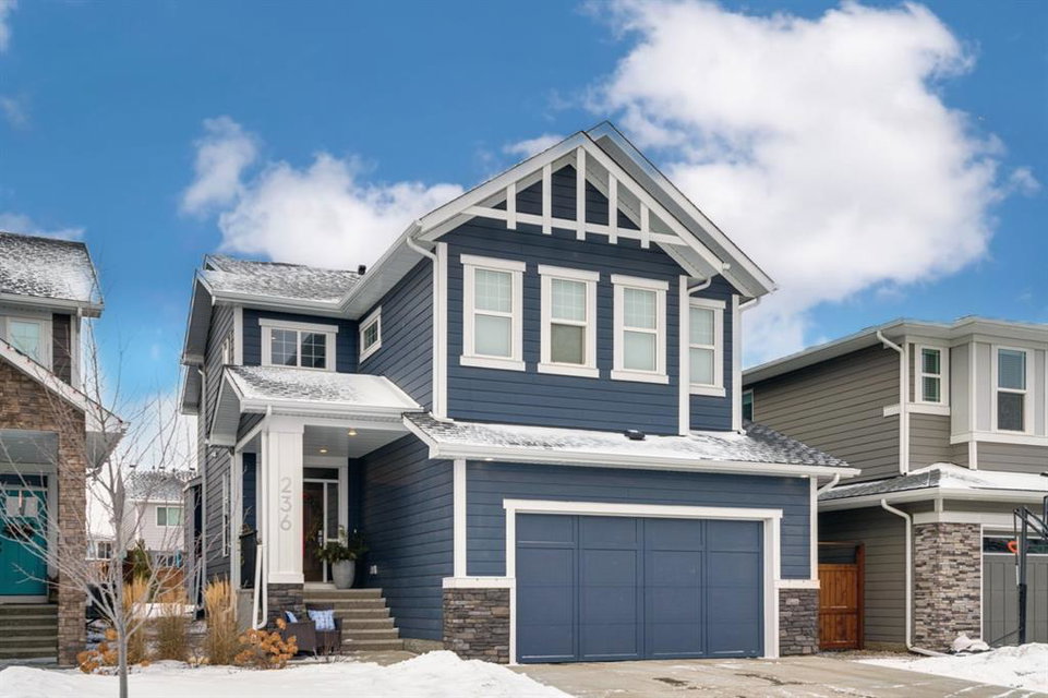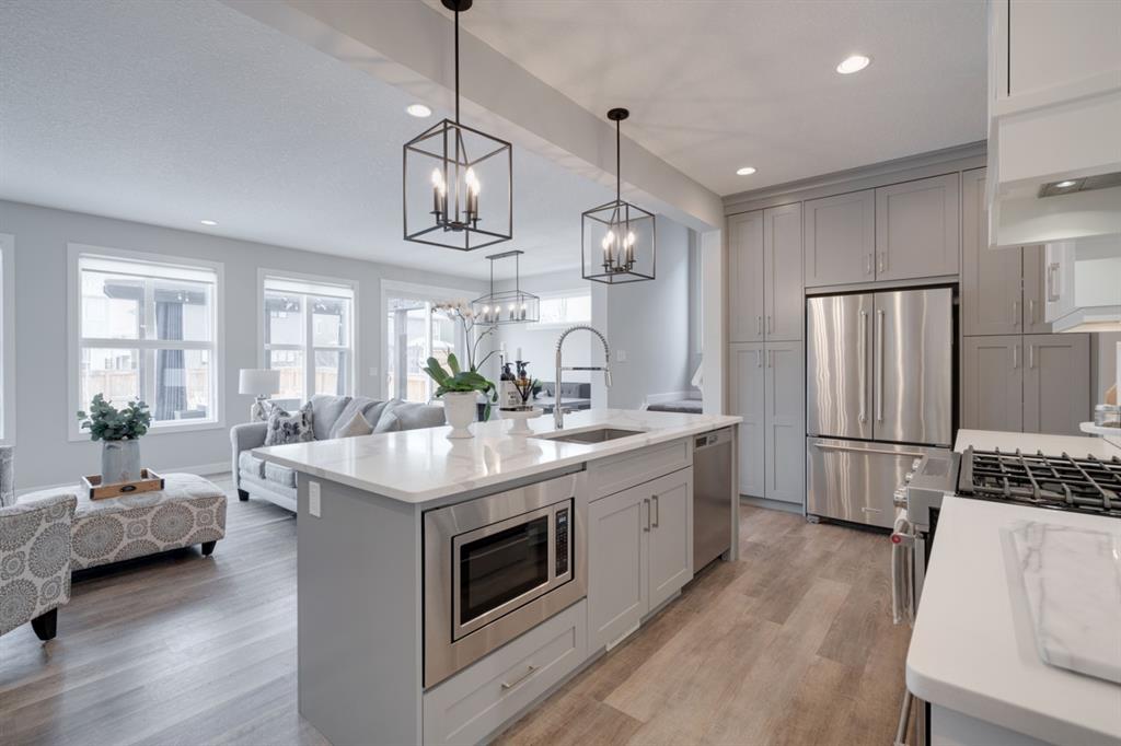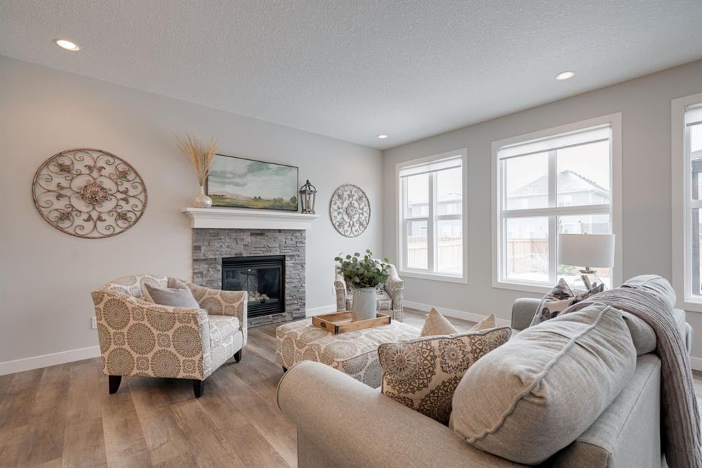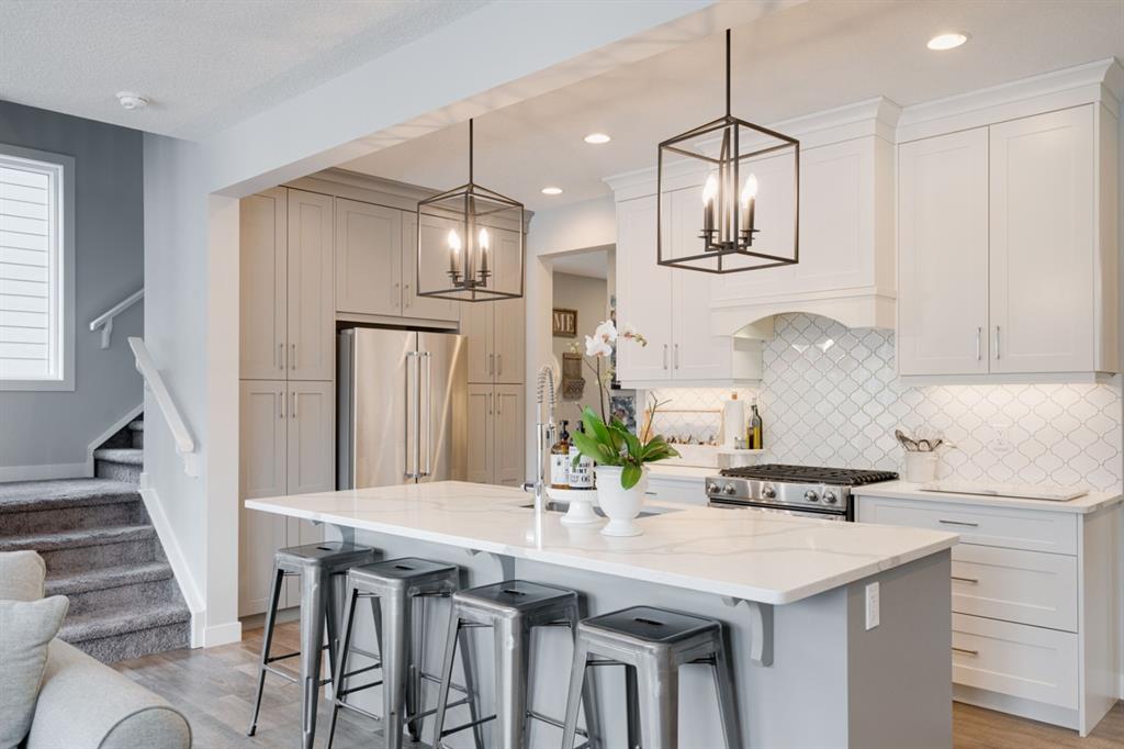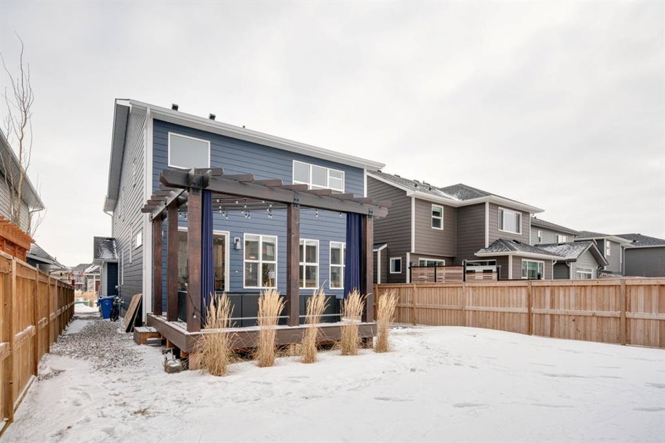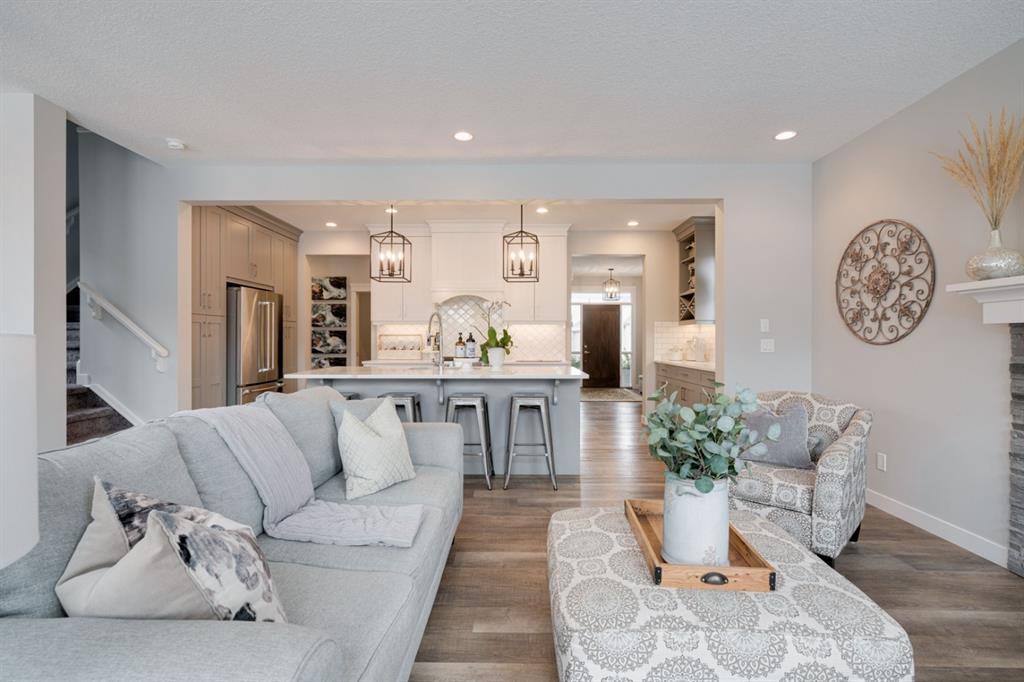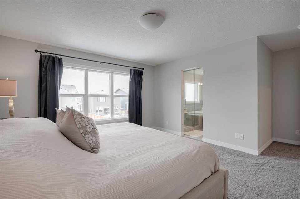 This immaculate and like-new home has been professionally designed and meticulously cared for, offering incredible value in one of Calgary’s most desired neighbourhoods – Riverstone of Cranston. This fully developed home has nearly 3,500 square feet of developed space over three levels. Featuring 4 bedrooms, 3.5 bathrooms, 3 living areas, 2 flex spaces, a den and a west-facing backyard, this is the perfect family home! The beautiful and timeless white kitchen overlooks the entire main level, making it the perfect space to entertain. The kitchen is complete with a gas range, hidden microwave built-in to the island, a large quartz island with an under-mount silgranite sink and custom lighting. A wall of west-facing windows allow for natural light to pour through the main level all day long. The main level is complete with a large mud room with custom built-in storage and a full den that would make the perfect work-from-home space or children’s play area. The upper level includes a central bonus room complete with tray ceiling and large laundry room with access to the owner’s walk-in closet for added everyday convenience. The expansive primary bedroom overlooks the backyard and has a full 5 pc en suite including separate vanities, walk-in tiled shower with 10mm glass and a soaker tub. A flex space between the secondary bedrooms makes for the perfect work space for children and each bedroom has their own walk-in closet and a full bathroom with divided access for added convenience. The professionally developed basement includes a huge recreation room complete with pot lights, gas fireplace and large windows. The basement also has a large fourth bedroom, full bathroom and another flex space that would be perfect for a home gym, office area or additional living space. The fully landscaped west backyard includes a beautiful composite deck with 8X8 cedars posts for its pergola and is fully landscaped with grass, perennials and trees making the perfect space to relax on summer nights. Backyard also prepped for concrete patio that can easily be added next season. This like-new home is a rare find and situated on a large lot with countless upgrades throughout the home.