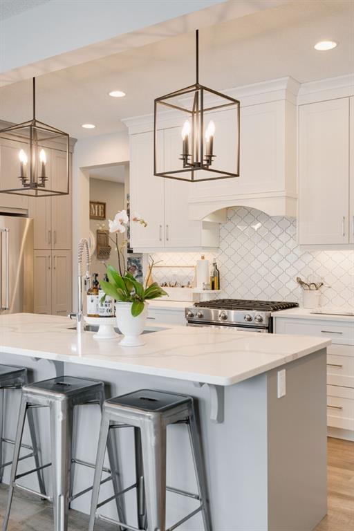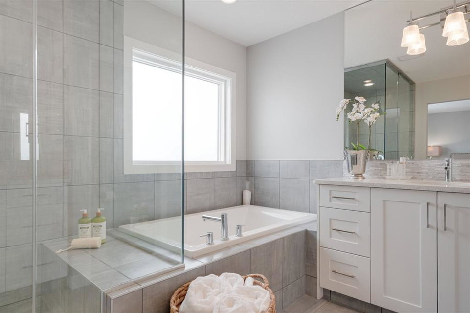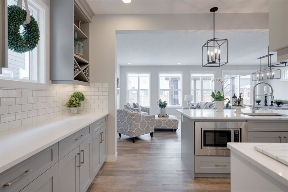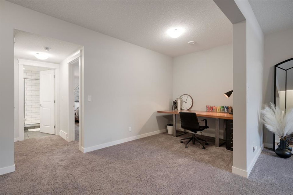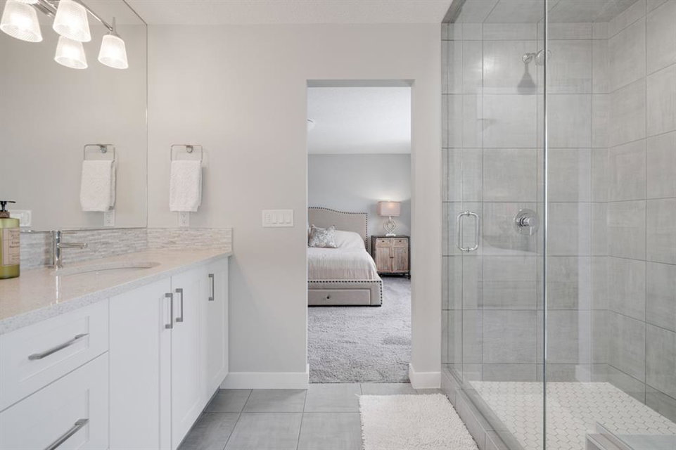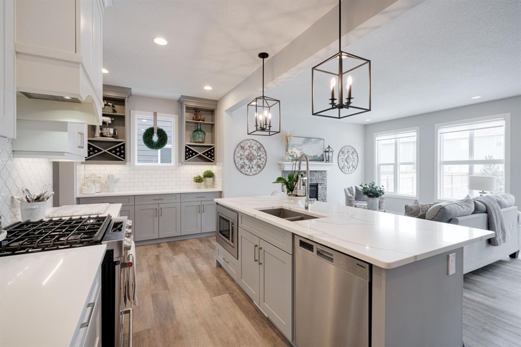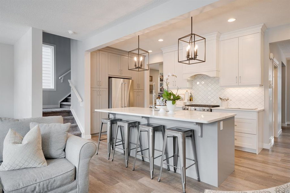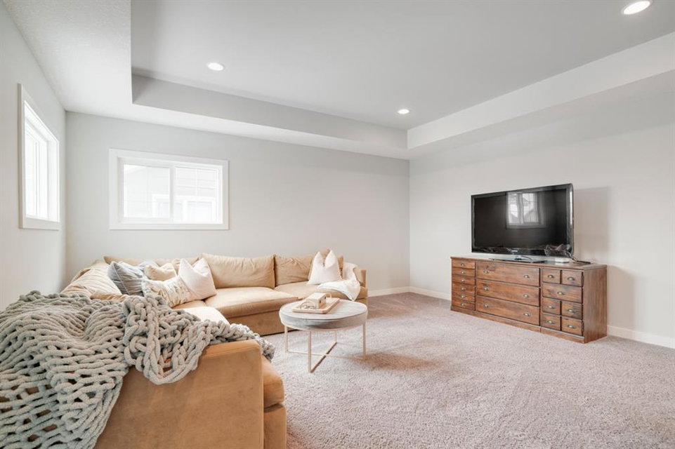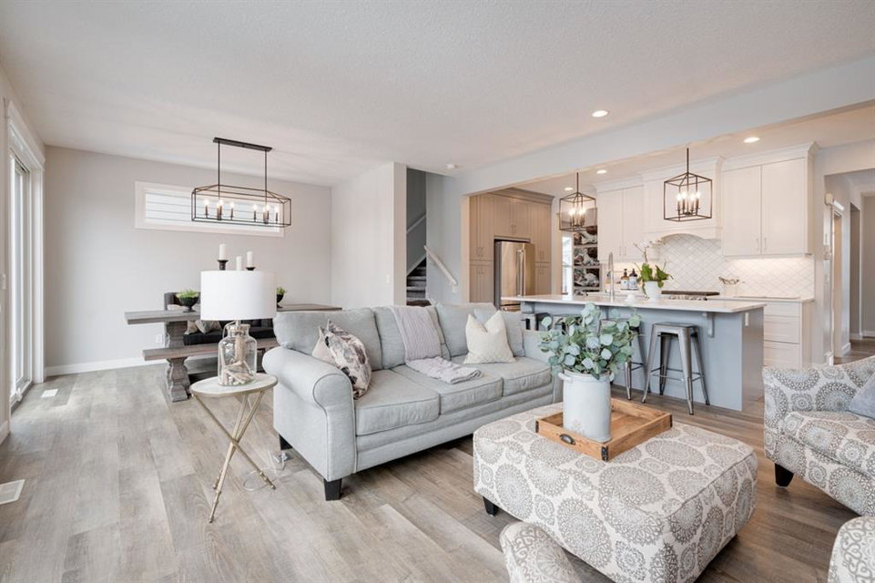 This immaculate and like-new home has been professionally designed and meticulously cared for, offering incredible value in one of Calgary’s most desired neighbourhoods – Riverstone of Cranston. This fully developed home has nearly 3,500 square feet of developed space over three levels. Featuring 4 bedrooms, 3.5 bathrooms, 3 living areas, 2 flex spaces, a den and a west-facing backyard, this is the perfect family home! The beautiful and timeless white kitchen overlooks the entire main level, making it the perfect space to entertain. The kitchen is complete with a gas range, hidden microwave built-in to the island, a large quartz island with an under-mount silgranite sink and custom lighting. A wall of west-facing windows allow for natural light to pour through the main level all day long. The main level is complete with a large mud room with custom built-in storage and a full den that would make the perfect work-from-home space or children’s play area. The upper level includes a central bonus room complete with tray ceiling and large laundry room with access to the owner’s walk-in closet for added everyday convenience. The expansive primary bedroom overlooks the backyard and has a full 5 pc en suite including separate vanities, walk-in tiled shower with 10mm glass and a soaker tub. A flex space between the secondary bedrooms makes for the perfect work space for children and each bedroom has their own walk-in closet and a full bathroom with divided access for added convenience. The professionally developed basement includes a huge recreation room complete with pot lights, gas fireplace and large windows. The basement also has a large fourth bedroom, full bathroom and another flex space that would be perfect for a home gym, office area or additional living space. The fully landscaped west backyard includes a beautiful composite deck with 8X8 cedars posts for its pergola and is fully landscaped with grass, perennials and trees making the perfect space to relax on summer nights. Backyard also prepped for concrete patio that can easily be added next season. This like-new home is a rare find and situated on a large lot with countless upgrades throughout the home.