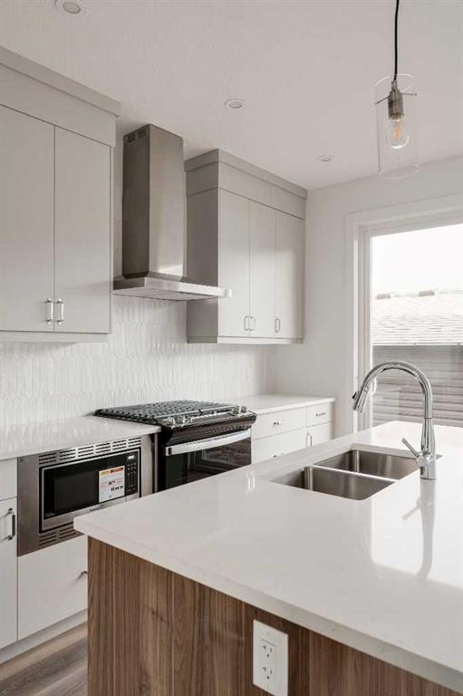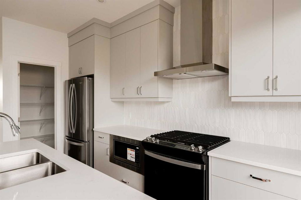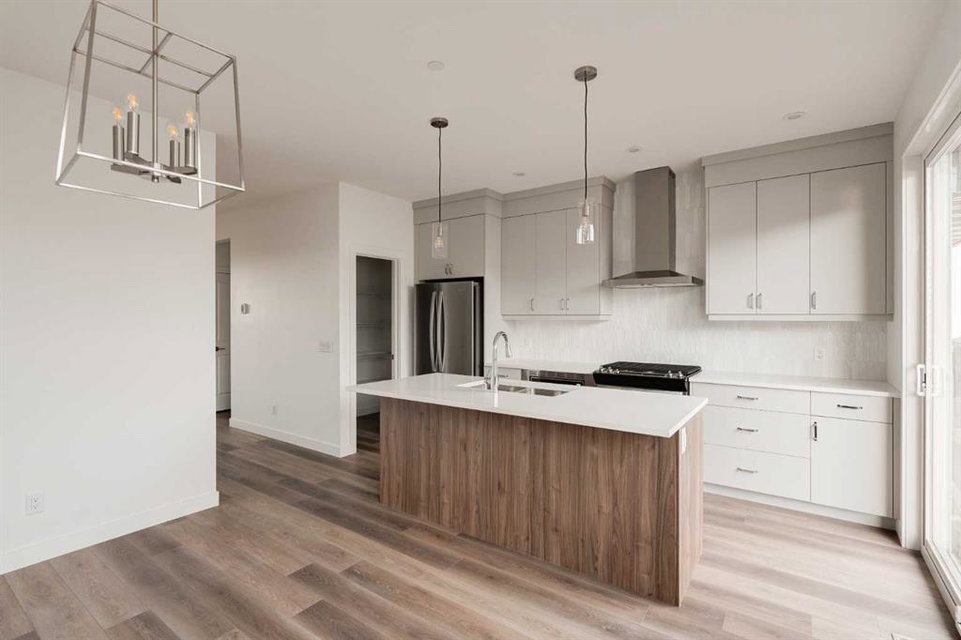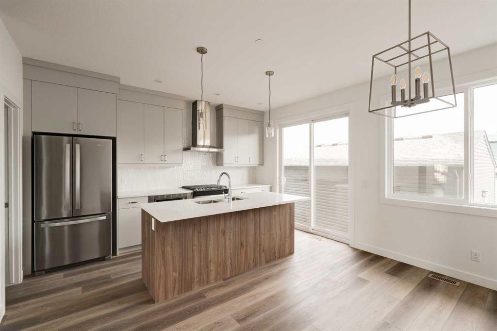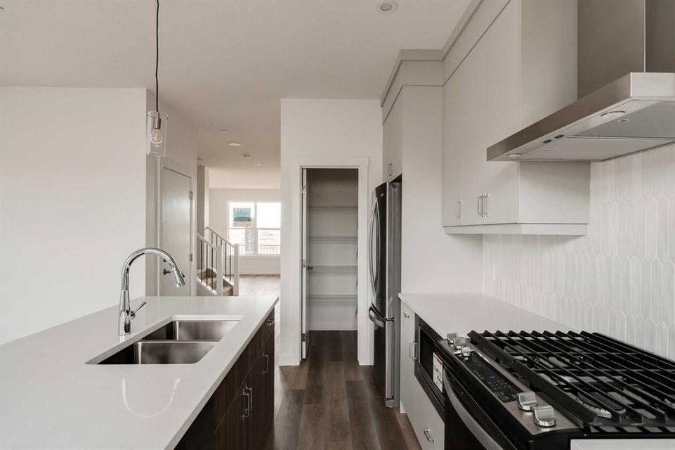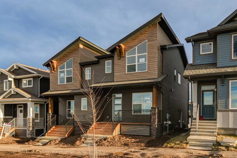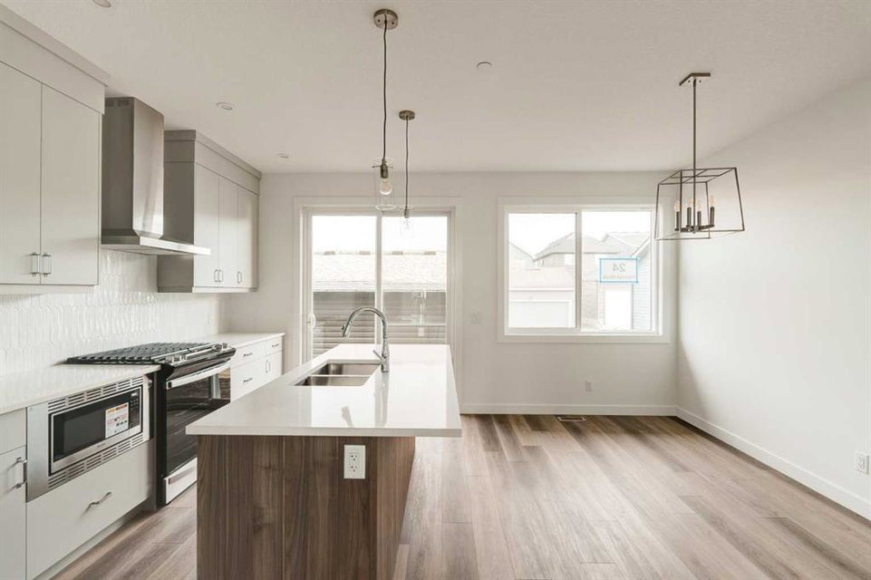 This spacious brand-new home offers 4 bedrooms (3 upstairs, 1 downstairs), 3.5 bathrooms, 2 living areas, and a fully legal 1-bedroom basement suite. The ‘Wicklow’ model by Brookfield Residential is the perfect modern home, with just over 2,200 square feet of developed space across 3 levels. Ideally located in the heart of Livingston, this home is completely move-in ready, complete with a detached single garage and a backyard. The main floor features expansive windows at both the front and rear of the home, flooding the space with natural light throughout the day. Positioned directly across from green space, the home enjoys a bright, open feel and a peaceful setting. The open-concept design is enhanced by 9-foot ceilings on the main level, creating a sense of spaciousness and comfort. The kitchen features full-height cabinetry, a large island, a pantry, and a suite of stainless-steel appliances, including a French door fridge, gas range, chimney hood fan, and built-in microwave. The large kitchen overlooks the dining area, and sliding patio doors open to the backyard, ideal for indoor-outdoor living. Upstairs, a central bonus room divides the private primary suite from the additional bedrooms. The primary suite features vaulted ceilings, a walk-in closet, and a 4-piece ensuite bath with dual sinks and a walk-in shower. Two additional bedrooms, a full bathroom, and a convenient upper-level laundry room complete the space. The fully legal basement suite is move-in ready! Equipped with its own mechanical system, a full kitchen, living/dining area, spacious bedroom, full bathroom, and in-suite laundry, the suite offers the perfect solution for extended family or the opportunity to generate rental income. The backyard leads to the private detached garage, providing secure storage and parking for your vehicle. This new home comes with a builder warranty as well as the Alberta New Home Warranty for added peace of mind.