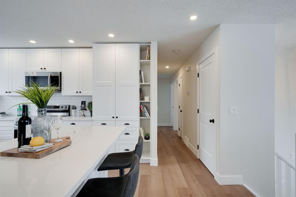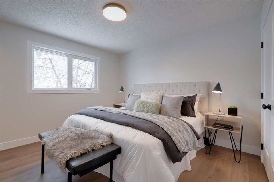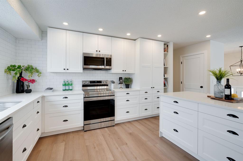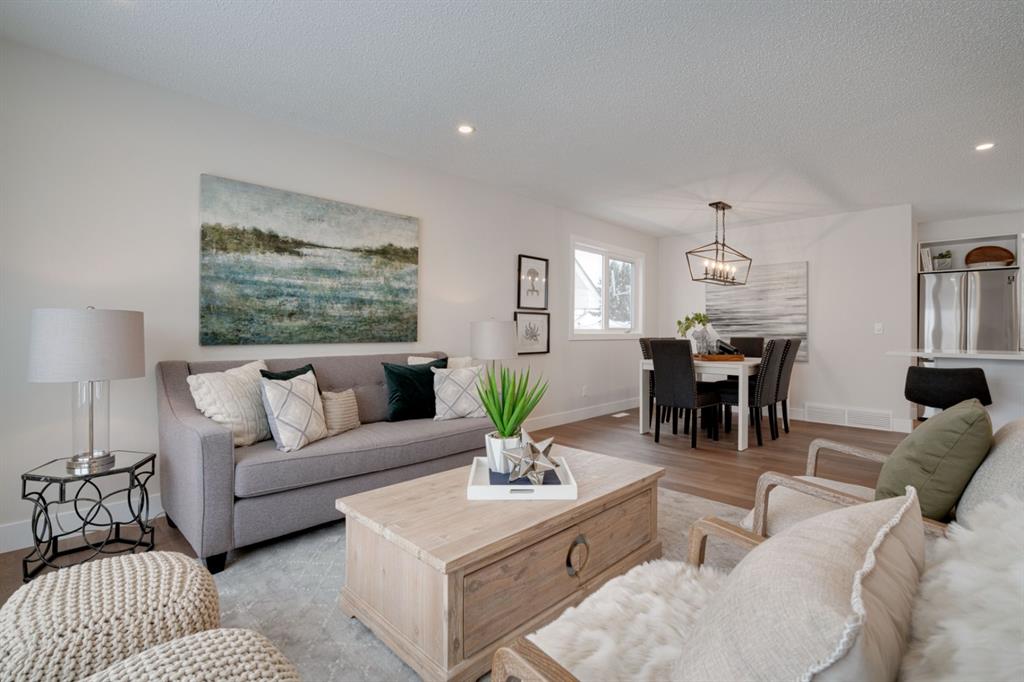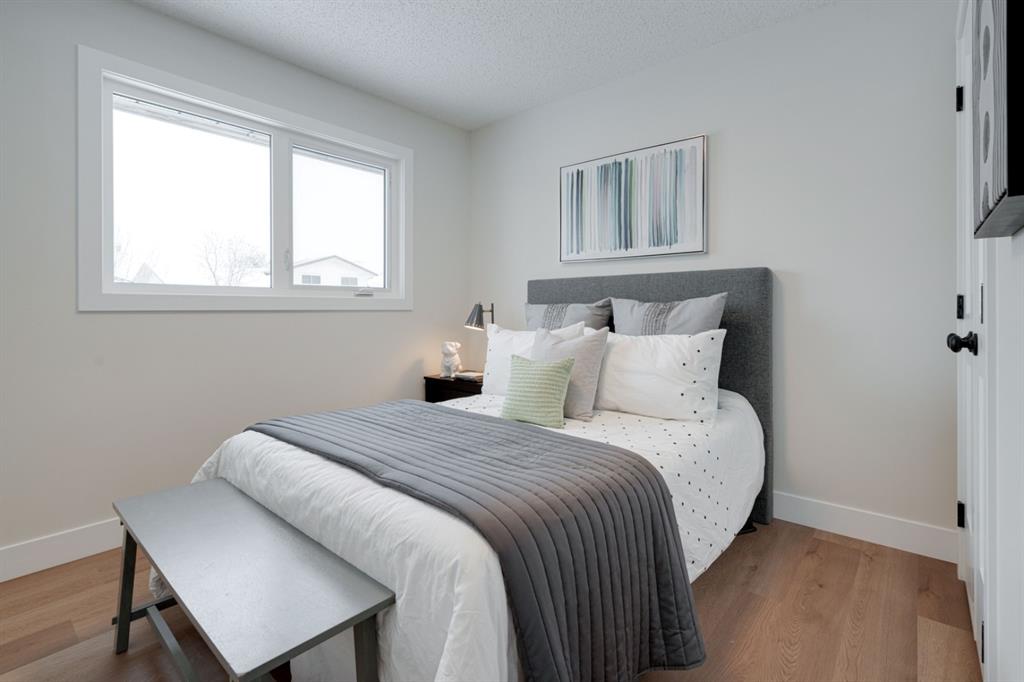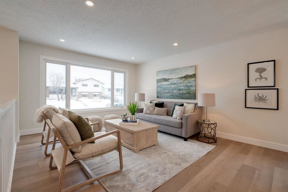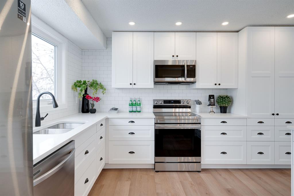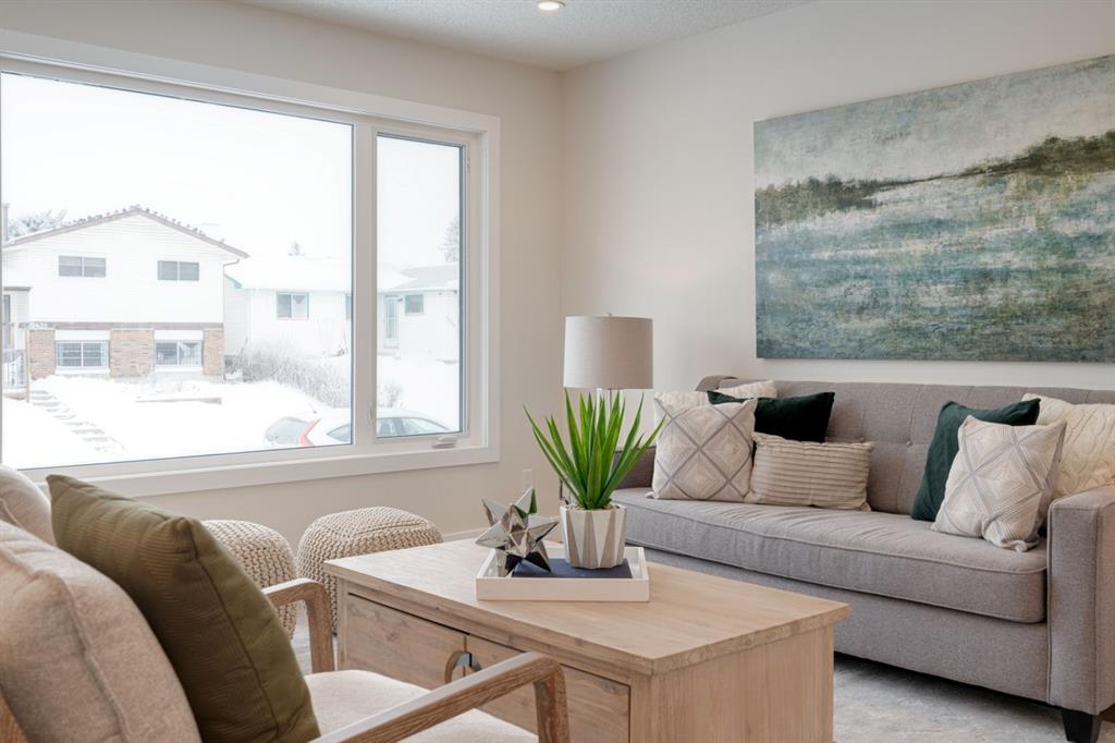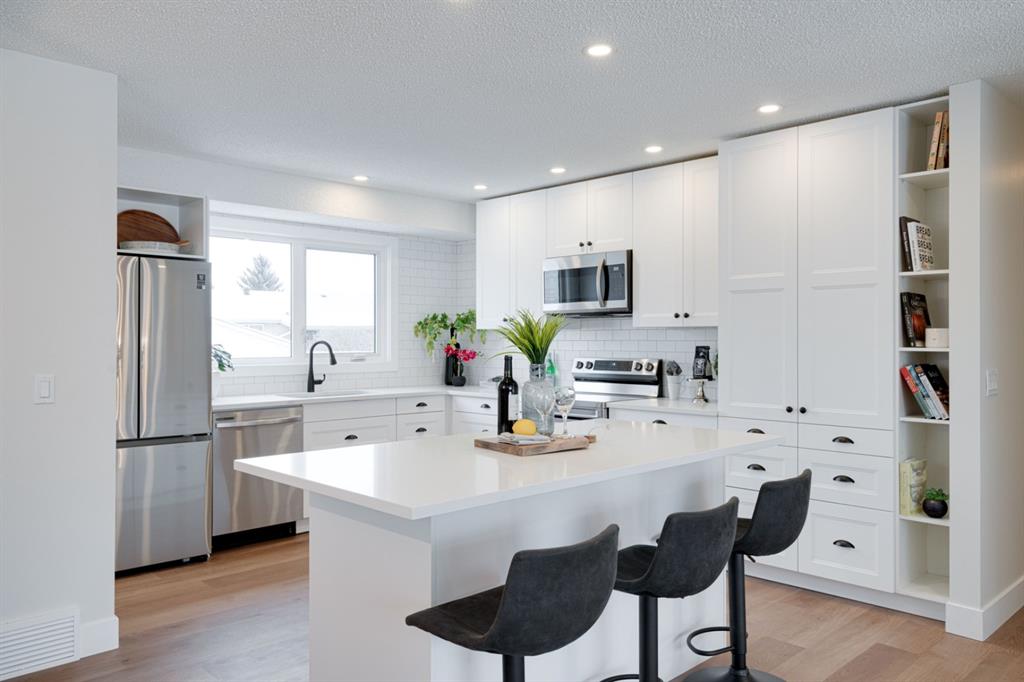 OPEN HOUSE – Saturday January 15, 11:00am – 2:00pm**. This completely renovated bi-level is like a brand new home featuring over 2,100 square feet of developed space and its fully move-in ready! The bright and open concept main level is perfect for entertaining and the large front window allows natural light to flow through the home all day long. The timeless white kitchen is complete with a suite of brand new stainless steel appliances, a full built-in pantry with pull-out drawers and a large island with additional seating space. The kitchen overlooks the main living area and dining space, which have newly installed pot lights throughout – keeping the space bright with a clean and seamless design. Resilient LVP flooring flows throughout the entire main floor and its warm palette is perfect for any furniture. The upper level of the home has 3 large bedrooms, a main bathroom and a full en suite with walk-in shower for the primary bedroom. The fully developed basement has two living areas, two bedrooms and another full bathroom. The two living areas make the perfect space for a TV room and reading area, office space or children’s play area. Both bedrooms are large with ample space for a queen bed and study area within the bedroom. The full bathroom includes a walk-in shower, making the perfect basement space for older children. Laundry is conveniently located on the main level. The back entrance has a large deck with new stairs, glass railings and additional storage underneath. The large backyard has an oversized double detached garage, additional parking pad that is perfect for an RV or additional parking space and plenty of green space. Renovations and updates include: All new windows, kitchen, appliances, vanities, flooring, lighting, plumbing fixtures, hot water and the home has a newer furnace (~2 years old) and a newer roof (~4 years old). With a playground located just two doors down – this location couldn’t get better! Do not wait for prices to increase further, this is the newest home in Rundle and just a few blocks from nearby LRT and Sunridge Mall. This completely renovated home doesn’t need anything and is ready for it’s new owners!