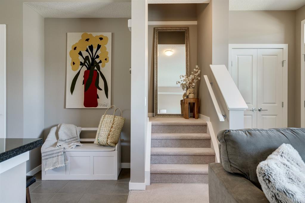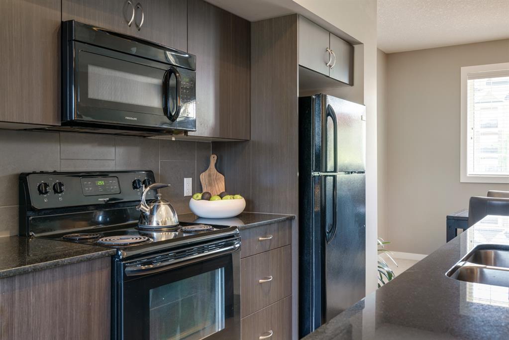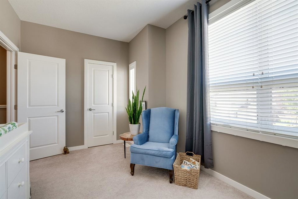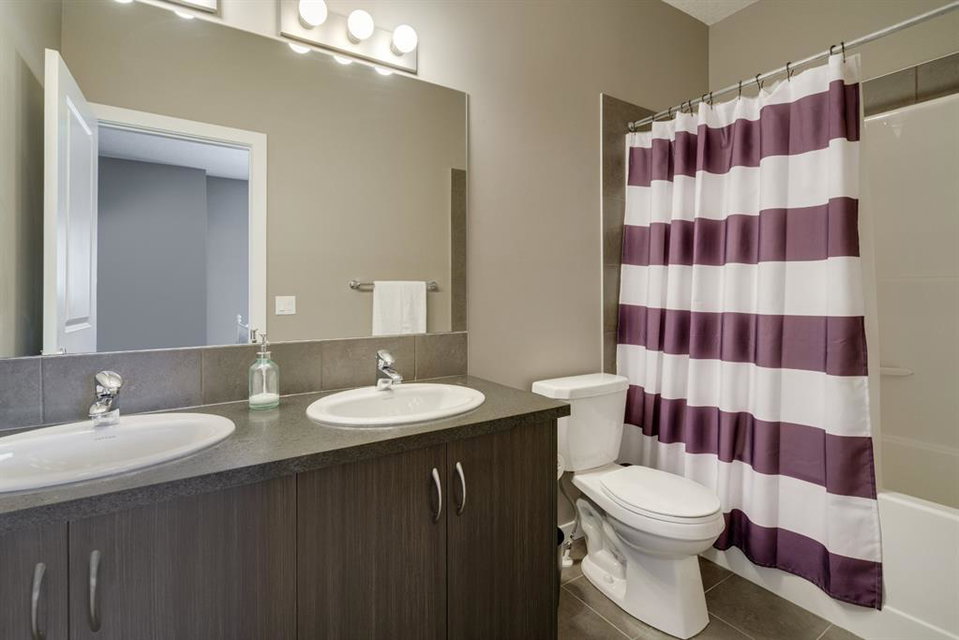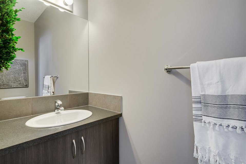 A beautiful 2 bedroom, 2.5 bathroom end-unit townhouse located in the heart of Cranston with easy walking access to nearby amenities including the grocery store and restaurants! This well-cared for townhouse has an open concept main level with 9′ ceilings that make the perfect bright and open space. The centre kitchen creates the perfect entertainment space and is open to both living and dining areas. The upper level (which also has 9′ ceilings) has a hallway nook that would be the perfect spot for a desk / office area and two master bedrooms. Master bedroom 1 is equipped with a walk-in closet and full 5 pc ensuite with dual sinks. The second master bedroom and full bathroom complete the upper level. The full basement is unfinished and awaits its new owner’s imagination with ample space for a bedroom, bathroom and rec area! A playground just steps away out the back door is perfect for those with children or visiting children. This beautiful townhouse provides maintenance-free living in an incredible location and is fully move-in ready!