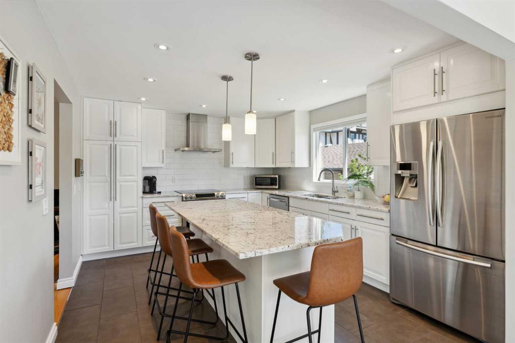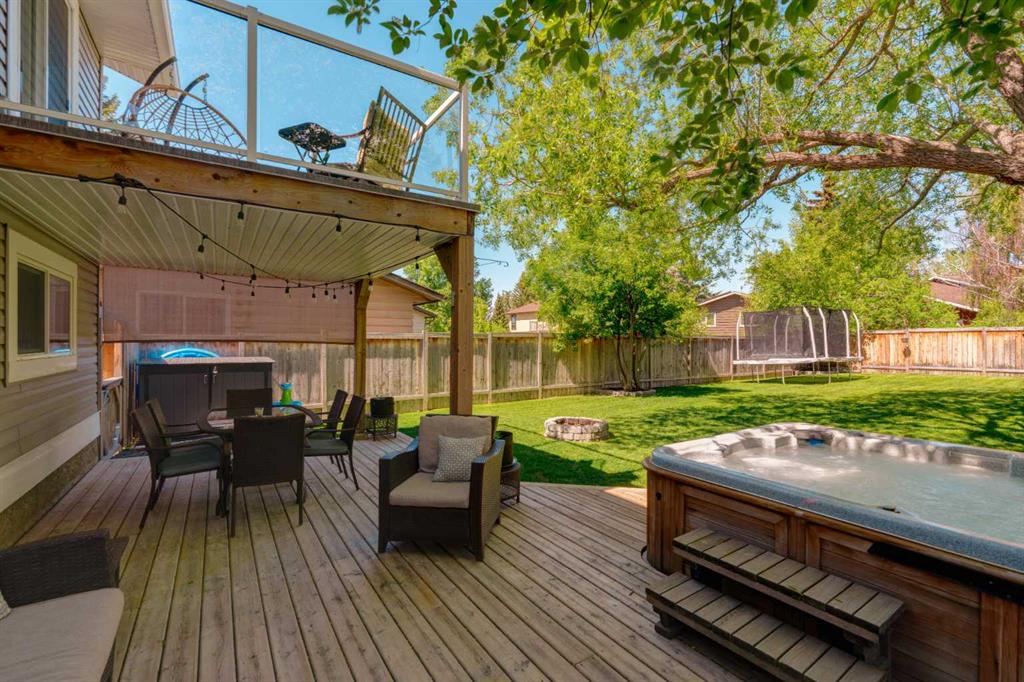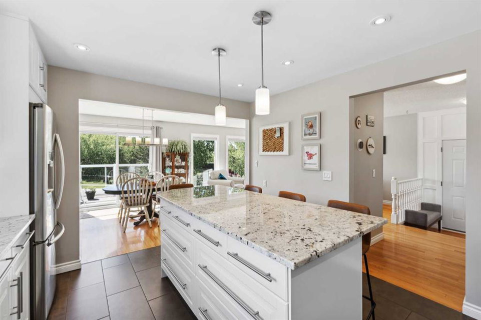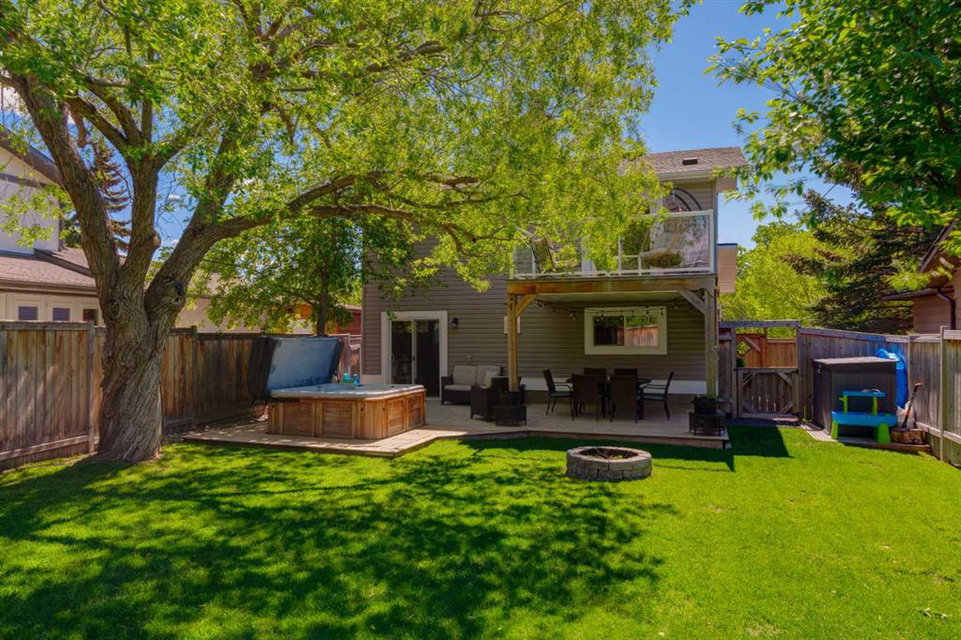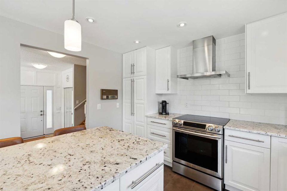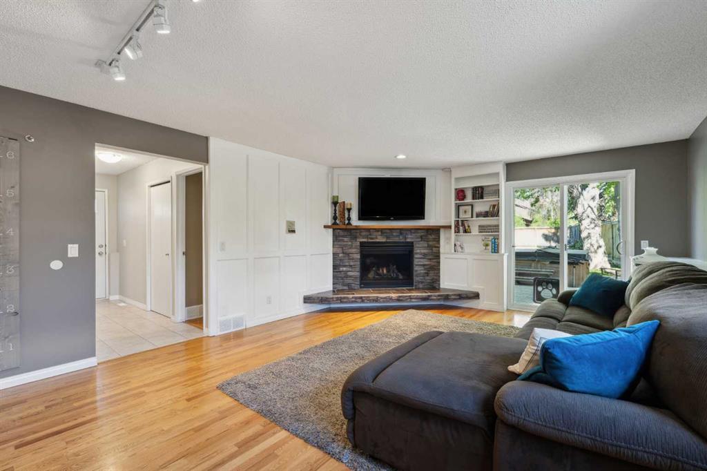 OPEN HOUSE CANCELLED! This beautiful property has been updated throughout, meticulously maintained and is incredibly well located in Ranchlands Estates, just steps from two off-leash parks. Featuring 2 living spaces, 4 bedrooms, 2.5 bathrooms and nearly 2,000 square feet of living space + endless storage, this property is perfect for a growing family. Situated on a 6,600 square foot lot, this estate property has plenty of room both inside and out. Hardwood flooring flows throughout the home’s living spaces and bedrooms, creating a seamless and beautiful look that is both functional and resilient for children and pets. The bright and open main living area has a wall of south-facing windows that capture natural light all day long but also have up/down custom window coverings for ideal privacy. The main living space is flooded with natural light and has ample space for virtually any furniture size. The expansive kitchen is complete with timeless white cabinetry including a built-in pantry, slide-in range with built-in hood fan and is complete with subway tile backsplash and granite countertops including an oversized island with additional seating. The kitchen overlooks the dining area, making the perfect space for entertaining and the main level is complete with a sun-catching front balcony – perfect for herbs and a BBQ area. Up a half set of stairs is the primary bedroom complete with a double closet, private 3pc ensuite with walk-in tiled shower and lastly, a private balcony that overlooks the backyard. Two more generous sized bedrooms and a full bathroom complete the second level. Down a half set of stairs from the main level is the second living area. This large recreation space includes built-ins, a new gas fireplace with custom stonework and a walnut mantel, and large windows allowing for natural light. A fourth bedroom, 2 pc bathroom and laundry room with built-in storage complete the lower level. A side entrance and large patio doors lead to the backyard – providing two access points from the lower level. The oversized attached garage is an absolute dream and also has access to the endless crawl space that is 4′ high and the width of the entire home – providing more storage than one could ever need! The 23’8″ x 24’2″ garage is fully insulated and heated, has 220V power, an epoxy floor and a brand new garage door. The stunning backyard is a rare find and includes a large deck with covered area, hot tub (included), mature trees and professional landscaping as well as a newer fence. A dog run with artificial grass was built on the side of the property, perfect for pet-lovers! Additional upgrades and features include updated double-pane windows, new front and side doors, duradek on balconies, extra attic insulation, new sewer line from house to city-main, outside hot-water tap, newer appliances, and fresh Benjamin Moore paint. This property is perfectly located across from two parks with views of COP.