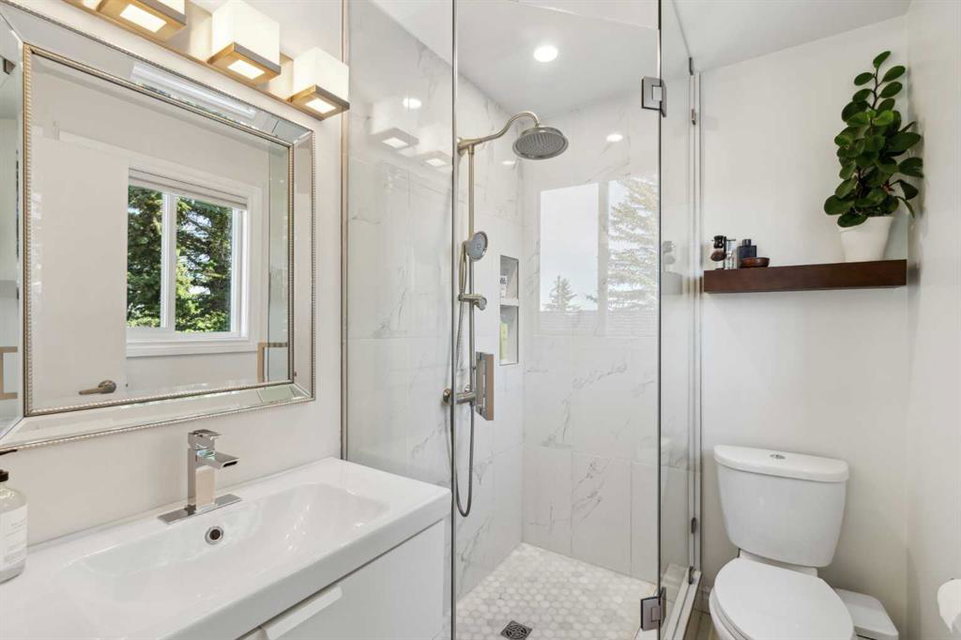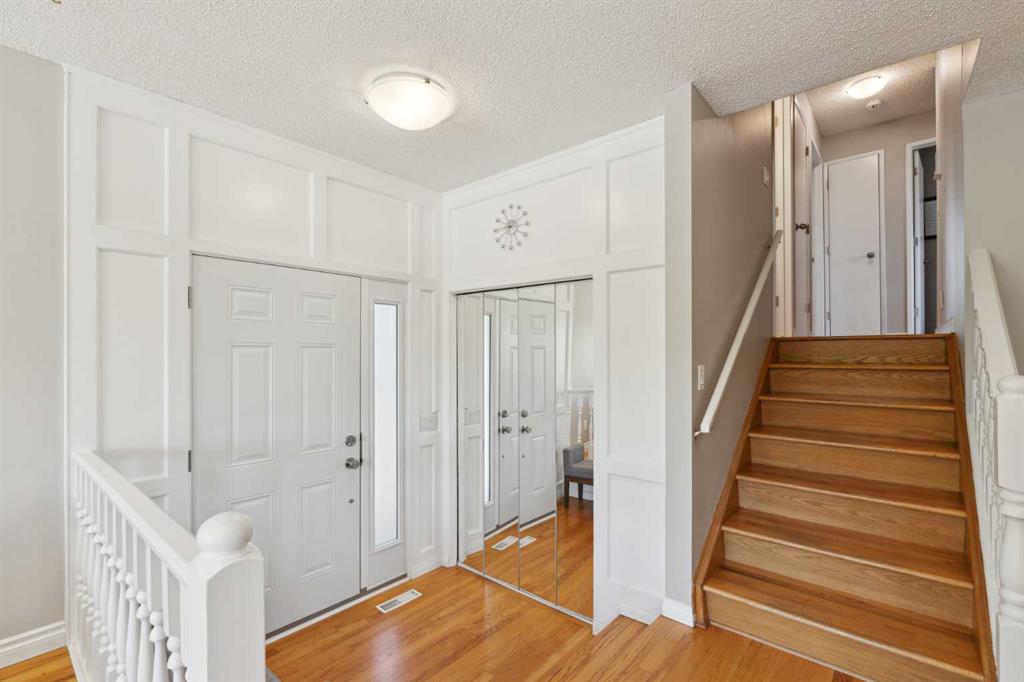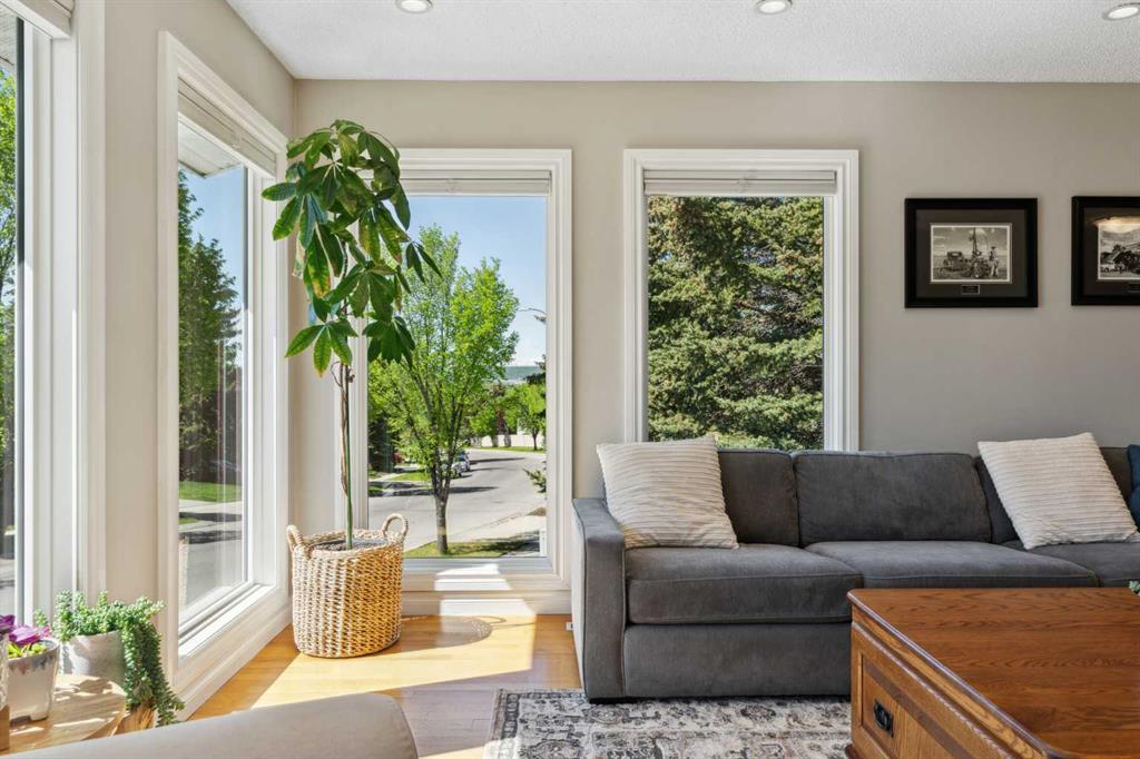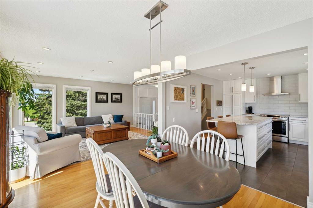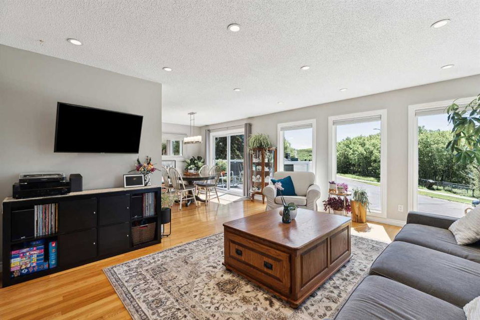 OPEN HOUSE CANCELLED! This beautiful property has been updated throughout, meticulously maintained and is incredibly well located in Ranchlands Estates, just steps from two off-leash parks. Featuring 2 living spaces, 4 bedrooms, 2.5 bathrooms and nearly 2,000 square feet of living space + endless storage, this property is perfect for a growing family. Situated on a 6,600 square foot lot, this estate property has plenty of room both inside and out. Hardwood flooring flows throughout the home’s living spaces and bedrooms, creating a seamless and beautiful look that is both functional and resilient for children and pets. The bright and open main living area has a wall of south-facing windows that capture natural light all day long but also have up/down custom window coverings for ideal privacy. The main living space is flooded with natural light and has ample space for virtually any furniture size. The expansive kitchen is complete with timeless white cabinetry including a built-in pantry, slide-in range with built-in hood fan and is complete with subway tile backsplash and granite countertops including an oversized island with additional seating. The kitchen overlooks the dining area, making the perfect space for entertaining and the main level is complete with a sun-catching front balcony – perfect for herbs and a BBQ area. Up a half set of stairs is the primary bedroom complete with a double closet, private 3pc ensuite with walk-in tiled shower and lastly, a private balcony that overlooks the backyard. Two more generous sized bedrooms and a full bathroom complete the second level. Down a half set of stairs from the main level is the second living area. This large recreation space includes built-ins, a new gas fireplace with custom stonework and a walnut mantel, and large windows allowing for natural light. A fourth bedroom, 2 pc bathroom and laundry room with built-in storage complete the lower level. A side entrance and large patio doors lead to the backyard – providing two access points from the lower level. The oversized attached garage is an absolute dream and also has access to the endless crawl space that is 4′ high and the width of the entire home – providing more storage than one could ever need! The 23’8″ x 24’2″ garage is fully insulated and heated, has 220V power, an epoxy floor and a brand new garage door. The stunning backyard is a rare find and includes a large deck with covered area, hot tub (included), mature trees and professional landscaping as well as a newer fence. A dog run with artificial grass was built on the side of the property, perfect for pet-lovers! Additional upgrades and features include updated double-pane windows, new front and side doors, duradek on balconies, extra attic insulation, new sewer line from house to city-main, outside hot-water tap, newer appliances, and fresh Benjamin Moore paint. This property is perfectly located across from two parks with views of COP.