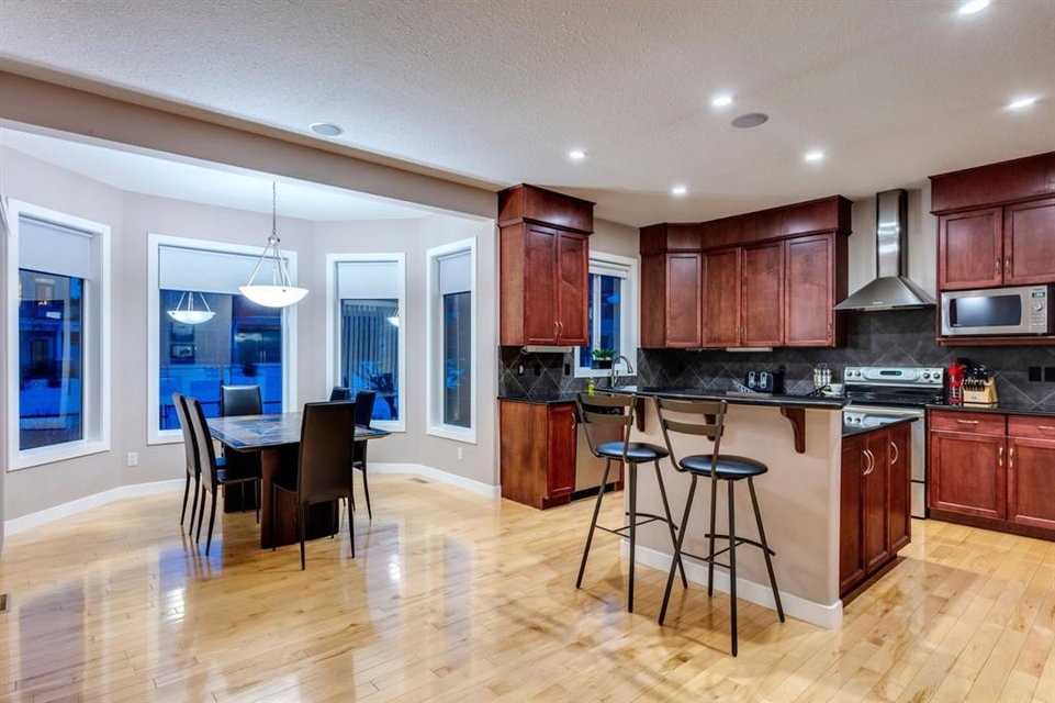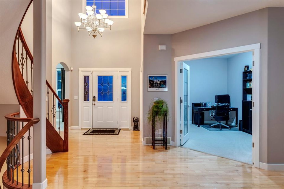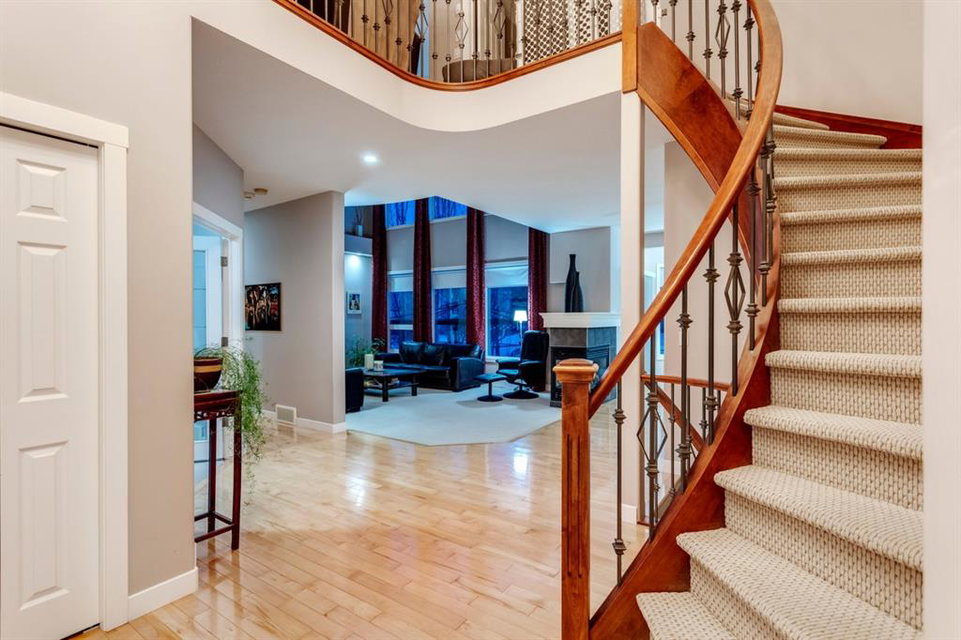 Live on a green space and step out your door into Fish Creek Park! This is an incredible opportunity to own a beautiful estate home with a triple attached garage & over 3,500 sf of developed space on an extremely desirable lot backing onto a green space in the most desirable part of Evergreen! The grand entrance is open-to-above with a stunning spiral staircase – timelessly beautiful. The main level combines a modern & traditional layout, having a large kitchen open to the living area & breakfast nook but also has a butler’s pantry & formal dining room. The upper level provides room for a reading nook & overlooks the front entrance & main living area that is complete with windows spanning the 20′ wall. The master is complete with a 5 pc ensuite & two more bedrooms with a main bathroom completing the upper level. The developed basement includes a rec room spanning the width of the home providing endless opportunities but a fourth bedroom could be added with ease. The professionally landscaped backyard, including underground sprinklers, provides the perfect outdoor living space that captures southern exposure with A/C cooling inside.