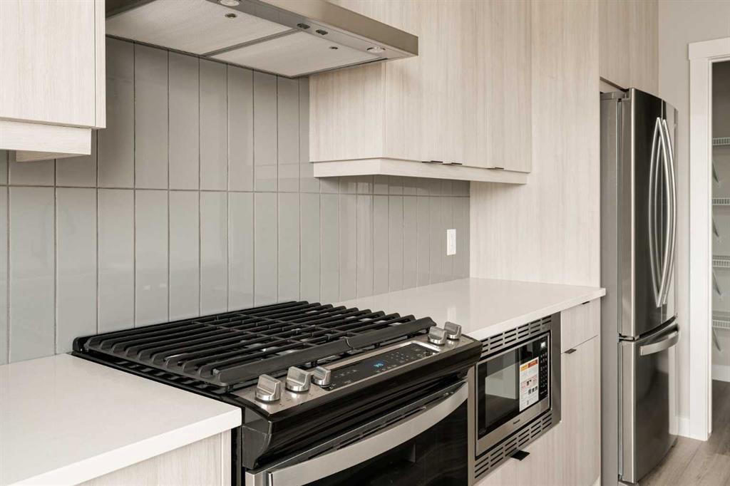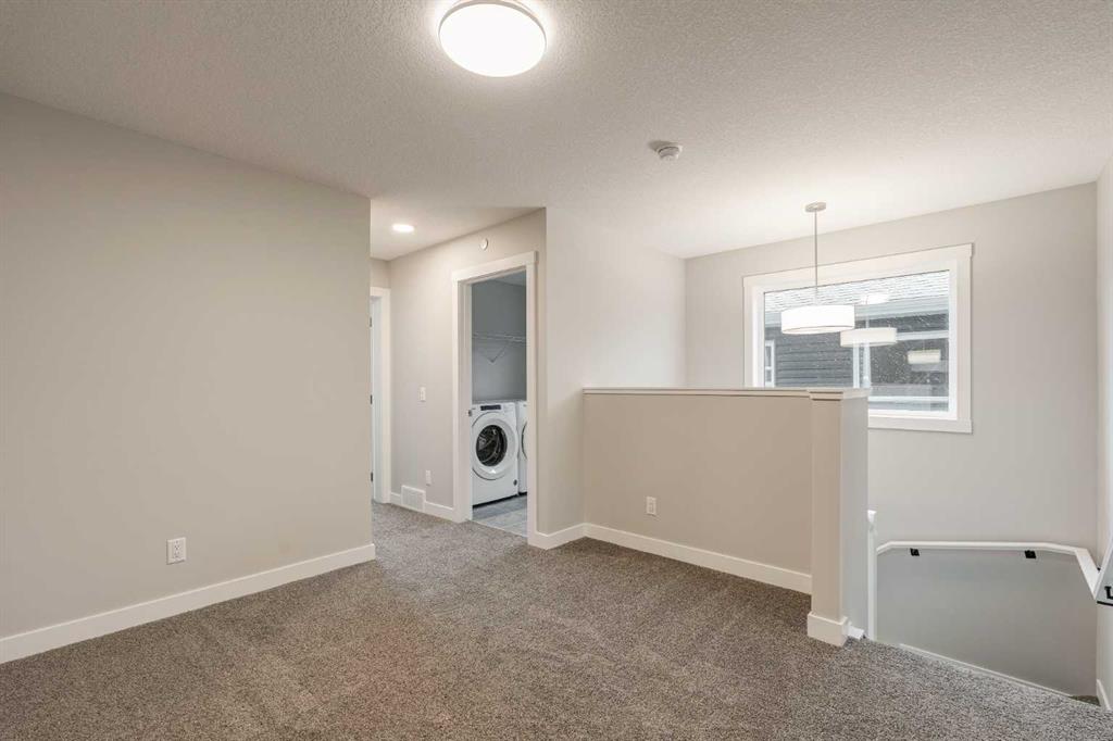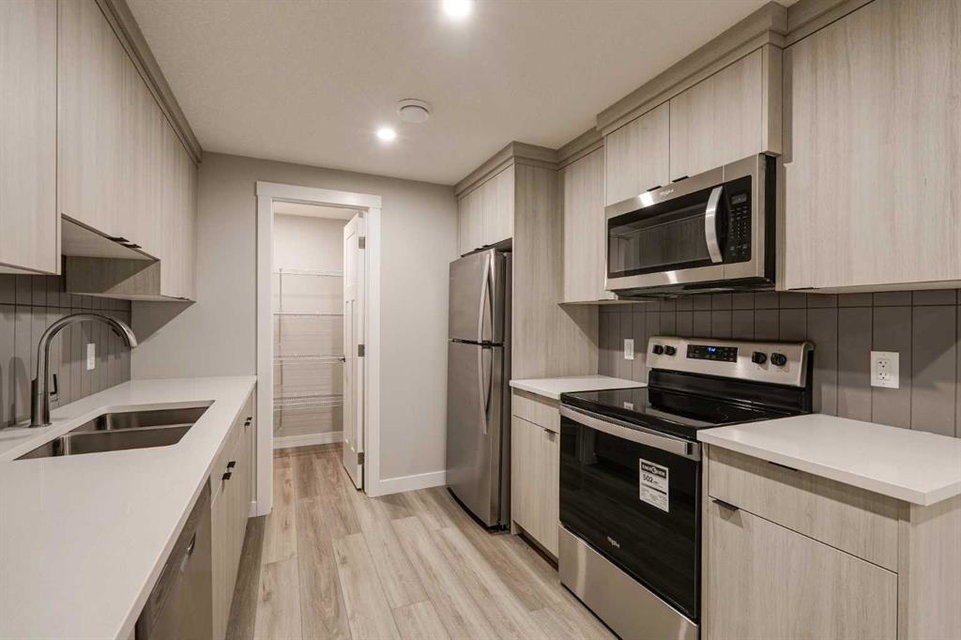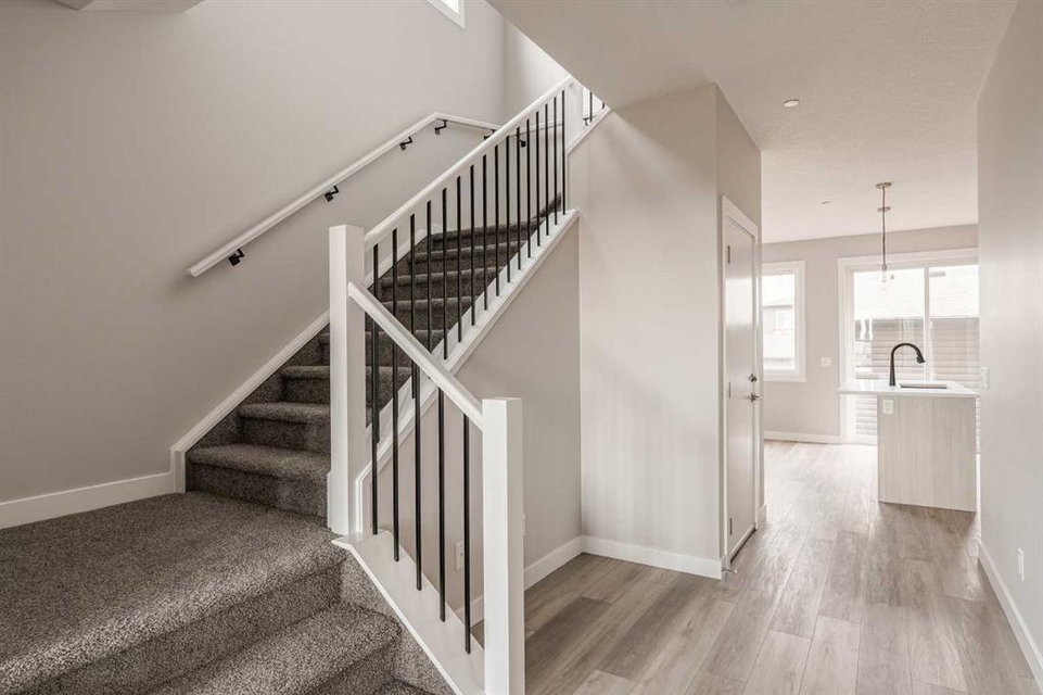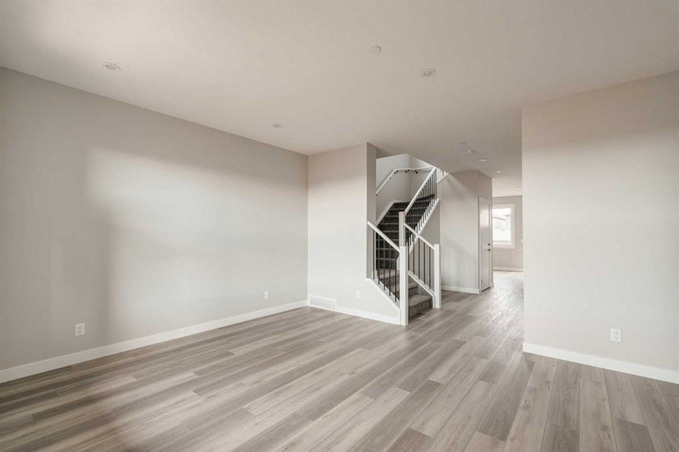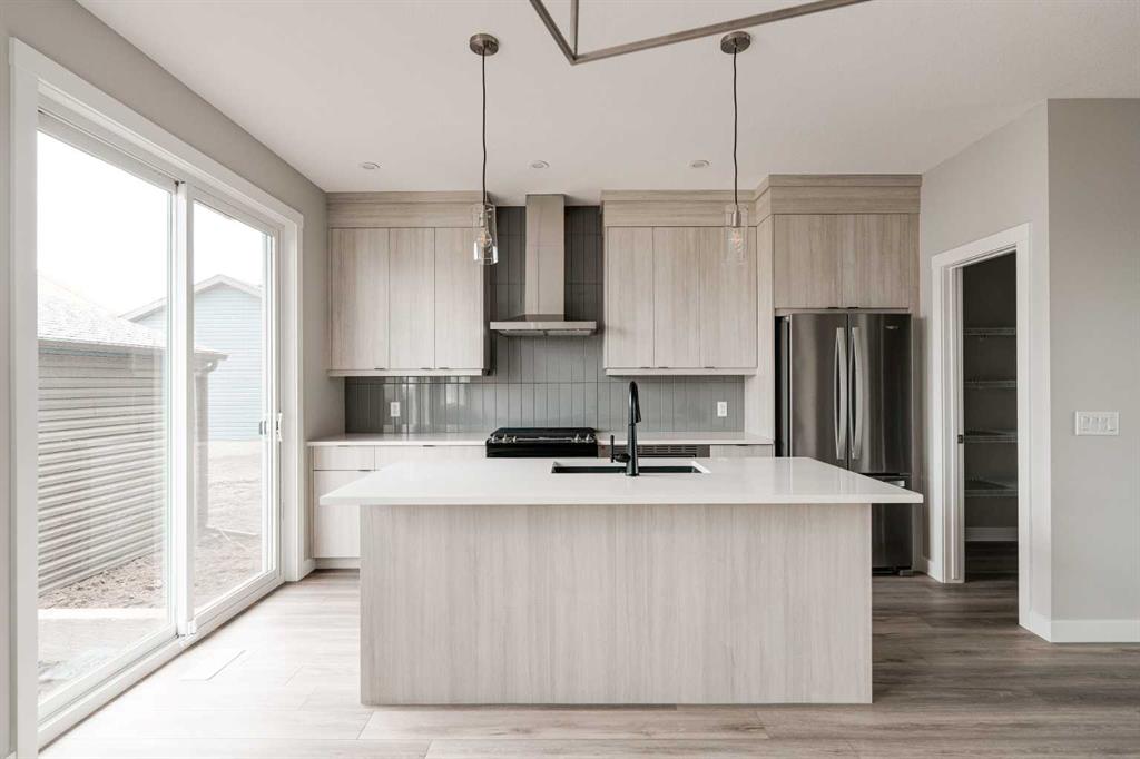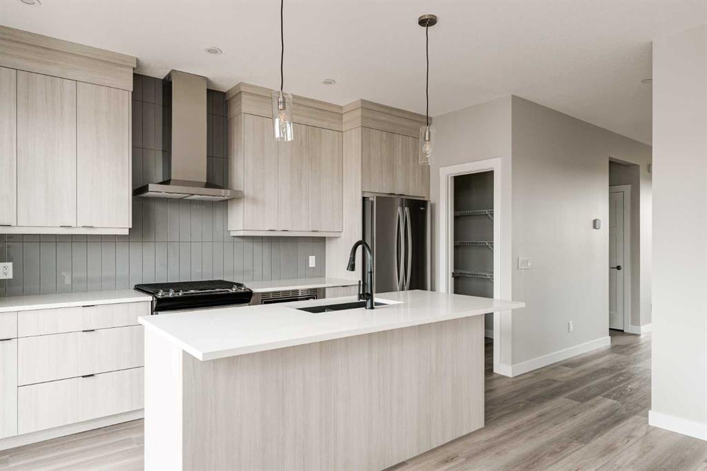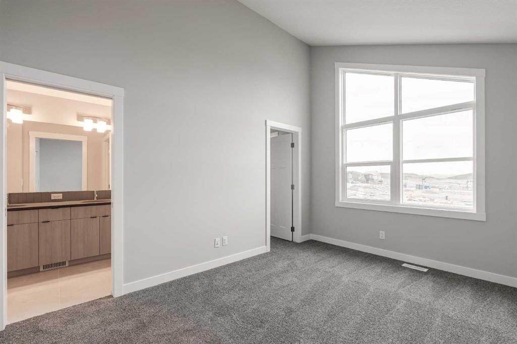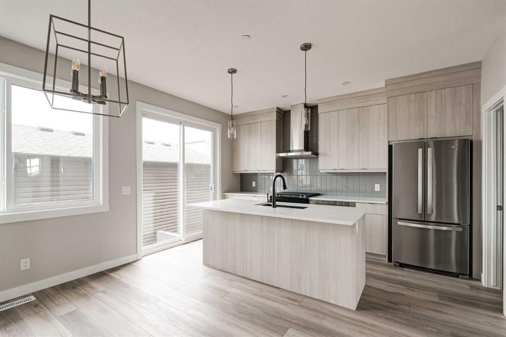 This impressive brand-new home offers 4 bedrooms (3 upstairs, 1 downstairs), 3.5 bathrooms, two distinct living areas, and a fully legal 1-bedroom basement suite. The ‘Wicklow’ model by Brookfield Residential is the perfect modern design, providing nearly 2,300 square feet of thoughtfully developed living space spread over three levels. Located in the desirable heart of Livingston, this home is move-in ready, featuring a detached single garage and a spacious backyard. The main floor boasts expansive windows at both the front and back, allowing natural light to flood the space all day long. Situated directly across from green space, the home enjoys an open and airy feel with a peaceful, scenic setting. The open-concept layout is enhanced by 9-foot ceilings, offering a bright, comfortable living environment. The kitchen is a standout with full-height cabinetry, a large central island, a pantry, and a complete suite of stainless-steel appliances, including a French door fridge, gas range, chimney-style hood fan, and built-in microwave. It seamlessly flows into the dining area, with sliding patio doors leading out to the backyard—perfect for indoor-outdoor living. Upstairs, a central bonus room acts as a divider, offering privacy between the spacious primary suite and the two additional bedrooms. The primary suite features vaulted ceilings, a walk-in closet, and a luxurious 4-piece ensuite with dual sinks and a walk-in shower. Two more bedrooms, a full bathroom, and an upper-level laundry room complete this level. The fully legal basement suite is ready for immediate occupancy. It includes its own mechanical system, a full kitchen, pantry, living/dining area, a generously sized bedroom, a full bathroom, and in-suite laundry—ideal for multi-generational living or as a potential rental for added income. The backyard leads to the detached garage, providing secure parking and extra storage space. This home comes with a builder’s warranty, as well as the Alberta New Home Warranty, giving you peace of mind.