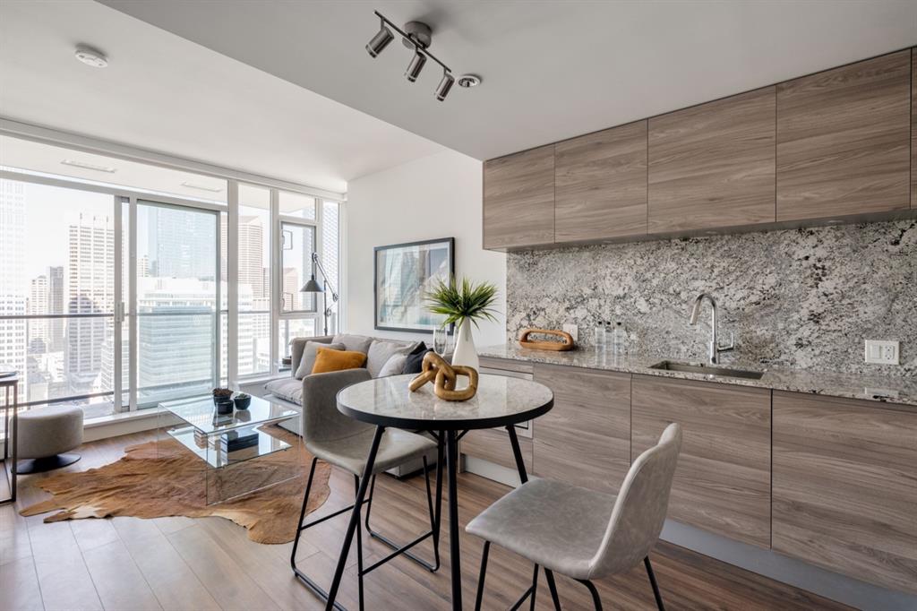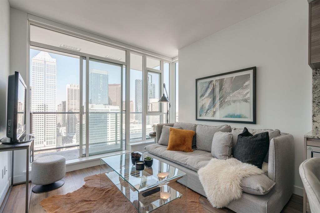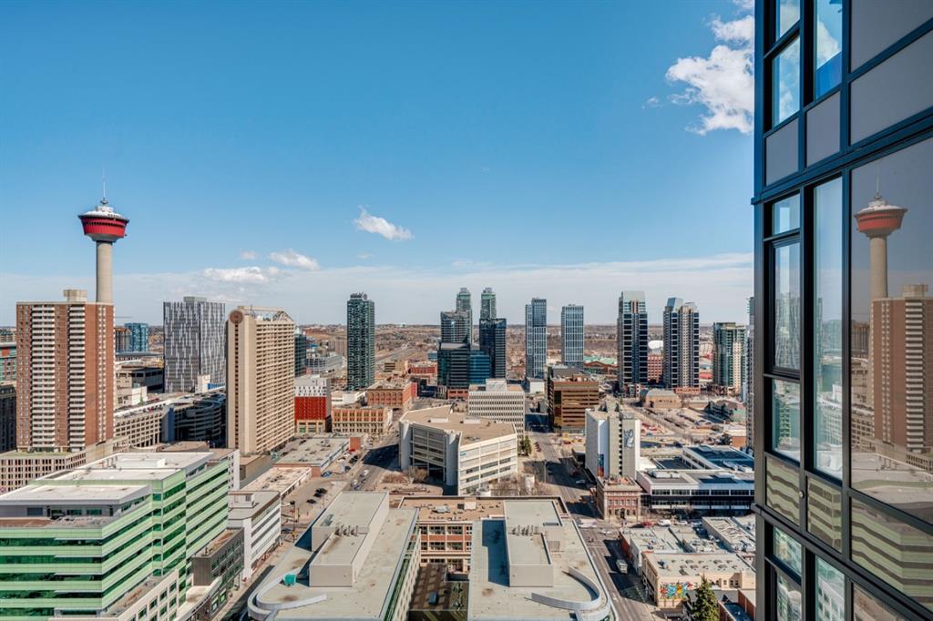 Park Point is one of downtown Calgary’s most prestigious buildings offering amenities and a prime location! This like-new condo unit is located directly across from Central Memorial Park where you can enjoy unobstructed views of the charming cityscape. Natural light and warm tones flood this unit with a comfortable ambiance that you will want to call home. Have the benefit of central air conditioning, large windows and a functional open concept kitchen with built-in S/S appliances and granite countertops that flow into the extended backsplash. Resilient laminate flooring flows throughout the unit and completes this fabulous high-rise abode. This one bedroom condo has incredible views that can be enjoyed from bed and the expansive bathroom complete with walk-in shower and oversized vanity has more than enough space for everyday living. Breathtaking scenery and high-end finishing add to the luxury of this one-of-a-kind development. With eight foot ceilings, north exposure, and 28 floors up, you can relish in the downtown city life that Calgary has to offer. This property is perfect for a first time buyer, investor, or young professionals that want to walk to work and enjoy the benefits of the maintenance-free lifestyle in a beautiful downtown condo. Book your showing today!