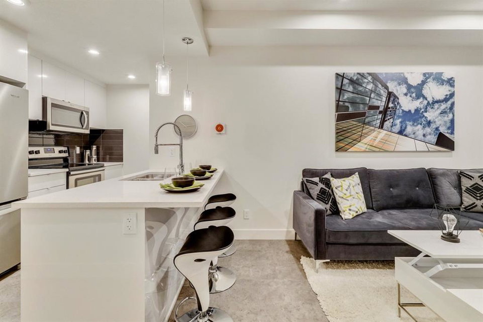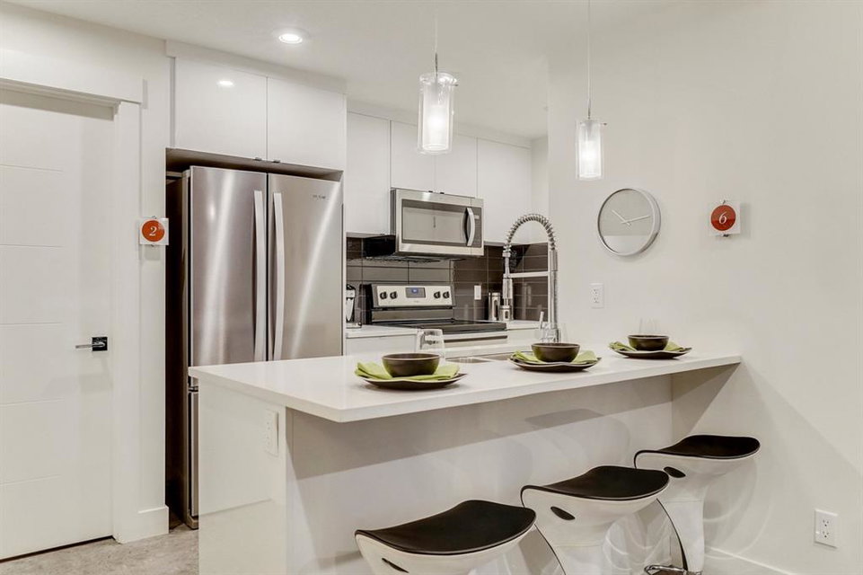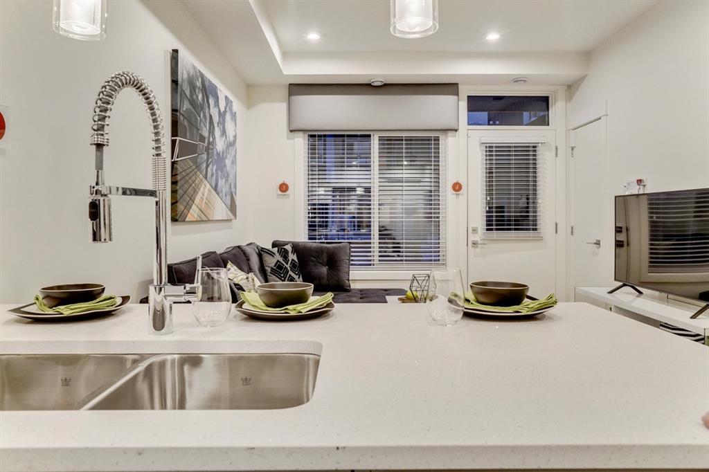 An incredible opportunity to own a brand new 1 Bedroom + Den END UNIT townhome in the heart of Seton! The “Cali” Built by Rohit Communities, one of Alberta’s largest homebuilders is an excellent first home offering ample space for a home office while providing plenty of space for daily living and an excellent entertaining area. Perfect for health care professionals or those looking to take advantage of all that Seton has to offer with its walkability, restaurants and numerous shops. This is an incredible opportunity to stop renting and own a brand new home! This home is finished in the ‘Contemporary Classic’ designer interior featuring classic elements like marbled quartz counters and classic profile crown mouldings to create a timeless look that stays fresh for decades. Two-tone white upper and grey base cabinets, warm woods and plush carpet blend with brushed chrome fixtures and clean lines to create an elegant living space. The south-facing main floor home is completed with a titled parking stall and low condo fees. *Note: Photos from show home and are not an exact representation of the property for sale.
