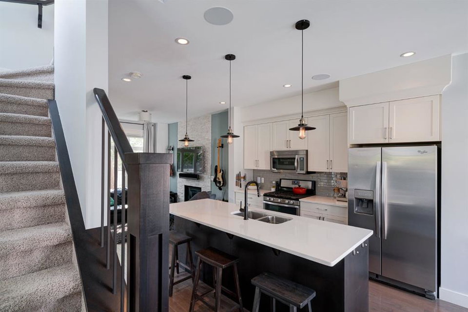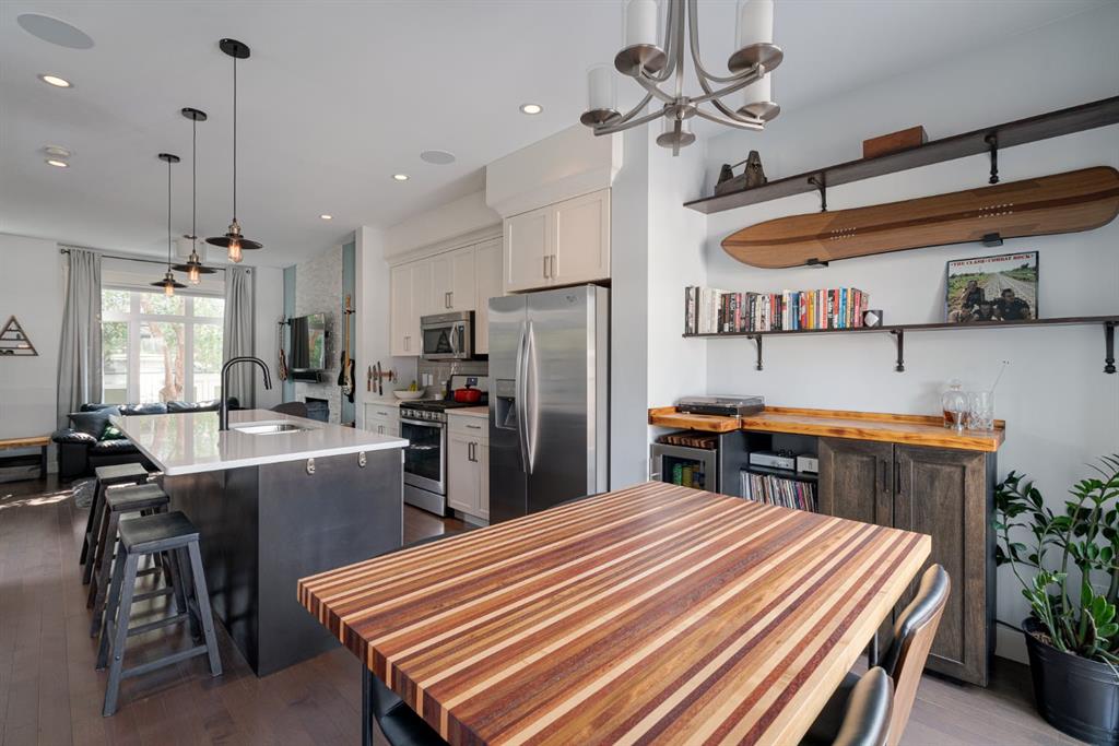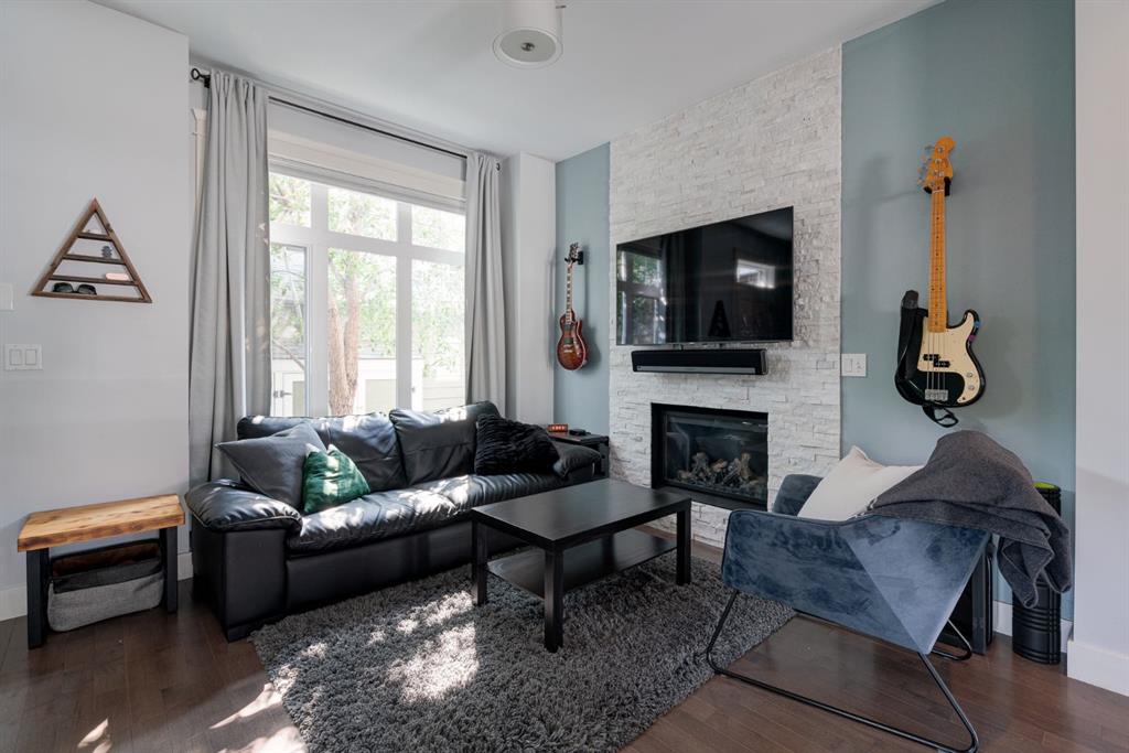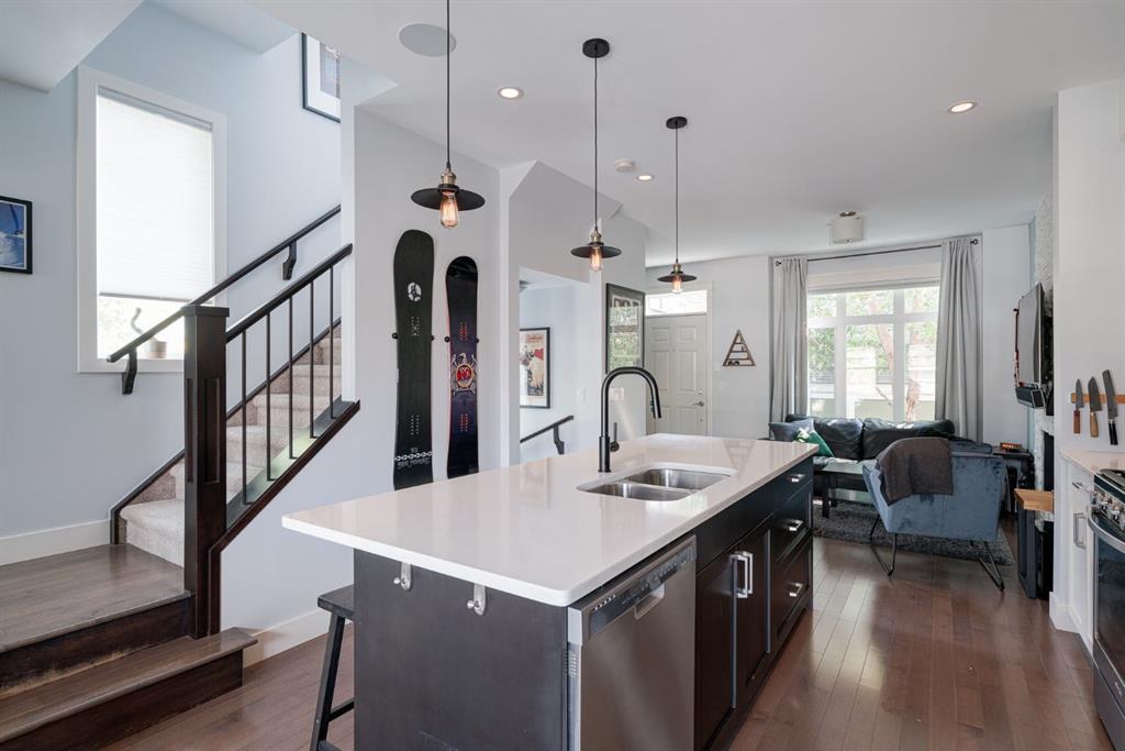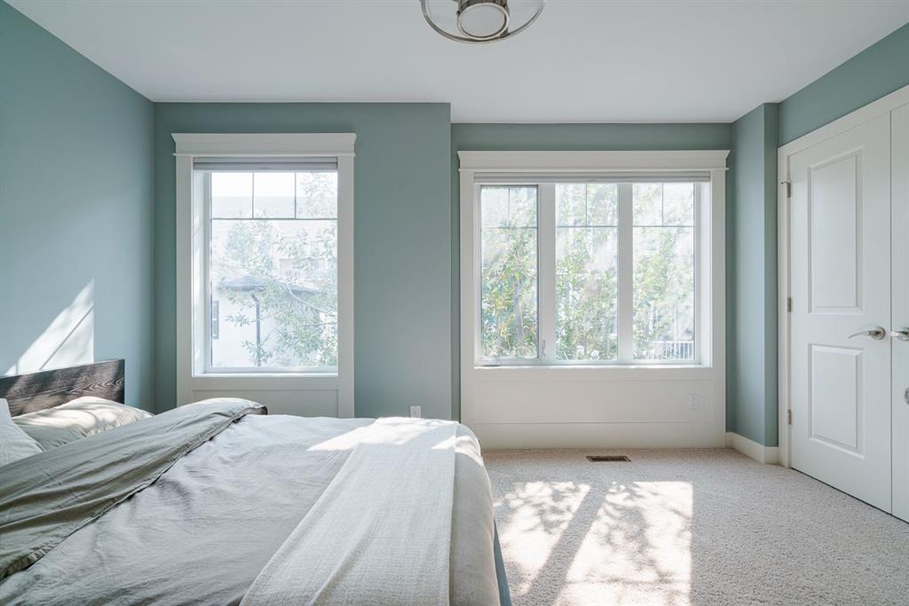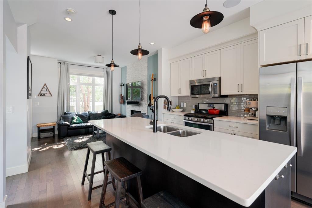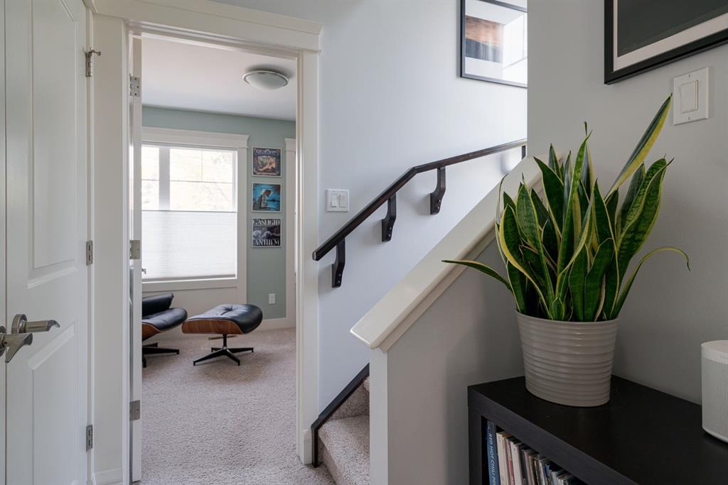 Nestled in the vibrant and sought-after neighborhood of South Calgary in Marda Loop, this stunning 3-level end-unit townhome offers an exceptional blend of modern luxuries and urban convenience. Boasting 3 bedrooms, 3.5 bathrooms, and a spacious open concept layout, this home provides the perfect backdrop for a dynamic urban lifestyle. The open concept main level features hardwood flooring spanning the entire level with large windows on three sides of the home which allows natural light to flow into the home all day. The living room is highlighted by a gas fireplace with stone surround creating a warm and inviting atmosphere for entertaining or relaxation. The dining area seamlessly connects to the timeless kitchen, featuring a large island, quartz countertops, stainless-steel appliances including a gas range and ample cabinet space for all your culinary adventures. A discreetly located powder room and rear balcony completes this level. Ascend to the second level, where you’ll find two generously sized bedrooms each with their own full en suite bathrooms. Each bedroom offers ample closet space and large windows that provide abundant natural light. Whether it’s for a growing family, a home office, or hosting guests, this level offers versatile living spaces to suit your needs. Completing the second level is a laundry area providing added convenience for daily living. The third level is dedicated to the luxurious primary suite, a true sanctuary. This spacious oasis boasts a private 5 pc en suite with a dual sink vanity, relaxing soaking tub, and walk-in shower in addition to the walk-in closet and seating area perfect for a reading space. This townhome features an oversized attached garage (large enough for two small cars) and driveway, providing secure parking and additional storage space for your belongings. Say goodbye to the hassle of street parking and enjoy the convenience of having your vehicle clean and warm year-round. This property is perfect for those looking for a beautiful townhome, ideally located within the community surrounded by the countless amenities of Marda Loop and quick access to the downtown core. **Virtual Tour available upon request**
