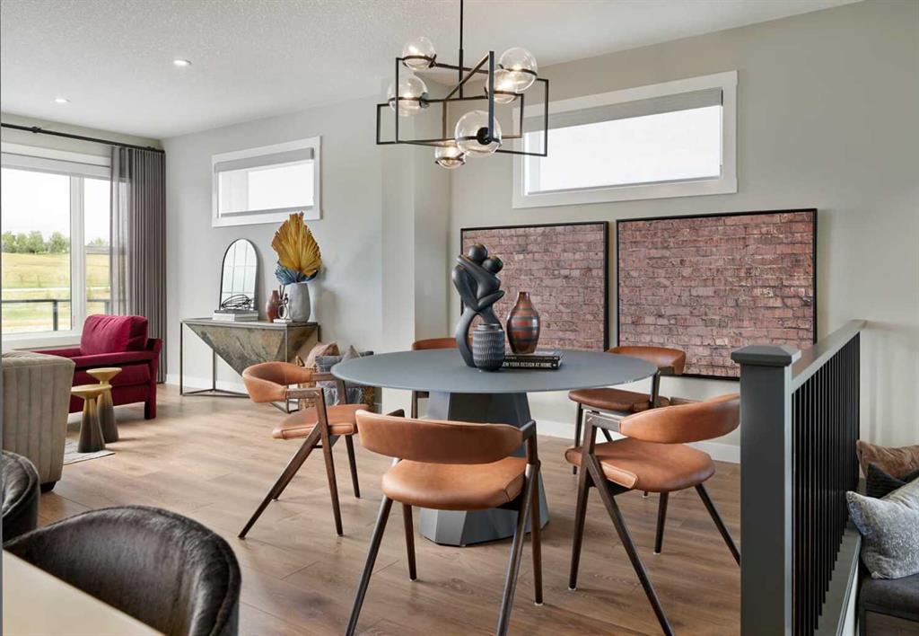 This brand new four-level split, The Hudson, features 3 bedrooms, 2.5 bathrooms and nearly 2,200 square feet of developed living space + a sunshine basement that is undeveloped offering more living space when developed in the future. Built by Brookfield Residential, this home is nearing completion meaning you could move in this April and enjoy your brand new home all spring long! The warm design palette is both timeless and inviting and flows throughout the entire home. The open concept main level has an expansive kitchen with chimney hood fan, built-in cooktop, oven & microwave and an oversized island that makes for the perfect space to entertain. The large living area is complete with a cantilevered central gas fireplace and the dining area is perfect for hosting guests. Up a half set of stairs is the expansive bonus room with a door leading to the private balcony. Up another half set of stairs on the top level of the home you’ll find a primary bedroom complete with walk-in closet and 5 pc ensuite including dual sinks, soaker tub and walk-in shower with a private water closet completing the ensuite. Two more bedrooms, a full bathroom and a large laundry room complete the top level. The sunshine basement has extra large windows which is perfect for capturing additional natural light from the south-facing backyard! This brand new Home includes full builder warranty as well as 10 year Alberta New Home Warranty. *Note: Photos are from a previous show home and are not an exact representation of the property for sale.