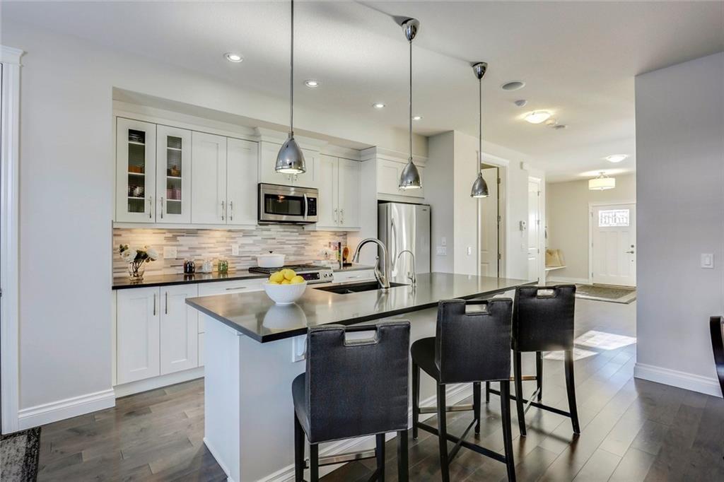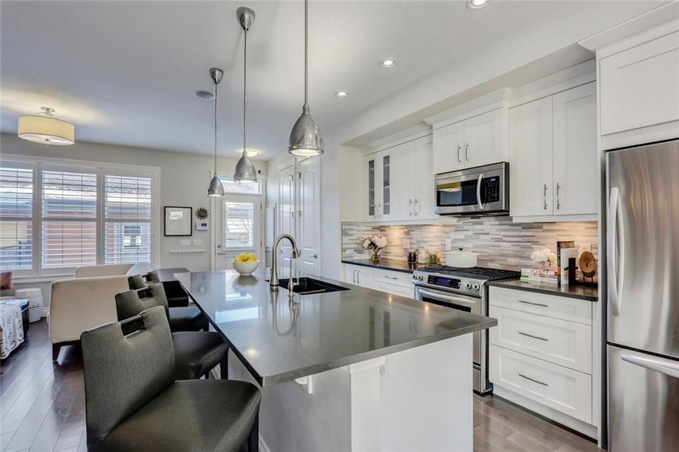 Stunning FULLY DEVELOPED townhouse boasting pride of ownership throughout! A large entryway flows into the main living area that is OPEN TO ABOVE providing natural light all day long. The timeless white kitchen is complete with a GAS RANGE, silgranit sink, garburator and premium appliances. The kitchen opens to the dining area and second living room on the main level, providing the perfect space for entertaining. Upper level includes a ‘flex’ space that is ideal for an additional TV room or home office. The large master retreat’s warm 5 piece ensuite & large walk-in closet are sure to impress. A large second bedroom with a private balcony and a full bathroom complete the upper level. The developed basement is great for visiting guests with a large recreation room, full bathroom, expansive storage room and third bedroom with incredibly large walk-in closet. The private WEST backyard with double garage allow you to enjoy the home all year and the CENTRAL A/C keeps you cool in the summer. A must see!