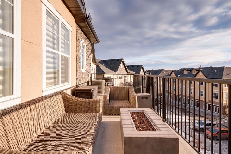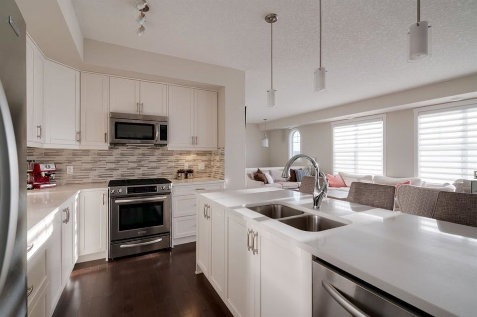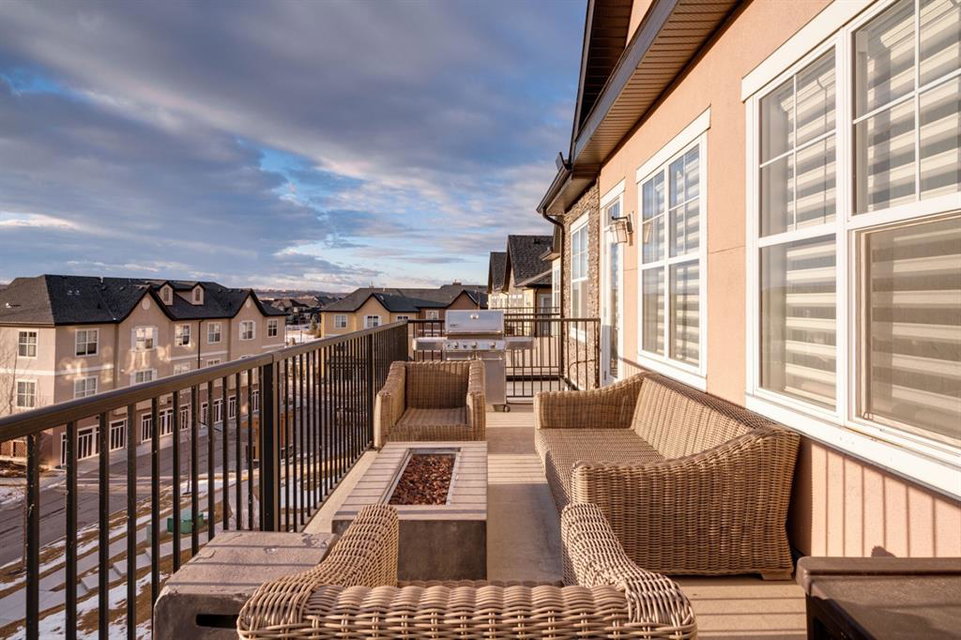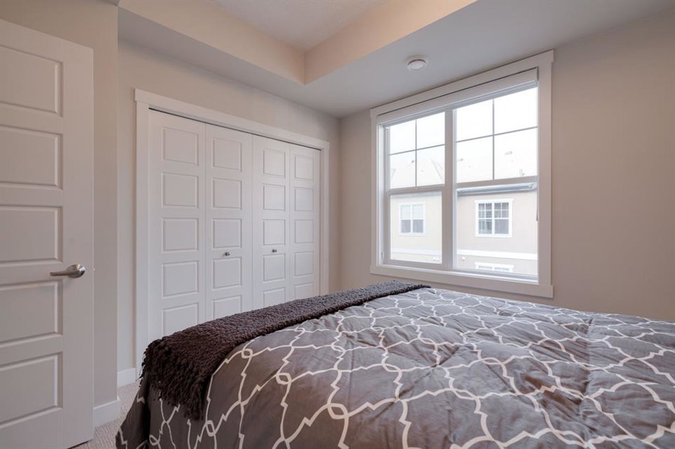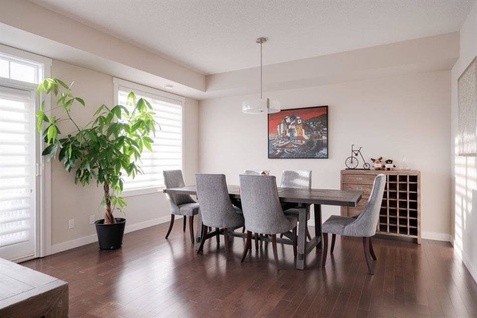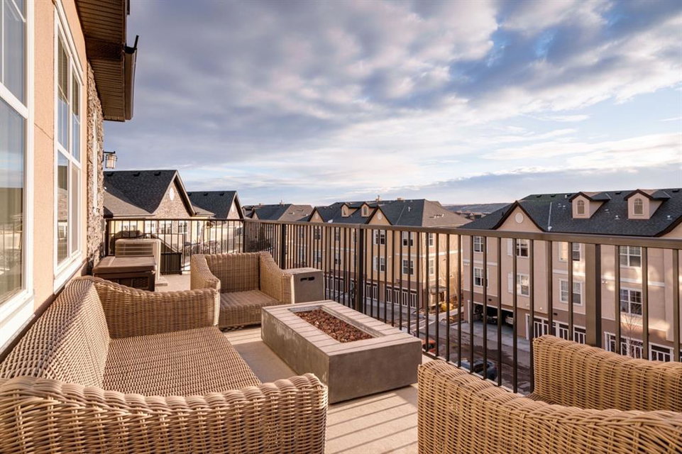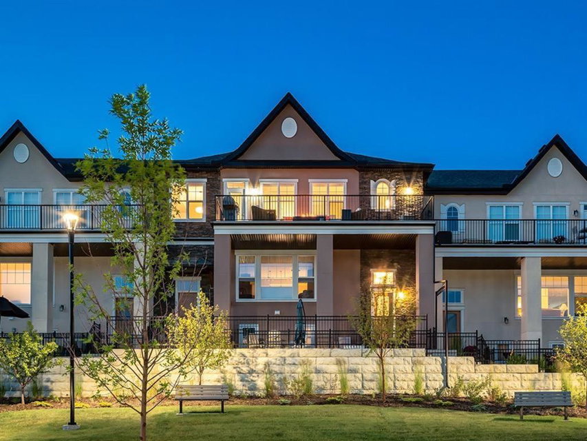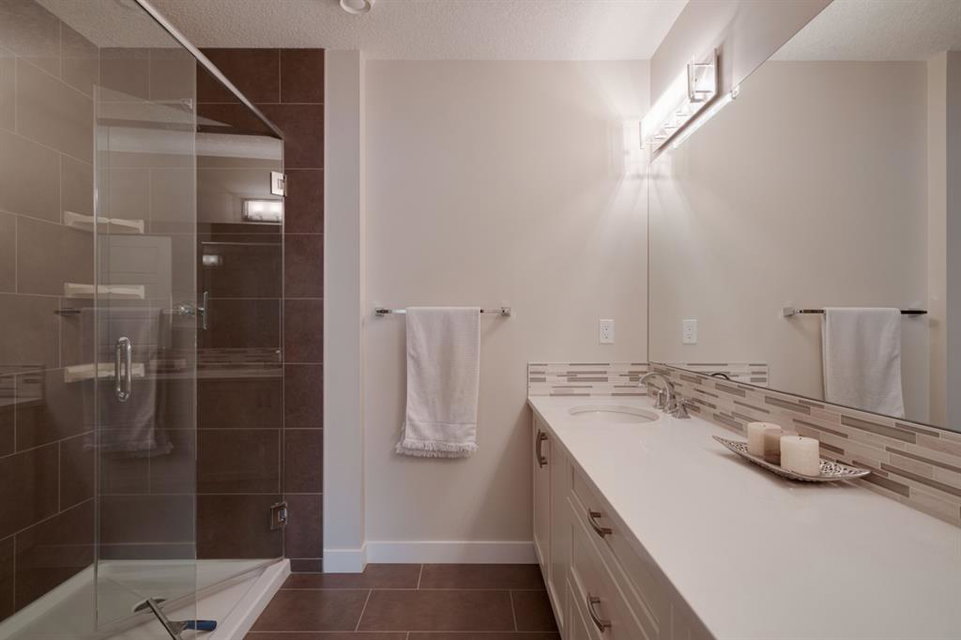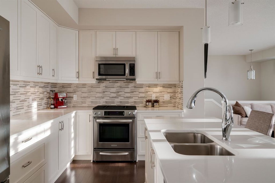 An incredible opportunity to own a former show home in desirable Mosaic Riverstone. Situated just steps away from the Bow River and surrounded by the beauty of Fish Creek Park, this property strikes the perfect balance of seclusion and convenience. This well maintained townhouse features single-level living offering 3 bedrooms, 2 bathrooms, ample storage and an open concept design. Natural light flows through a wall of south west facing windows and floods the home with sunshine. The timeless white kitchen is complete with under-mount lighting, mosaic tile backsplash, quartz countertops and a suite of stainless steel appliances including a gas range. The kitchen overlooks the large dining area with ample seating for family dinners and living room with electric fire place making it the perfect space for entertaining. The large primary bedroom is complete with a walk-in closet, 4 piece bathroom with a full height tile shower and dual sinks. Two additional bedrooms allow ample space for a guest room and home office while the full laundry room provides added convenience for daily living. The lower level of the property provides endless possibilities for additional storage, a home gym or studio space. A double garage with epoxy flooring provides additional storage for bikes and provides secured parking for your vehicle all year. The show homes always include the upgrades that everyone wants like upgraded lighting, flooring, custom window treatments (Hunter Douglas) and more. Enjoy the sunshine and the views on your private WEST facing 29’x8′ balcony all summer long. If it gets too warm, step inside and enjoy the central air-conditioning (an absolute MUST in these units). With quick access to amenities and only minutes from Fish Creek Park, this home is the perfect fit for those looking to live in beautiful Riverstone surrounded by nature.