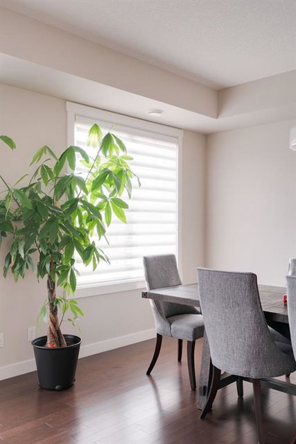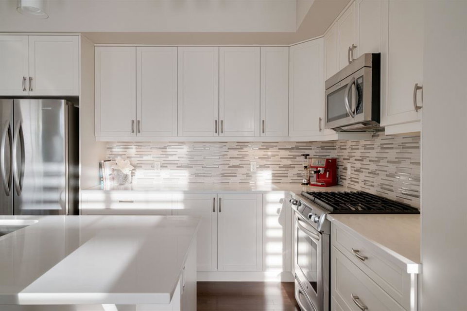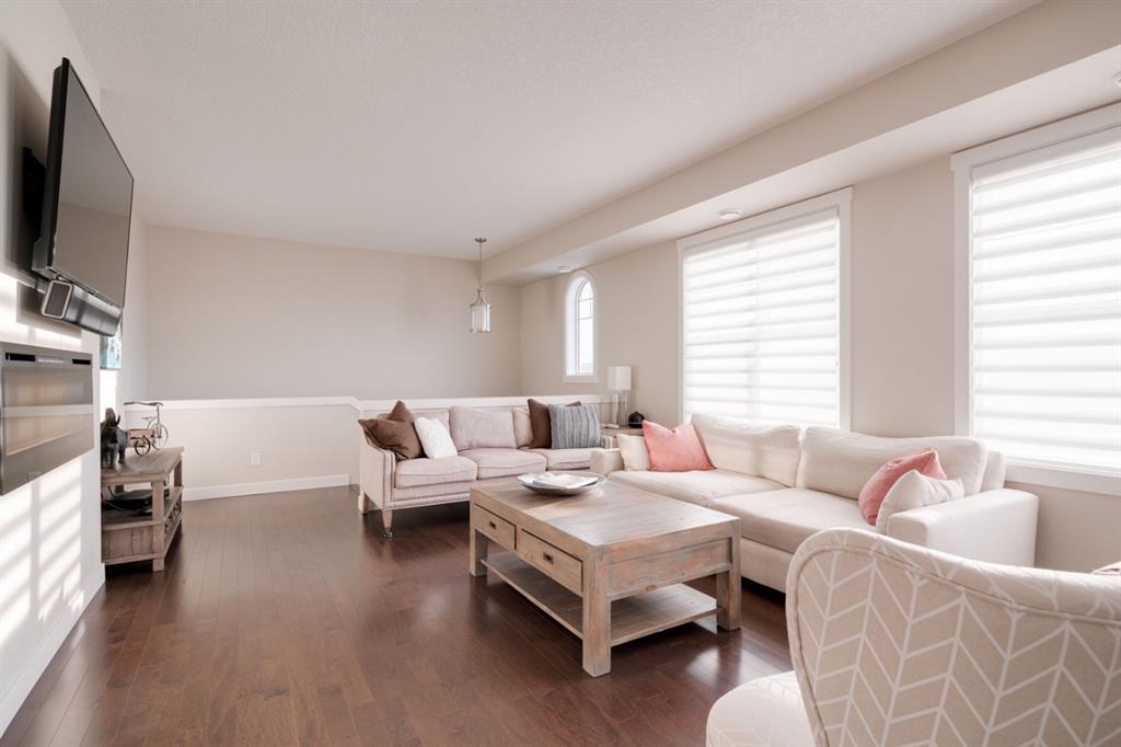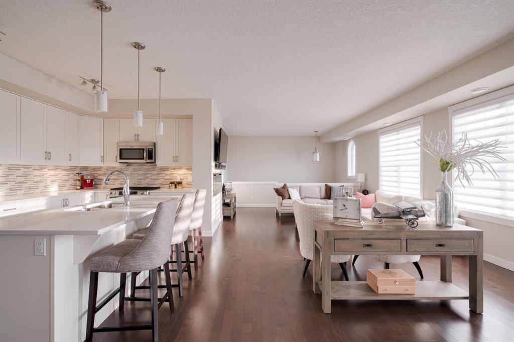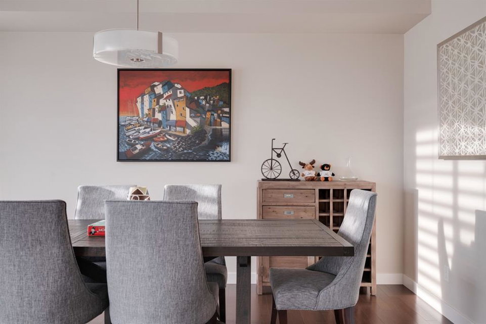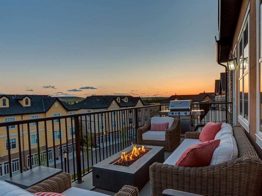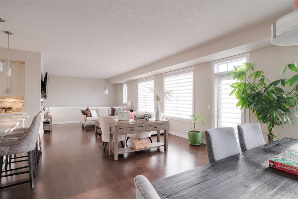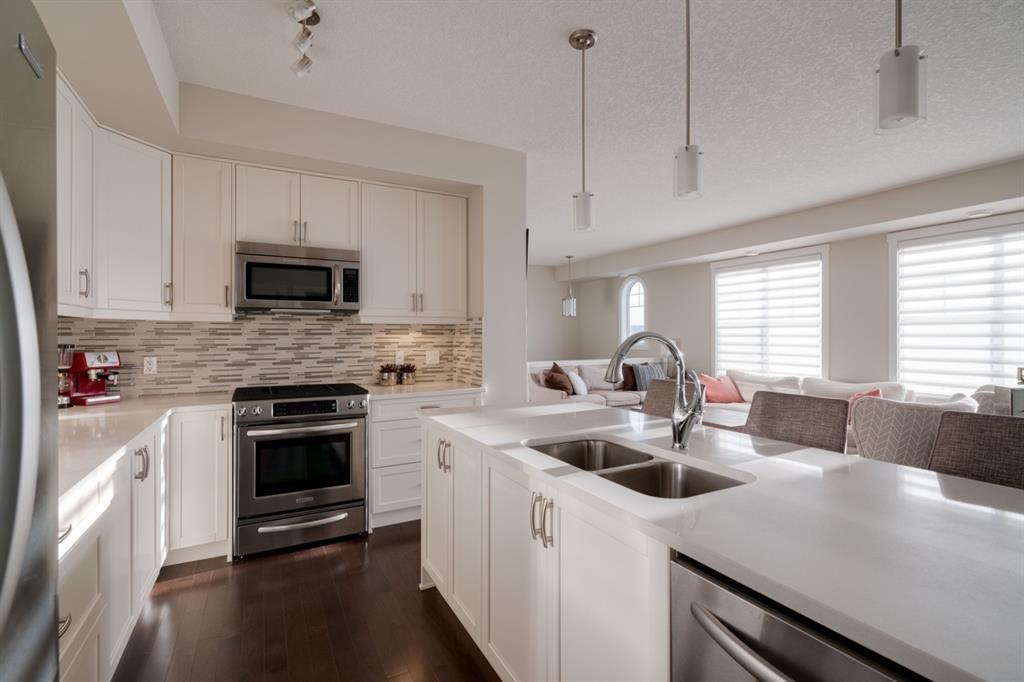 An incredible opportunity to own a former show home in desirable Mosaic Riverstone. Situated just steps away from the Bow River and surrounded by the beauty of Fish Creek Park, this property strikes the perfect balance of seclusion and convenience. This well maintained townhouse features single-level living offering 3 bedrooms, 2 bathrooms, ample storage and an open concept design. Natural light flows through a wall of south west facing windows and floods the home with sunshine. The timeless white kitchen is complete with under-mount lighting, mosaic tile backsplash, quartz countertops and a suite of stainless steel appliances including a gas range. The kitchen overlooks the large dining area with ample seating for family dinners and living room with electric fire place making it the perfect space for entertaining. The large primary bedroom is complete with a walk-in closet, 4 piece bathroom with a full height tile shower and dual sinks. Two additional bedrooms allow ample space for a guest room and home office while the full laundry room provides added convenience for daily living. The lower level of the property provides endless possibilities for additional storage, a home gym or studio space. A double garage with epoxy flooring provides additional storage for bikes and provides secured parking for your vehicle all year. The show homes always include the upgrades that everyone wants like upgraded lighting, flooring, custom window treatments (Hunter Douglas) and more. Enjoy the sunshine and the views on your private WEST facing 29’x8′ balcony all summer long. If it gets too warm, step inside and enjoy the central air-conditioning (an absolute MUST in these units). With quick access to amenities and only minutes from Fish Creek Park, this home is the perfect fit for those looking to live in beautiful Riverstone surrounded by nature.
