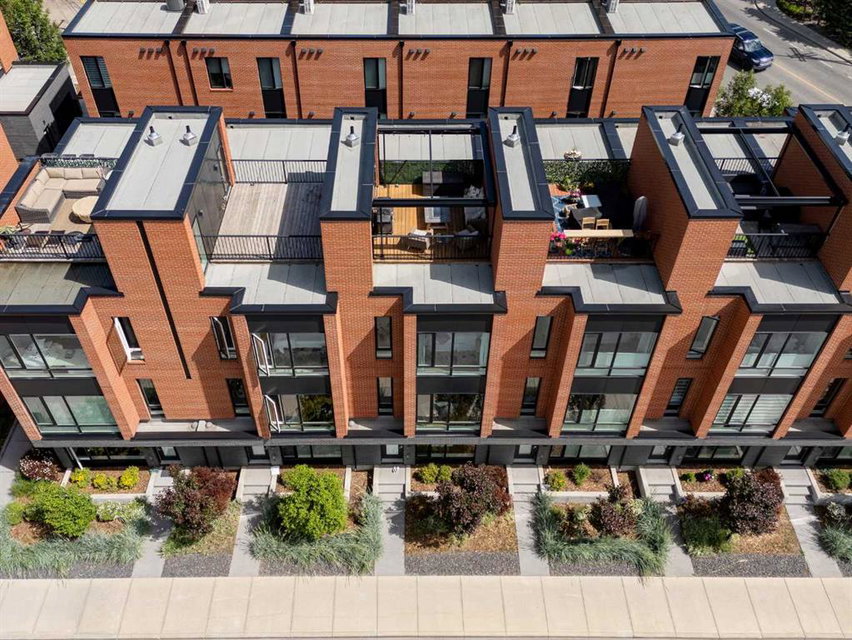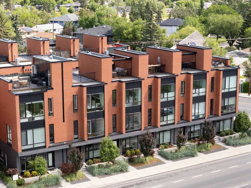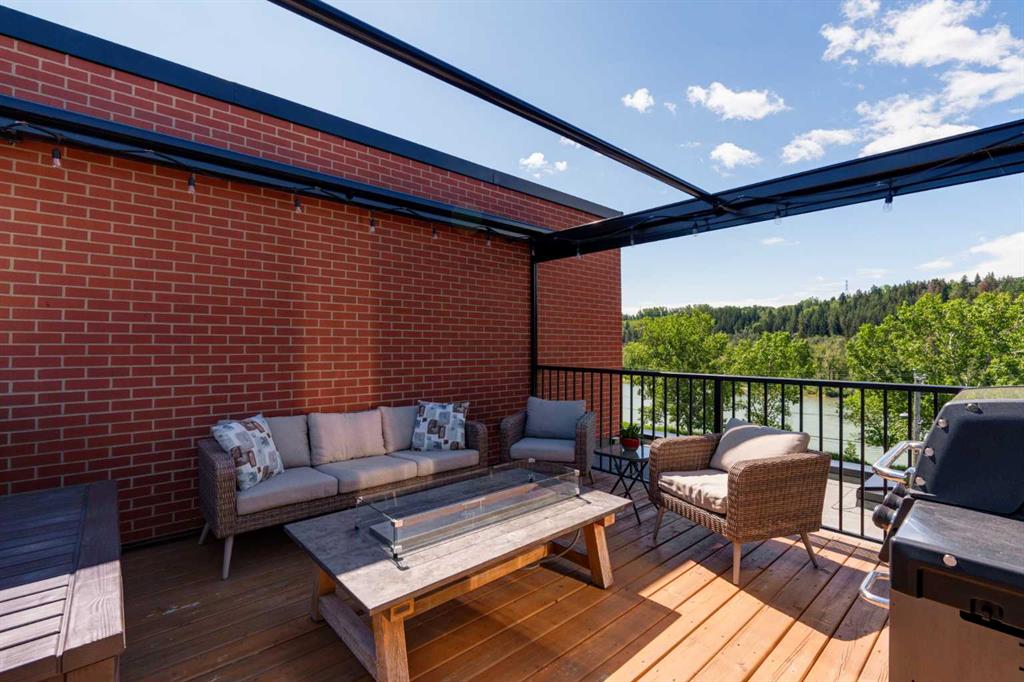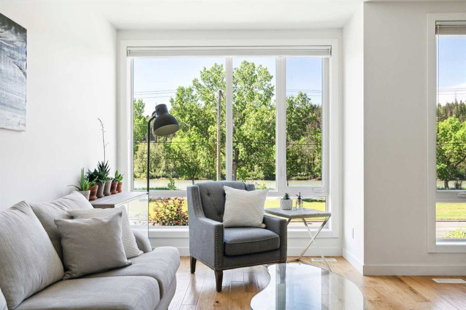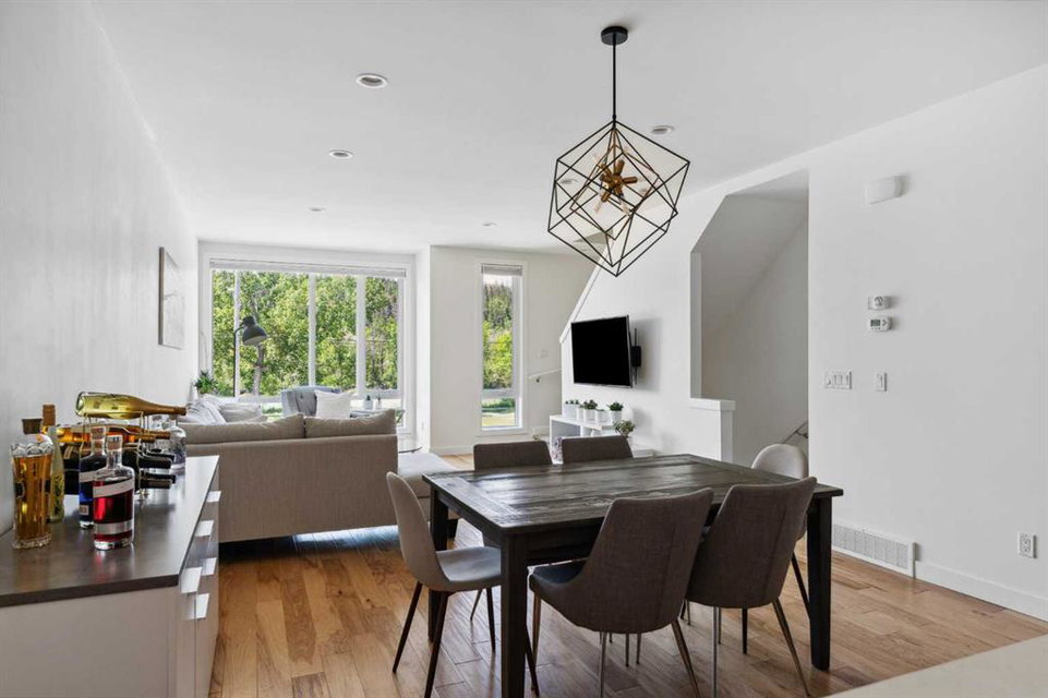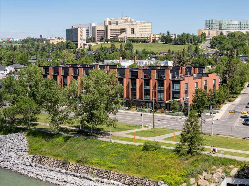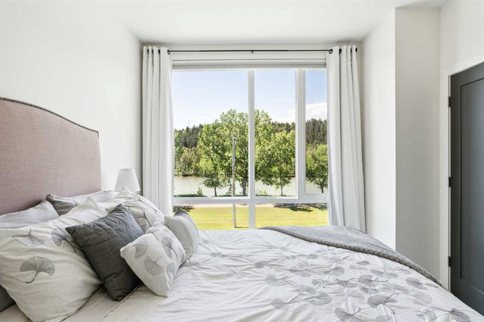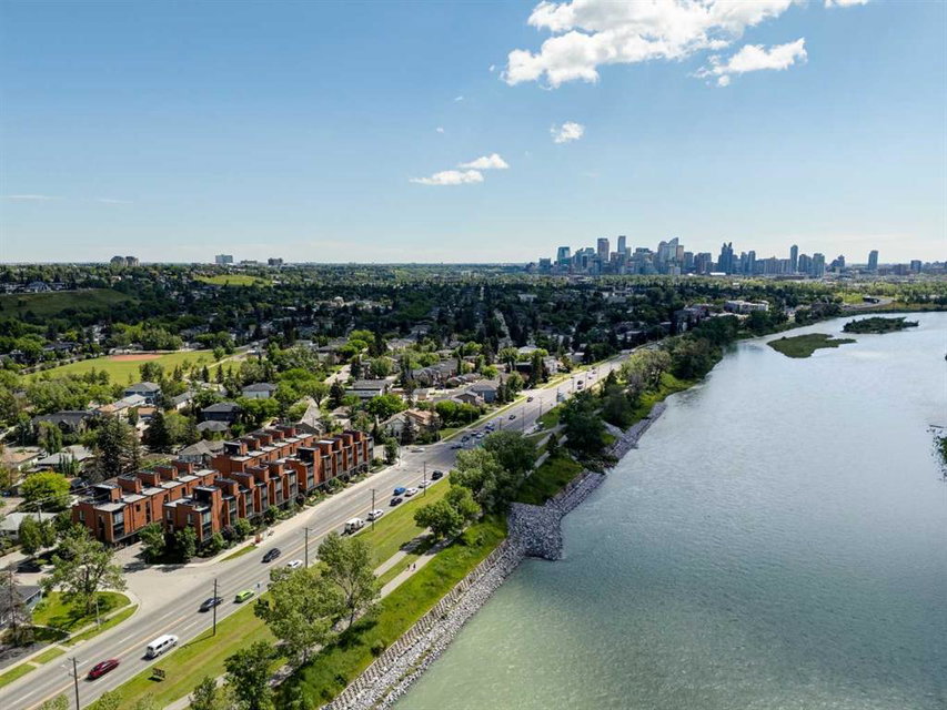 OPEN HOUSE SUNDAY JULY 7TH FROM 1:00-3:00! A unique opportunity for luxurious living on the Bow River. The Henry, located in Parkdale, is one of the newest premier inner-city townhome developments. These stunning brick townhomes combine timeless elegance with everyday comforts and are just as picturesque as the river they overlook. Enjoy year-round views from both inside and outside because this unit is complete with its own private rooftop patio with a 3 season screened-in room – offering optimal sunshine and privacy when needed. As you enter the home on the main level, there is a flex space off of the private double attached garage. This space is perfect for a home office, den or workout space. The main level has a completely open design that allows for the natural light to pour through all day long while capturing river views from every angle. The kitchen is complete with floor to ceiling cabinetry, a full pantry, oversized quartz island, and a suite of stainless steel appliances including a chimney hood fan, built-in microwave and beverage centre. The central dining area is an extension of the kitchen, ensuring ample space for entertaining groups of any size. The expansive living space was intelligently designed to be positioned at the front of the home and is complete with oversized windows that span nearly floor to ceiling – allowing you to capture natural light and river/pathway views all day long. The main level is complete with a 2 pc powder room. The primary bedroom overlooks the river and is complete with a large walk-in closet with custom cabinetry and a full 4 pc ensuite with floating vanity, dual sinks and a walk-in shower. The large secondary bedroom has its own walk-in closet and a 4 pc ensuite with soaker tub. Whether entertaining, working from home or just enjoying time at home – the rooftop patio provides endless options. With optimal SW exposure, the patio is the perfect space to capture sunshine while enjoying breathtaking river views all year long. During the warmer summer months, the central A/C will keep the property cool all season long. This stunning townhouse features 2 bedrooms, 2.5 bathrooms, a den, rooftop patio and over 1,640 square feet of living space in addition to the double attached garage which is perfect for both vehicles and additional storage. The incredible location is the epitome of urban living with quick access to hospitals and University District while being just minutes to downtown and having easy access to the mountains. These modern brownstones rarely become available – book your private viewing today.