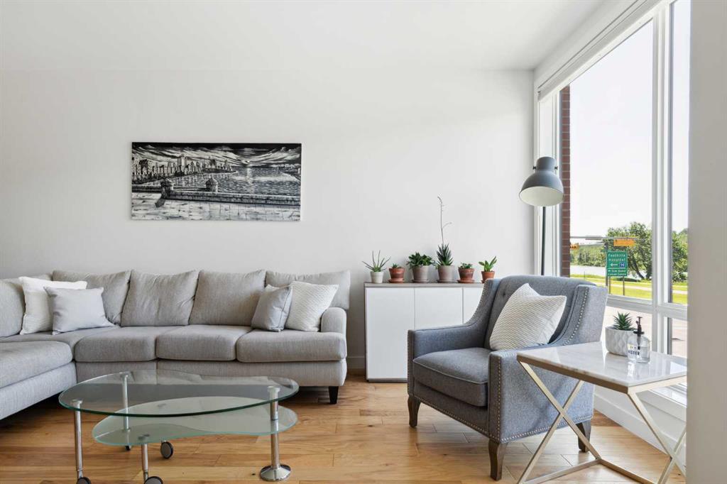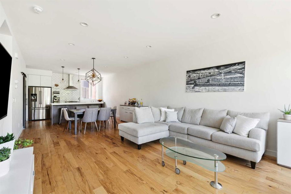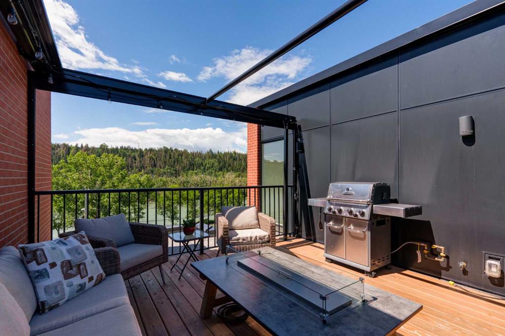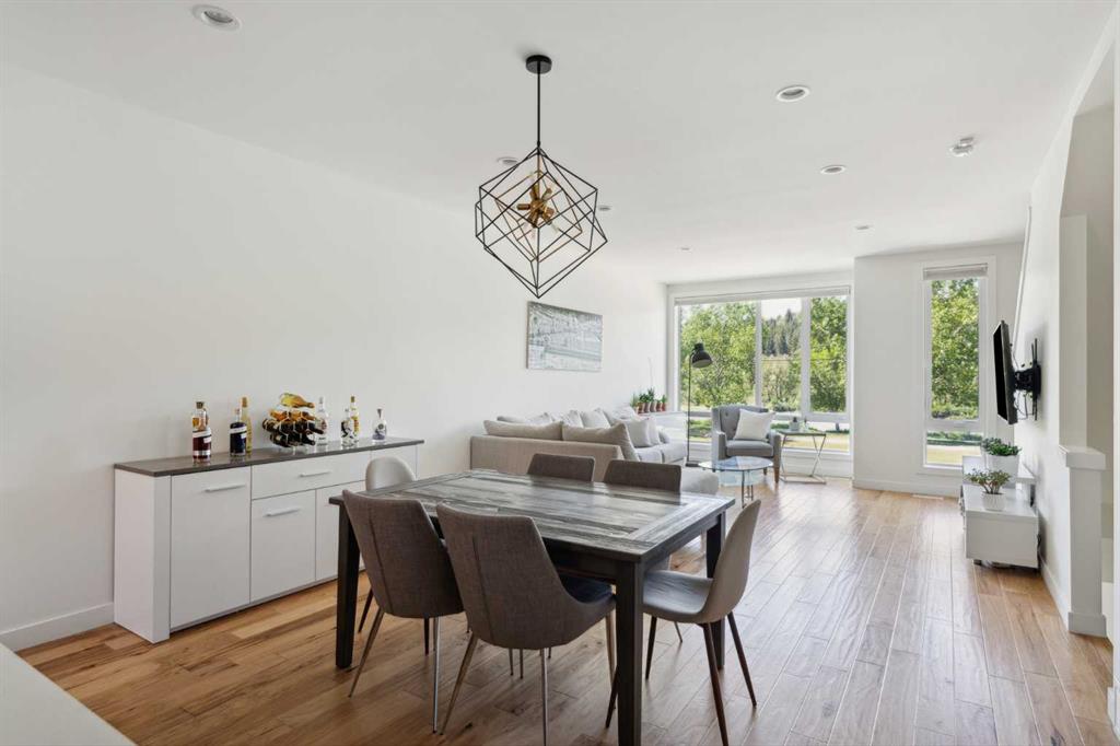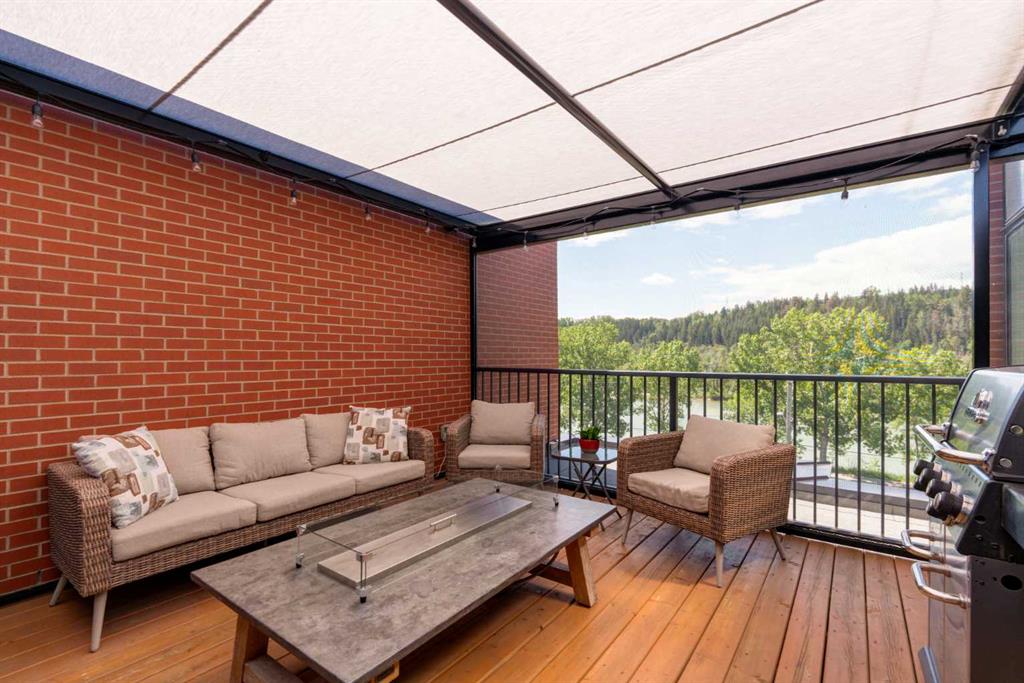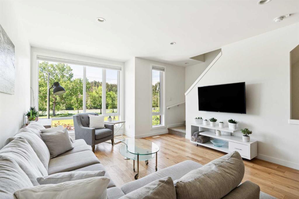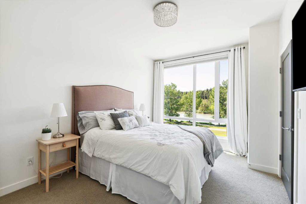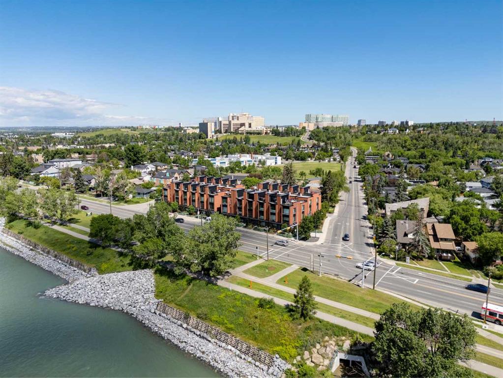 OPEN HOUSE SUNDAY JULY 7TH FROM 1:00-3:00! A unique opportunity for luxurious living on the Bow River. The Henry, located in Parkdale, is one of the newest premier inner-city townhome developments. These stunning brick townhomes combine timeless elegance with everyday comforts and are just as picturesque as the river they overlook. Enjoy year-round views from both inside and outside because this unit is complete with its own private rooftop patio with a 3 season screened-in room – offering optimal sunshine and privacy when needed. As you enter the home on the main level, there is a flex space off of the private double attached garage. This space is perfect for a home office, den or workout space. The main level has a completely open design that allows for the natural light to pour through all day long while capturing river views from every angle. The kitchen is complete with floor to ceiling cabinetry, a full pantry, oversized quartz island, and a suite of stainless steel appliances including a chimney hood fan, built-in microwave and beverage centre. The central dining area is an extension of the kitchen, ensuring ample space for entertaining groups of any size. The expansive living space was intelligently designed to be positioned at the front of the home and is complete with oversized windows that span nearly floor to ceiling – allowing you to capture natural light and river/pathway views all day long. The main level is complete with a 2 pc powder room. The primary bedroom overlooks the river and is complete with a large walk-in closet with custom cabinetry and a full 4 pc ensuite with floating vanity, dual sinks and a walk-in shower. The large secondary bedroom has its own walk-in closet and a 4 pc ensuite with soaker tub. Whether entertaining, working from home or just enjoying time at home – the rooftop patio provides endless options. With optimal SW exposure, the patio is the perfect space to capture sunshine while enjoying breathtaking river views all year long. During the warmer summer months, the central A/C will keep the property cool all season long. This stunning townhouse features 2 bedrooms, 2.5 bathrooms, a den, rooftop patio and over 1,640 square feet of living space in addition to the double attached garage which is perfect for both vehicles and additional storage. The incredible location is the epitome of urban living with quick access to hospitals and University District while being just minutes to downtown and having easy access to the mountains. These modern brownstones rarely become available – book your private viewing today.