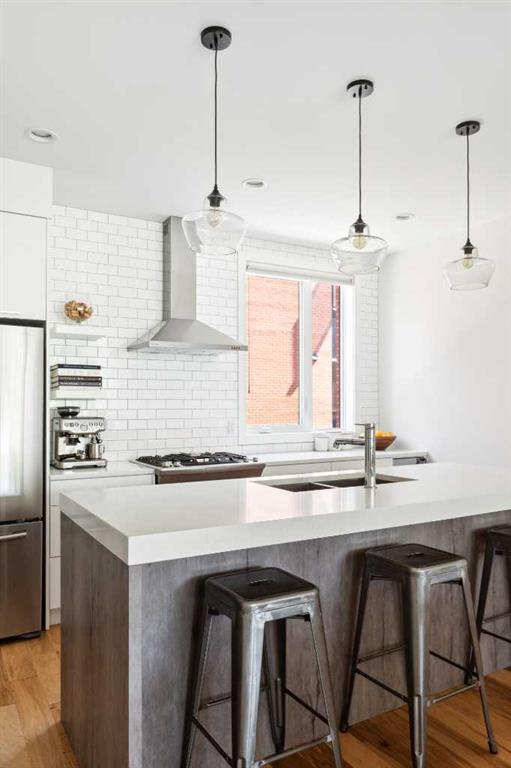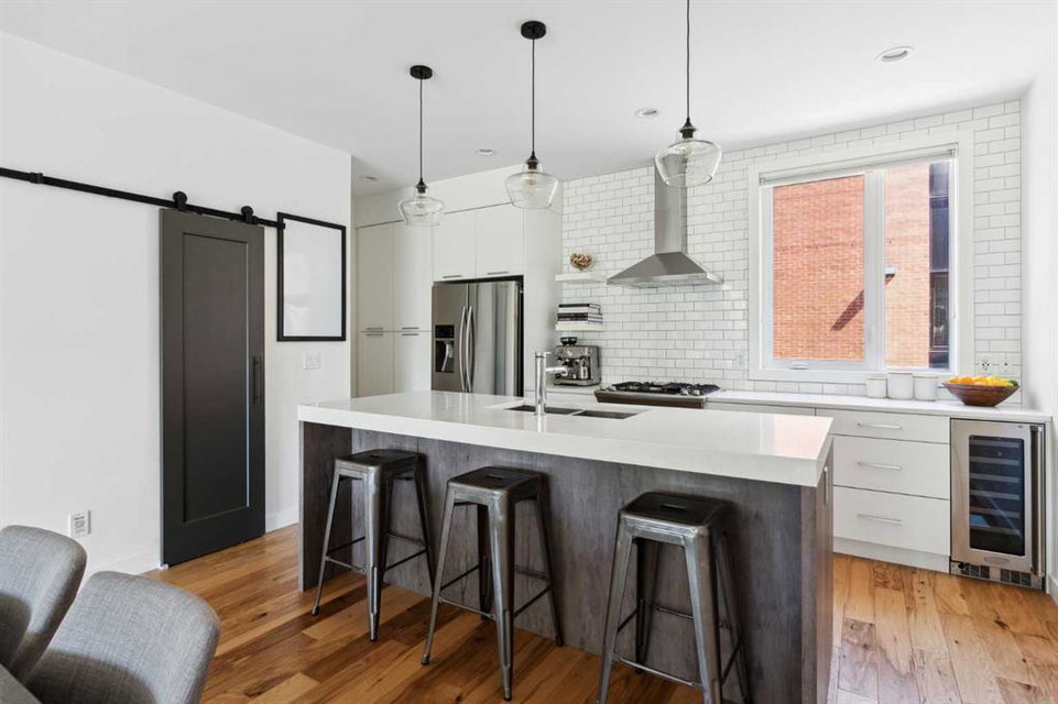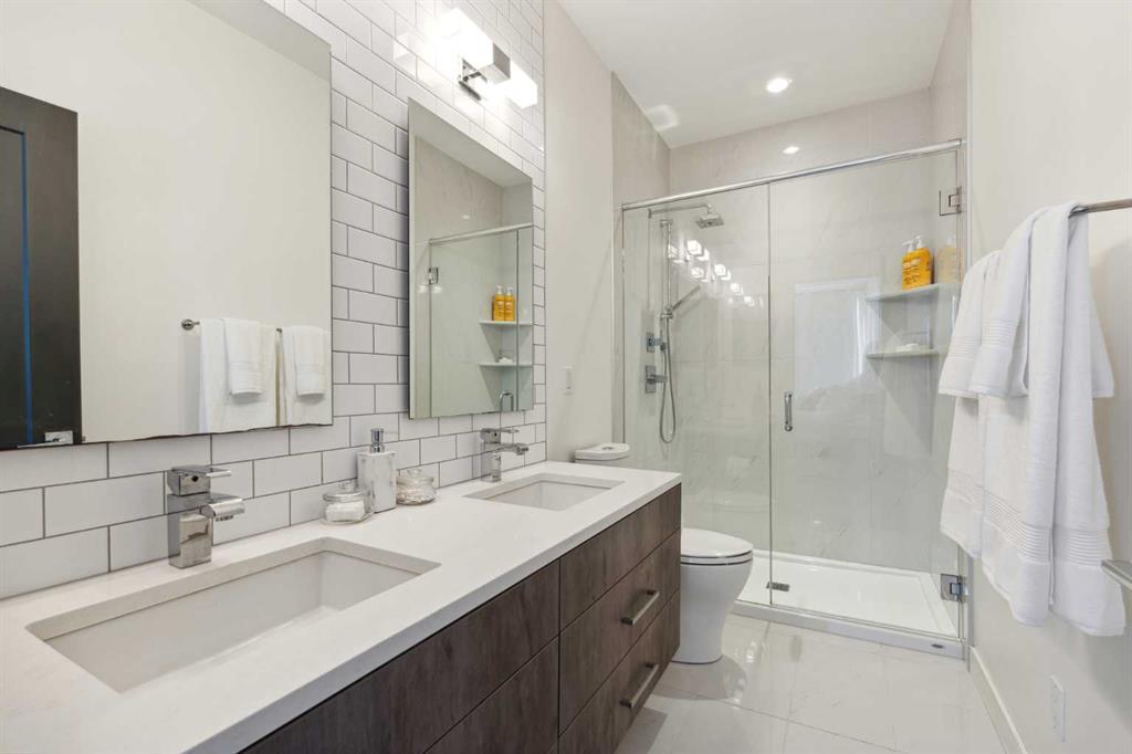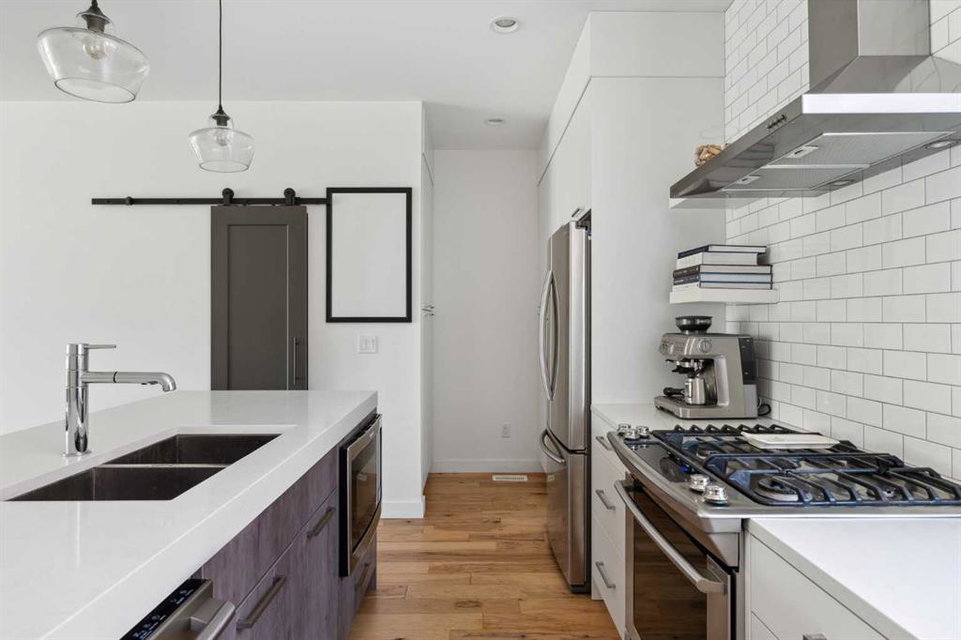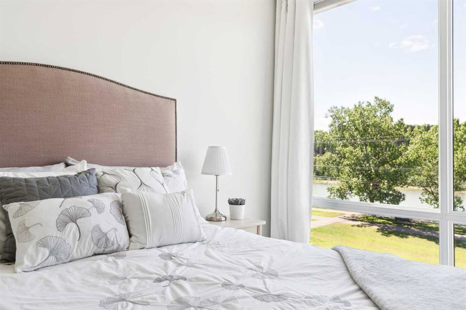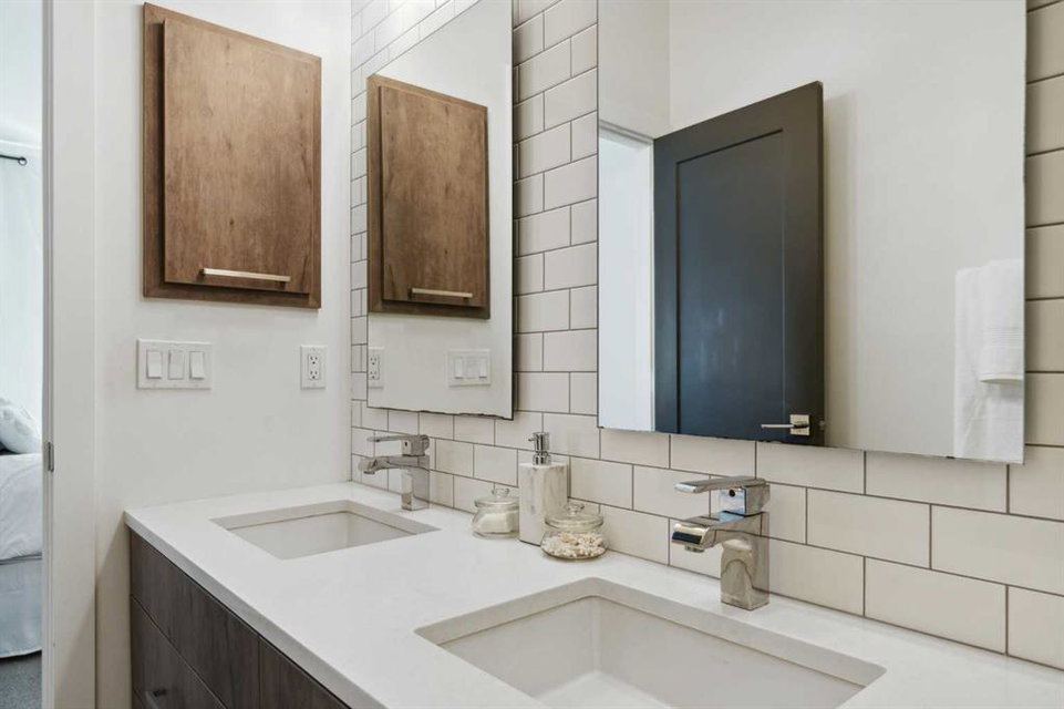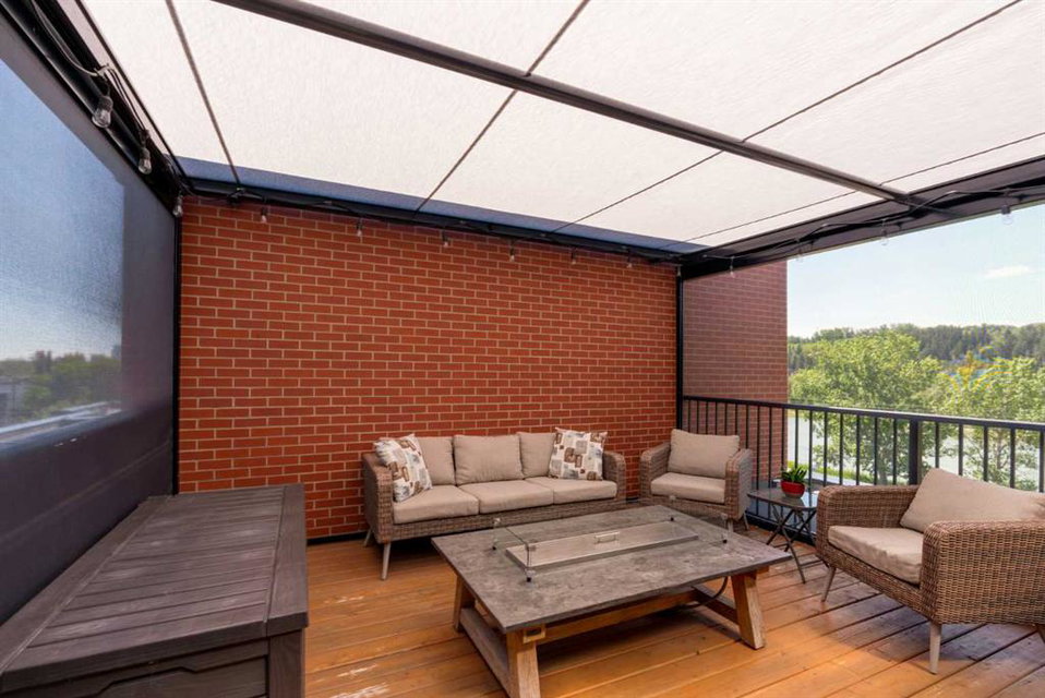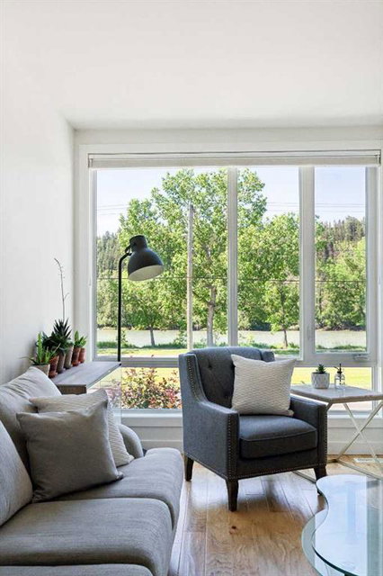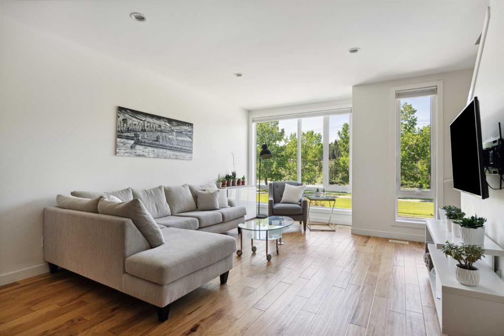 OPEN HOUSE SUNDAY JULY 7TH FROM 1:00-3:00! A unique opportunity for luxurious living on the Bow River. The Henry, located in Parkdale, is one of the newest premier inner-city townhome developments. These stunning brick townhomes combine timeless elegance with everyday comforts and are just as picturesque as the river they overlook. Enjoy year-round views from both inside and outside because this unit is complete with its own private rooftop patio with a 3 season screened-in room – offering optimal sunshine and privacy when needed. As you enter the home on the main level, there is a flex space off of the private double attached garage. This space is perfect for a home office, den or workout space. The main level has a completely open design that allows for the natural light to pour through all day long while capturing river views from every angle. The kitchen is complete with floor to ceiling cabinetry, a full pantry, oversized quartz island, and a suite of stainless steel appliances including a chimney hood fan, built-in microwave and beverage centre. The central dining area is an extension of the kitchen, ensuring ample space for entertaining groups of any size. The expansive living space was intelligently designed to be positioned at the front of the home and is complete with oversized windows that span nearly floor to ceiling – allowing you to capture natural light and river/pathway views all day long. The main level is complete with a 2 pc powder room. The primary bedroom overlooks the river and is complete with a large walk-in closet with custom cabinetry and a full 4 pc ensuite with floating vanity, dual sinks and a walk-in shower. The large secondary bedroom has its own walk-in closet and a 4 pc ensuite with soaker tub. Whether entertaining, working from home or just enjoying time at home – the rooftop patio provides endless options. With optimal SW exposure, the patio is the perfect space to capture sunshine while enjoying breathtaking river views all year long. During the warmer summer months, the central A/C will keep the property cool all season long. This stunning townhouse features 2 bedrooms, 2.5 bathrooms, a den, rooftop patio and over 1,640 square feet of living space in addition to the double attached garage which is perfect for both vehicles and additional storage. The incredible location is the epitome of urban living with quick access to hospitals and University District while being just minutes to downtown and having easy access to the mountains. These modern brownstones rarely become available – book your private viewing today.