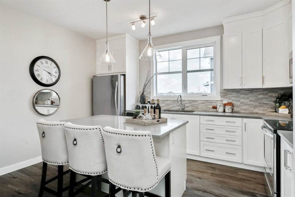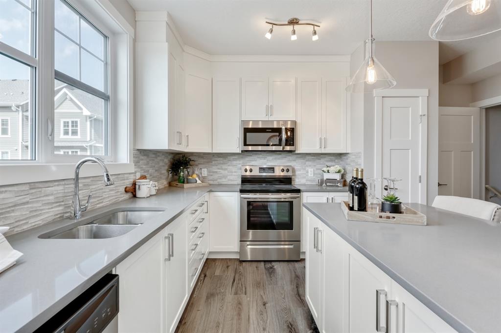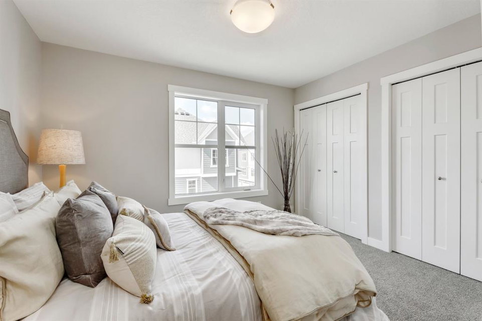 Personalize your home and move in late 2022! 2 Car Attached Garage, Quartz Countertops, Stainless Steel Appliances, Washer/Dryer, Air Conditioning, Gas Line to BBQ! This home is perfect for a small family or someone looking for a roomate, it has it all without the big price tag. On the main floor, the living room opens up to the dining room & large kitchen featuring a pantry and an island in the centre. Overall, a great space for entertaining! On the upper level, both master bedrooms have large closets & an ensuite in addition to the upper floor laundry. Located in the desirable community of Riverstone, Cranston, this home allows you to enjoy maintenance-free living while having Fish Creek Park right outside. Additionally, it includes legal fees, 2 year builder warranty, & comes with a 5 & 10 year Alberta New Home Warranty. *Please note, photos are from a showhome model and are not an exact representation of the property for sale.