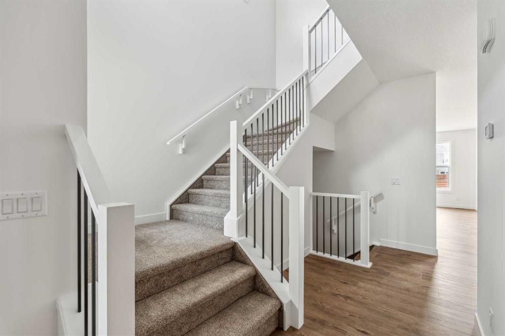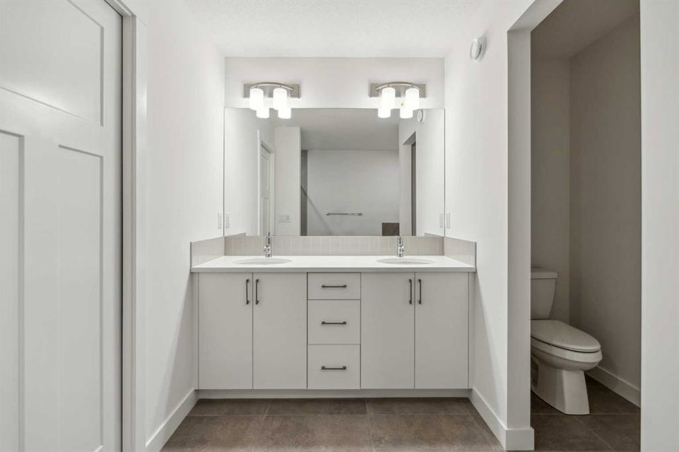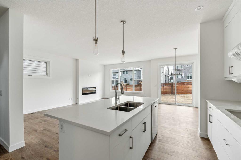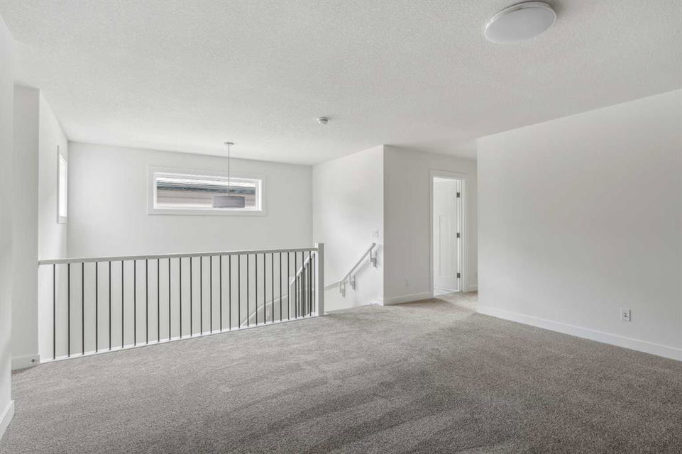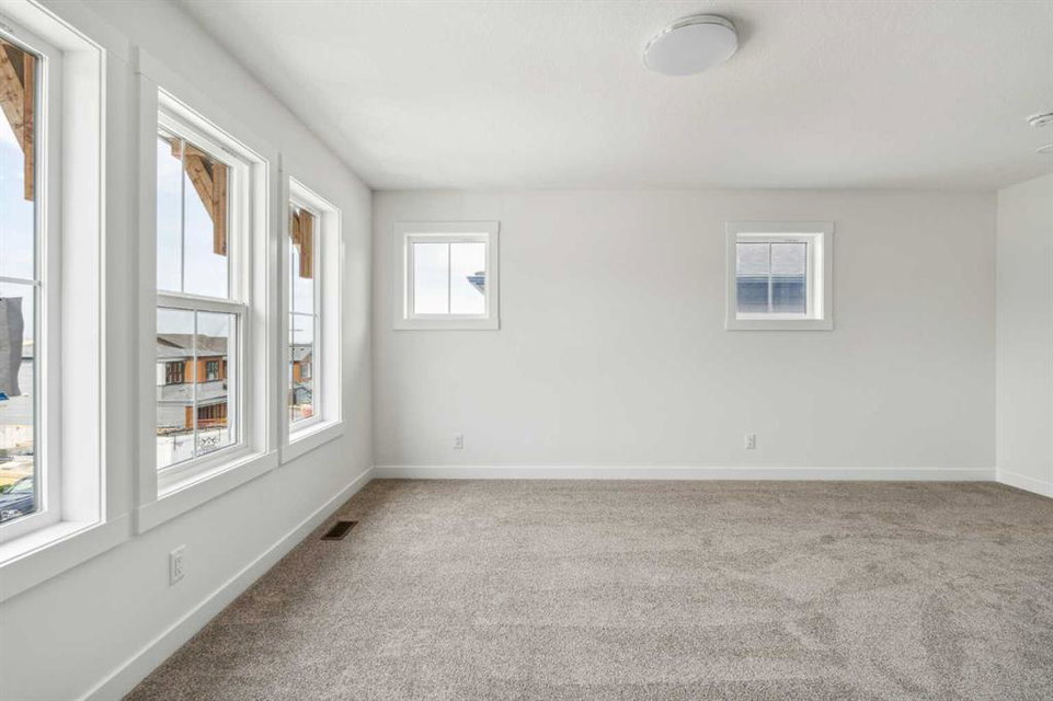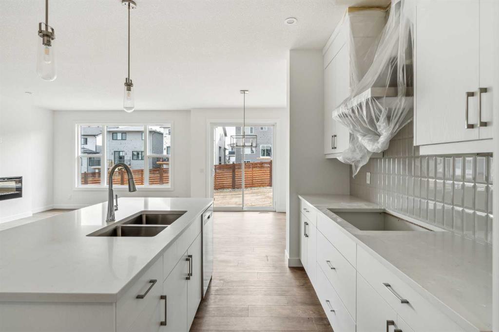 Ready for Immediate Possession. This beautiful brand new home built by Brookfield Residential features over 2,200 square feet of living space over two levels + an unspoiled basement that awaits your imagination! The Purcell 24 model features an open concept main living space, 3 bedrooms, 2.5 bathrooms, a bonus room, upper floor laundry and a double attached garage! The main level of the home has been timelessly finished with white cabinetry complete with subway tile backsplash, white quartz countertops, a suite of stainless steel appliances including a built-in oven & microwave, cooktop and chimney hood fan. The kitchen features a large central island and it overlooks both the main level living and dining spaces. The kitchen has a walkthrough pantry to the mud room off of the attached garage and a 2 pc bathroom completes the main level. Iron spindle railing leads to the second level, creating an open and bright living space all year long. The second level has a central bonus room that separates the primary suite from the secondary bedrooms. The primary suite is complete with a large walk-in closet and 5 pc ensuite complete with a soaker tub, walk-in shower, dual vanities and a private water closet. Two large secondary bedrooms, a full bathroom and a laundry room complete the upper level. This property is fully move-in ready in the new community of Livingston! Alberta New Home Warranty as well as builder’s warranty allow you to purchase this brand new home with peace of mind.