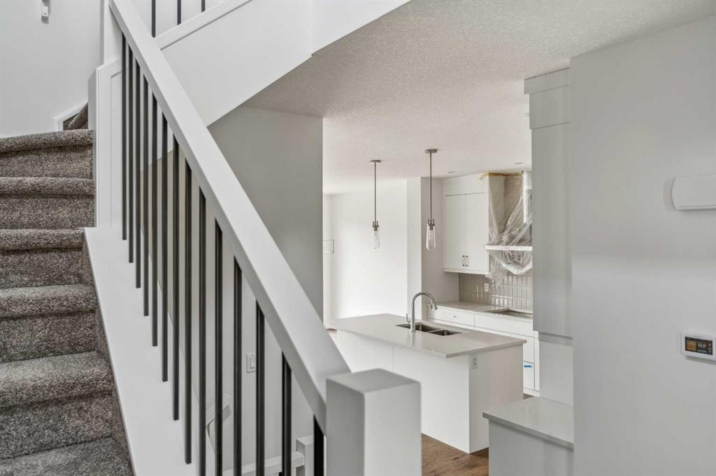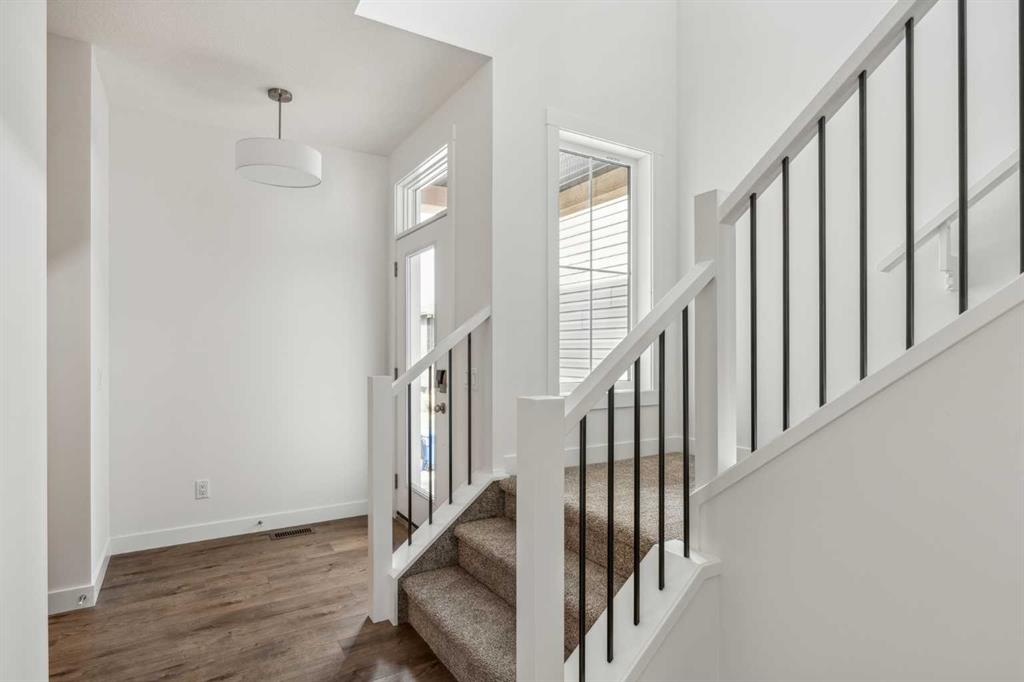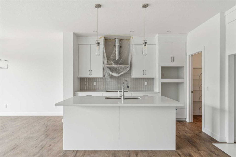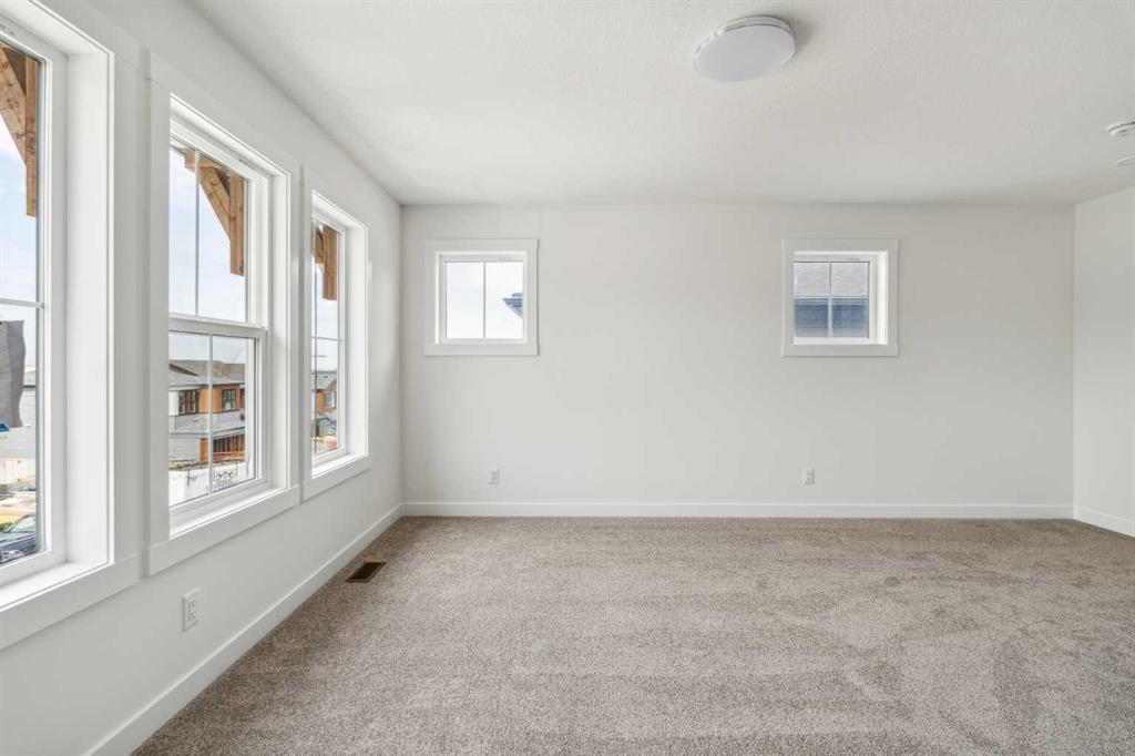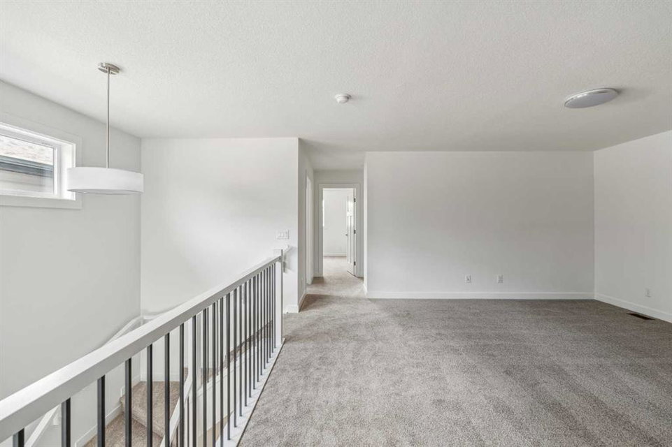 This beautiful brand new home built by Brookfield Residential features over 2,200 square feet of living space over two levels + an unspoiled basement that awaits your imagination! The Purcell 24 model features an open concept main living space, 3 bedrooms, 2.5 bathrooms, a bonus room, upper floor laundry and a double attached garage! The main level of the home has been timelessly finished with white cabinetry complete with subway tile backsplash, white quartz countertops, a suite of stainless steel appliances including a built-in oven & microwave, cooktop and chimney hood fan. The kitchen features a large central island and it overlooks both the main level living and dining spaces. The kitchen has a walkthrough pantry to the mud room off of the attached garage and a 2 pc bathroom completes the main level. Iron spindle railing leads to the second level, creating an open and bright living space all year long. The second level has a central bonus room that separates the primary suite from the secondary bedrooms. The primary suite is complete with a large walk-in closet and 5 pc ensuite complete with a soaker tub, walk-in shower, dual vanities and a private water closet. Two large secondary bedrooms, a full bathroom and a laundry room complete the upper level. This property is fully move-in ready in the new community of Livingston! Alberta New Home Warranty as well as builder’s warranty allow you to purchase this brand new home with peace of mind.