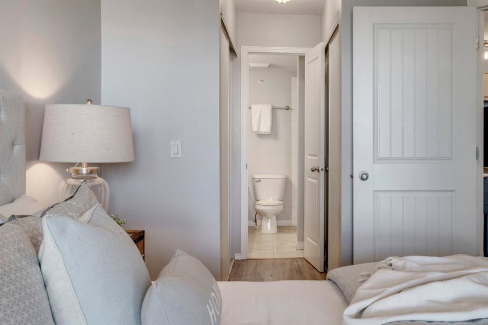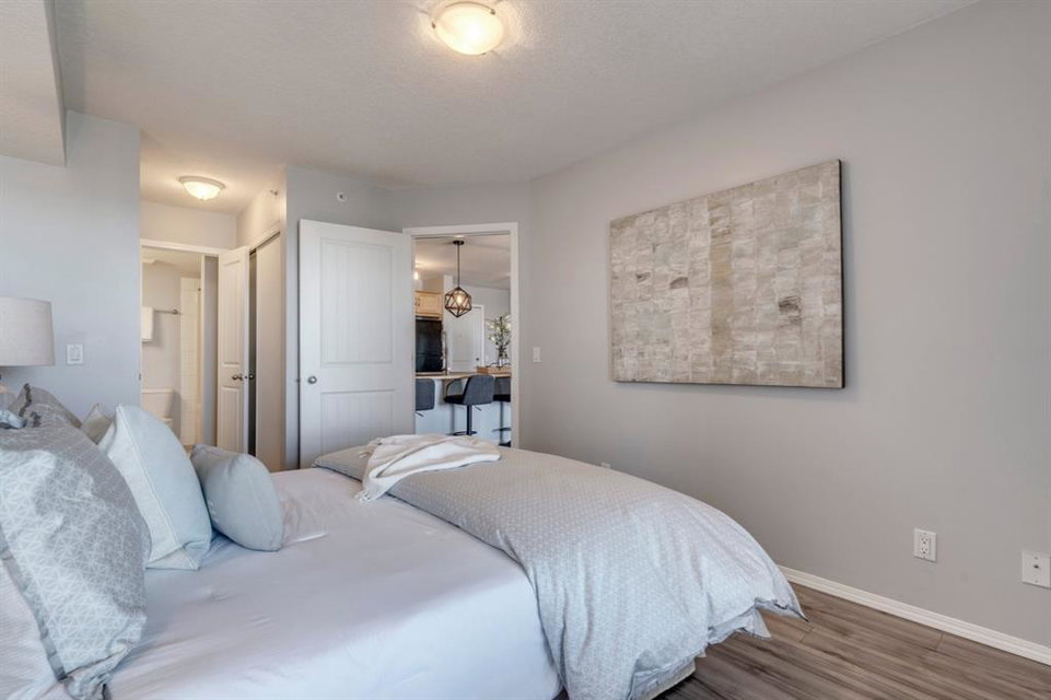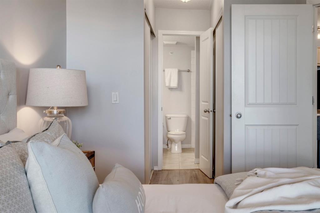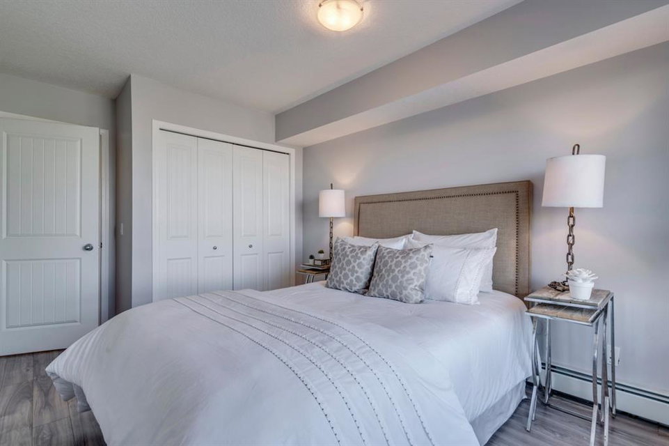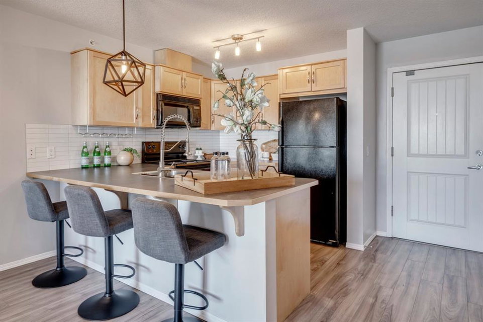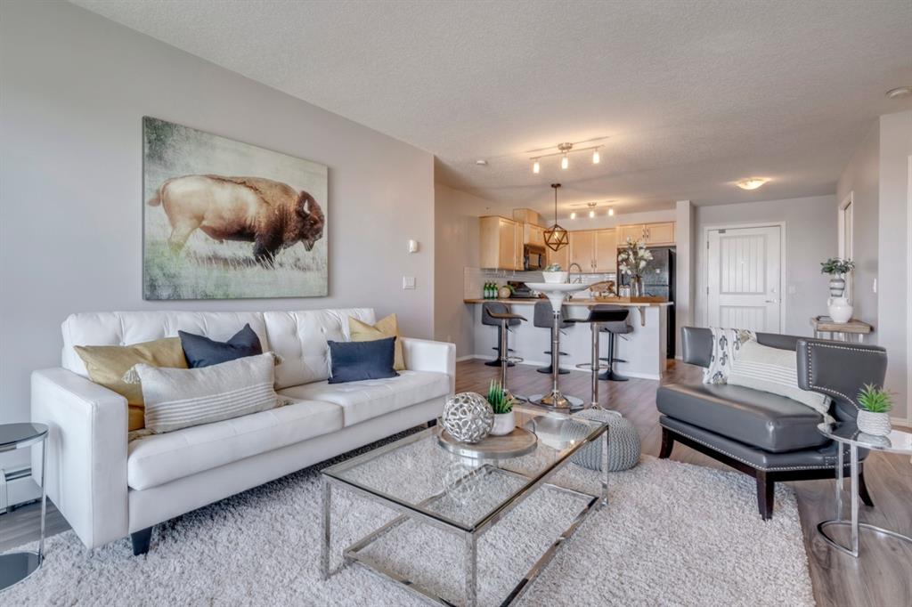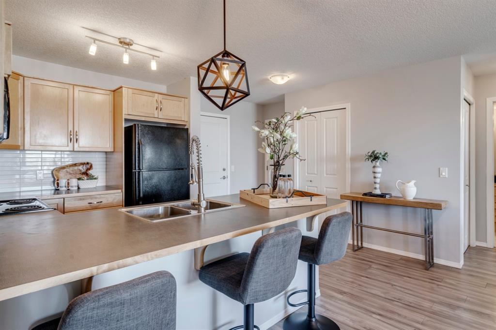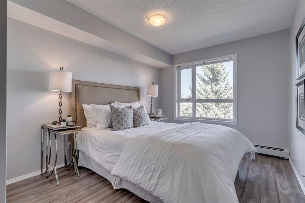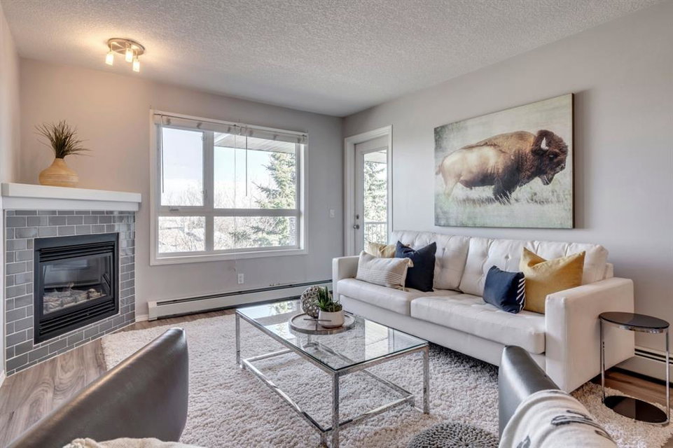 This beautiful top floor 2 bedroom, 2 bathroom condo is perfect for a young couple, small family or those looking to downsize. Located just steps away from the stunning Nose Creek Parkway and minutes from Nose Hill Park and the Beddington Towne Centre shopping district. The bright and open layout allows natural light into the entire home all day long. The well-maintained home includes an open concept with a kitchen that overlooks both living and dining areas. The large living space (with a gas fireplace) provides the perfect for entertaining in a cozy condo. The home is finished with warm wood cabinetry and newer laminate flooring in the kitchen, living room and bedrooms. The master bedroom is complete with a walk-through closet and a 4-piece en suite with walk-in shower. Additionally, the home has a second bedroom, 3-piece bathroom, in-suite laundry and a large storage area which offers added convenience to everyday living. The balcony offers a perfect place to enjoy a morning coffee with unobstructed views to the east. Finishing the unit is an underground parking stall to keep your vehicle safe and secure year-round. Maintenance-free living in this top floor condo offering incredible value for those wanting a spacious two-bedroom home. Stop renting and start building equity today. Come see all this amazing home has to offer!