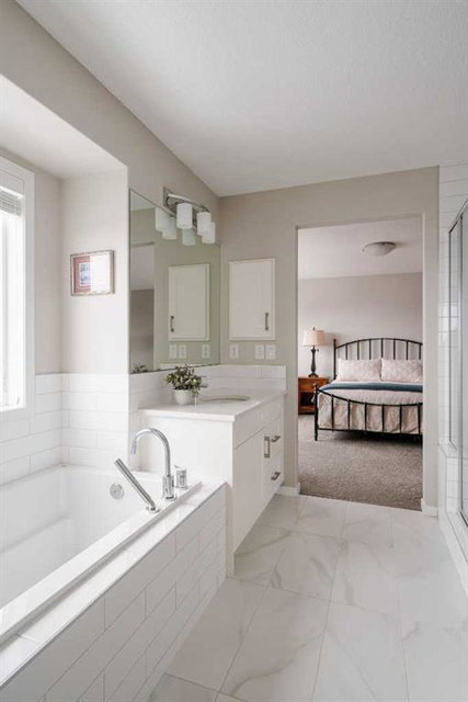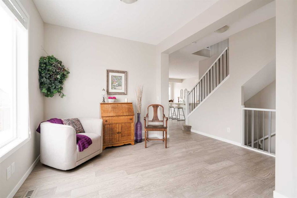 Welcome to your dream home in the highly coveted community of Symons Gate in Sage Hill! Featuring 4 bedrooms on the upper level with over 2,500 sq.ft of developed living space, this meticulously maintained property offers the perfect blend of elegance and functionality. Situated on a generous ~5,300 sq.ft corner lot, this home is surrounded by the natural beauty of Sage Hill and is conveniently located near parks, shopping, and amenities. The home has a beautiful exterior facade featuring full Hardie Board siding, low-maintenance landscaping, and an oversized attached garage. The open concept main level features hardwood flooring spanning the main living areas with large windows throughout the property which allows natural light to flow into the home all day. The living room is highlighted by a gas fireplace with a chic tile surround creating a warm and inviting atmosphere for relaxation. The gourmet kitchen features quartz countertops, ample cabinet space, walk-through pantry with coffee station and stainless-steel appliances including a gas range, chimney hood fan, and built-in microwave. Completing the main level is a generous front office which can be used as a formal dining area, a mudroom with built-in storage and a 2-pc powder room. The upper level of the home features a rare layout offering 4 full bedrooms, 2 full bathrooms, a large bonus room and a generous laundry room. Dual doors lead to the expansive primary suite which is a true retreat complete with a spa-like ensuite bathroom offering dual vanities, a soaker tub, walk-in tiled shower, and a walk-in closet. Three additional bedrooms, a full bathroom and a large bonus room complete the upper level. The lower level of the home has endless possibilities for development and features ample space for a 5th bedroom, large family/rec. room and a full bathroom. The oversized garage has ample room for a pickup truck and has been extended by 3 feet to allow for a workshop or added storage. The backyard has been beautifully landscaped providing a high level of privacy and tranquility, with a spacious rear deck, a lower patio, planter beds, a zero-maintenance front yard and is fully fenced. This home has been lovingly maintained, ensuring that it’s in pristine condition and ready for its new owners to move in and start creating lasting memories. Don’t miss your opportunity to own this exceptional Symons Gate home!