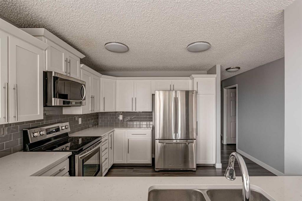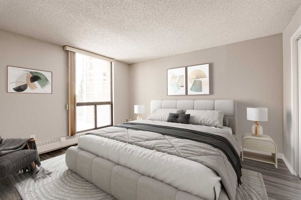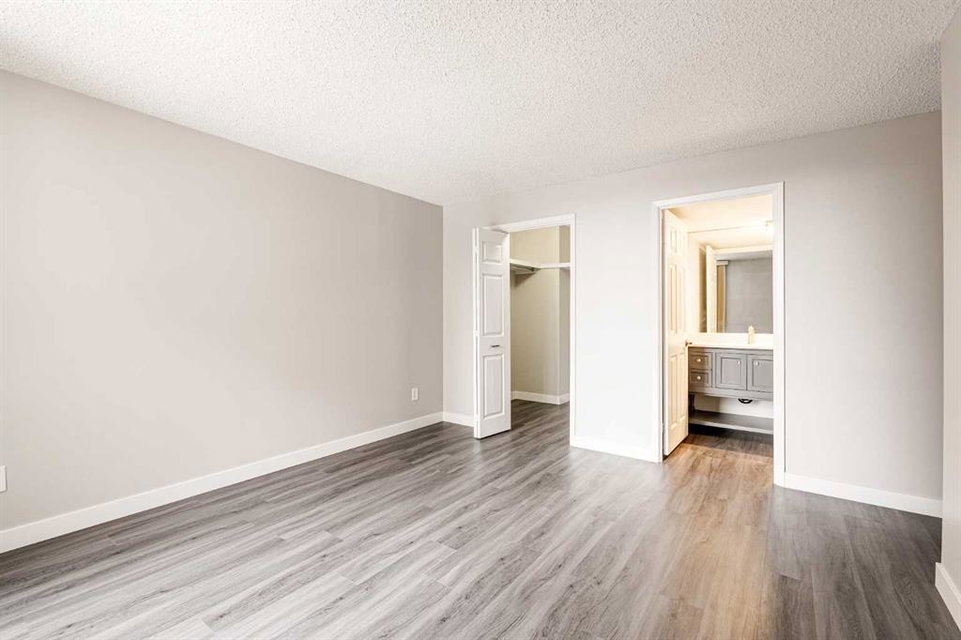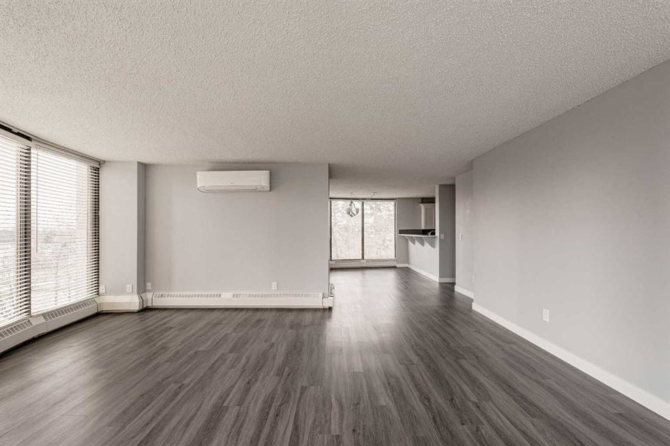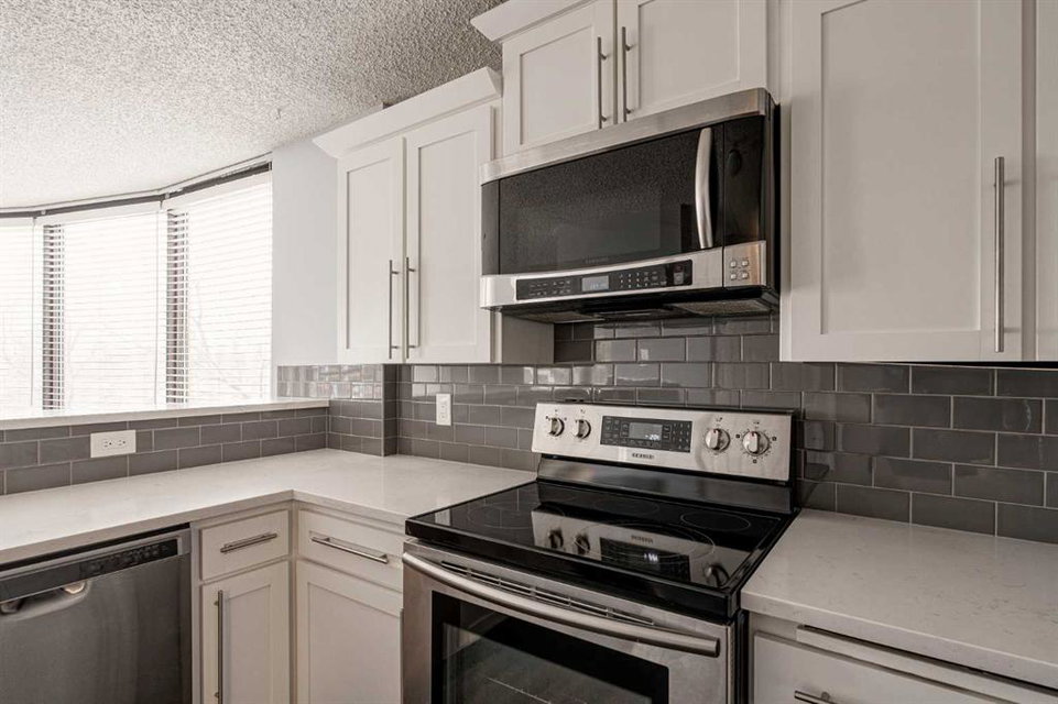 Welcome to this beautiful Odyssey Towers property, located in the heart of Coach Hill! This spacious 3-bedroom, 2-bathroom condo has been thoughtfully updated, offering a move-in-ready home perfect for immediate possession. Combining functionality, design, and a modern feel, this property is ideal for professionals or anyone seeking exceptional value. The sprawling open-concept living area features luxury vinyl plank flooring throughout and floor-to-ceiling windows that flood the space with natural light. The timeless white kitchen features an oversized raised eating bar with quartz countertops, a suite of newer stainless-steel appliances, and a side pantry for extra storage. The kitchen flows seamlessly into the large dining area and expansive living room, creating an ideal layout for entertaining or hosting family gatherings. The dining space comfortably accommodates formal dinners and offers direct access to the private balcony, while the generous living room provides ample space for a cozy seating area / entertainment area and office/reading nook. The primary suite is complete with a large walk-in closet and a renovated 3-piece ensuite featuring a new vanity, toilet, and a fully tiled walk-in shower. Two additional bedrooms provide versatility, whether for family, guests, or as a space for a home office or craft room. The second full bathroom has also been recently updated with a new vanity, toilet, and a tub/shower combination with a modern tile surround. A dedicated storage room and in-suite laundry area add extra convenience, making daily living effortless. The west-facing balcony offers a peaceful escape with views of the surrounding green space and tree canopy, perfect for unwinding after a long day. This property also includes air conditioning providing comfort in the summer and two assigned parking stalls (one underground, one surface), ensuring year-round security and convenience. The Odyssey Building is well maintained and offers a tranquil living experience for its residents all while being minutes from countless shopping and entertainment hubs and major thoroughfares. This is your opportunity to embrace the ease of apartment living without compromising on quality or design. Whether you’re downsizing, upgrading, or searching for your next home, this wonderful apartment is ready for you. Don’t miss your chance to make it your own!